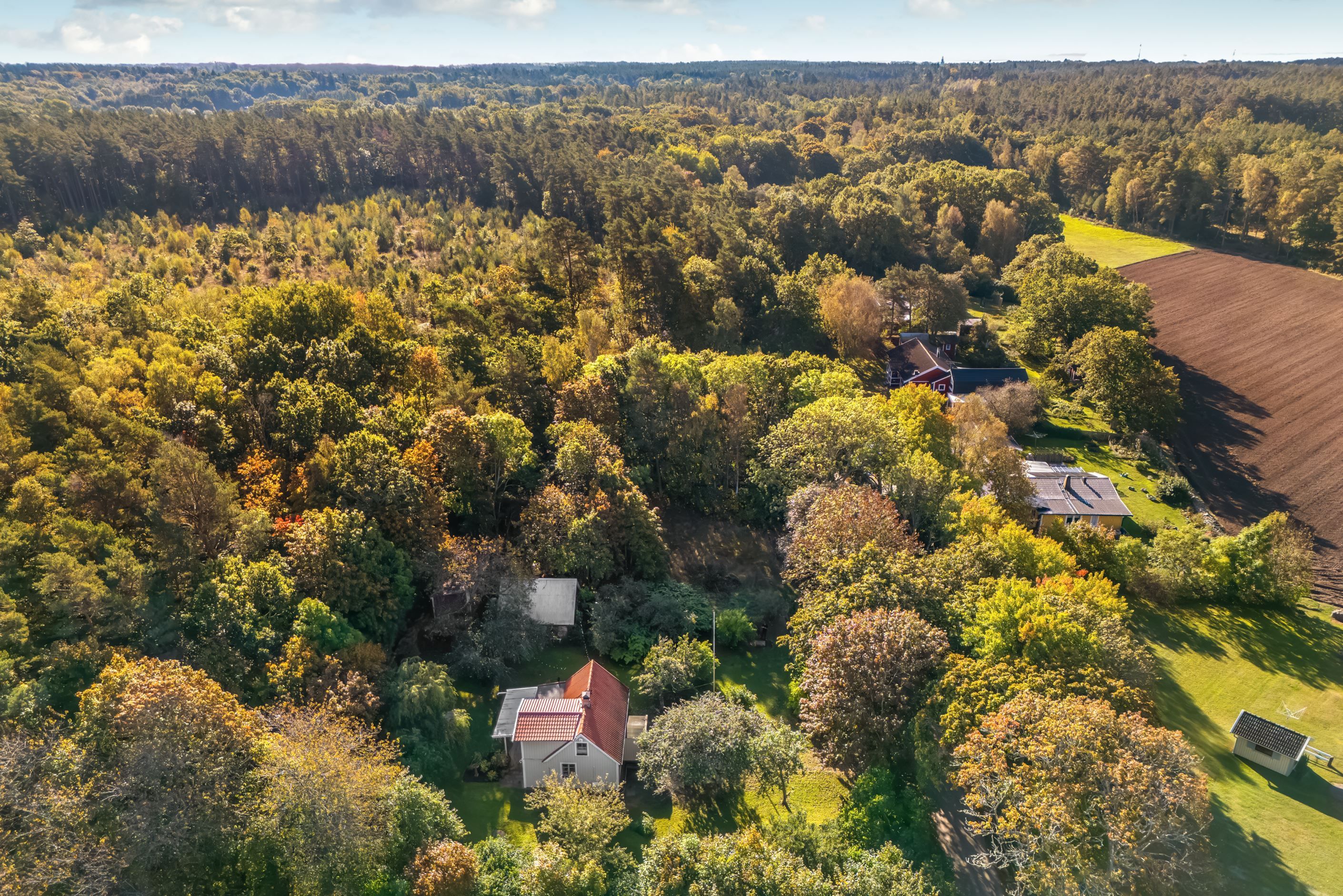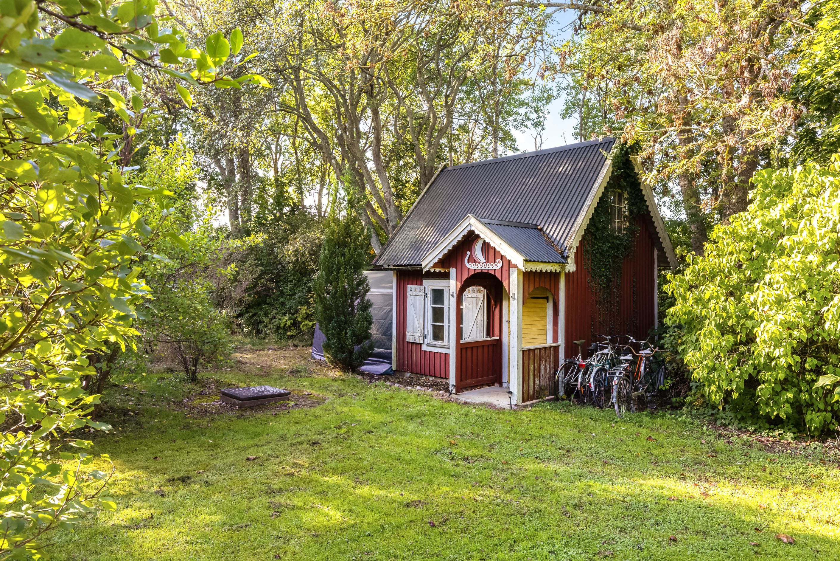 På tomten väntar en gäststuga med både allrum och sovloft – idealisk för övernattande vänner, tonårsbarn eller kanske en kreativ ateljé. Den gamla stenladan, med sitt rustika loft och charmiga snickarbod, är redo för nästa kapitel – kanske en plats för långbord, sensommarfester och skratt långt in på kvällen. Utanför grindarna breder naturen ut sig. Skogsstigar slingrar sig genom landskapet, fågelsången blandas med havsdoften, och på några minuters cykelavstånd når du badplats, affär, pizzeria och hela Blekinges skärgård. Här, mitt mellan Jämjö och kustpärlan Torhamn, lever du i ett stillsamt och naturnära område – nära till allt, men långt bort från stress.