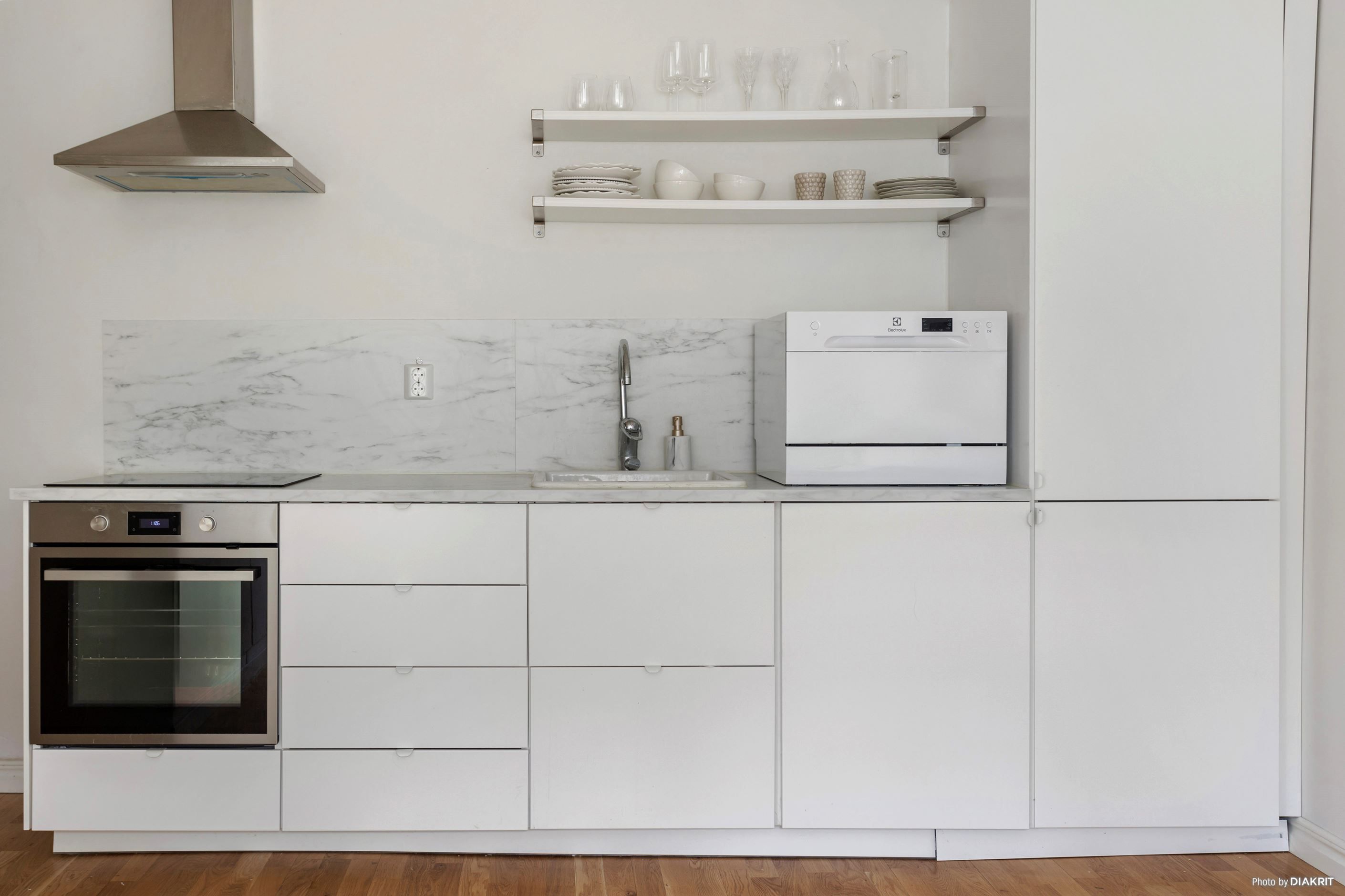 Ett yteffektivt och välplanerat hem med låg månadsavgift. Integrerad tvättmaskin och bänkdiskmaskin installerad, mycket plats för förvaring och hiss går från markplan upp till våning 4 av 5. Garageplatser finns att hyra och nås direkt via hissen. Föreningen äger marken och har en trevlig terrass med sittplatser.