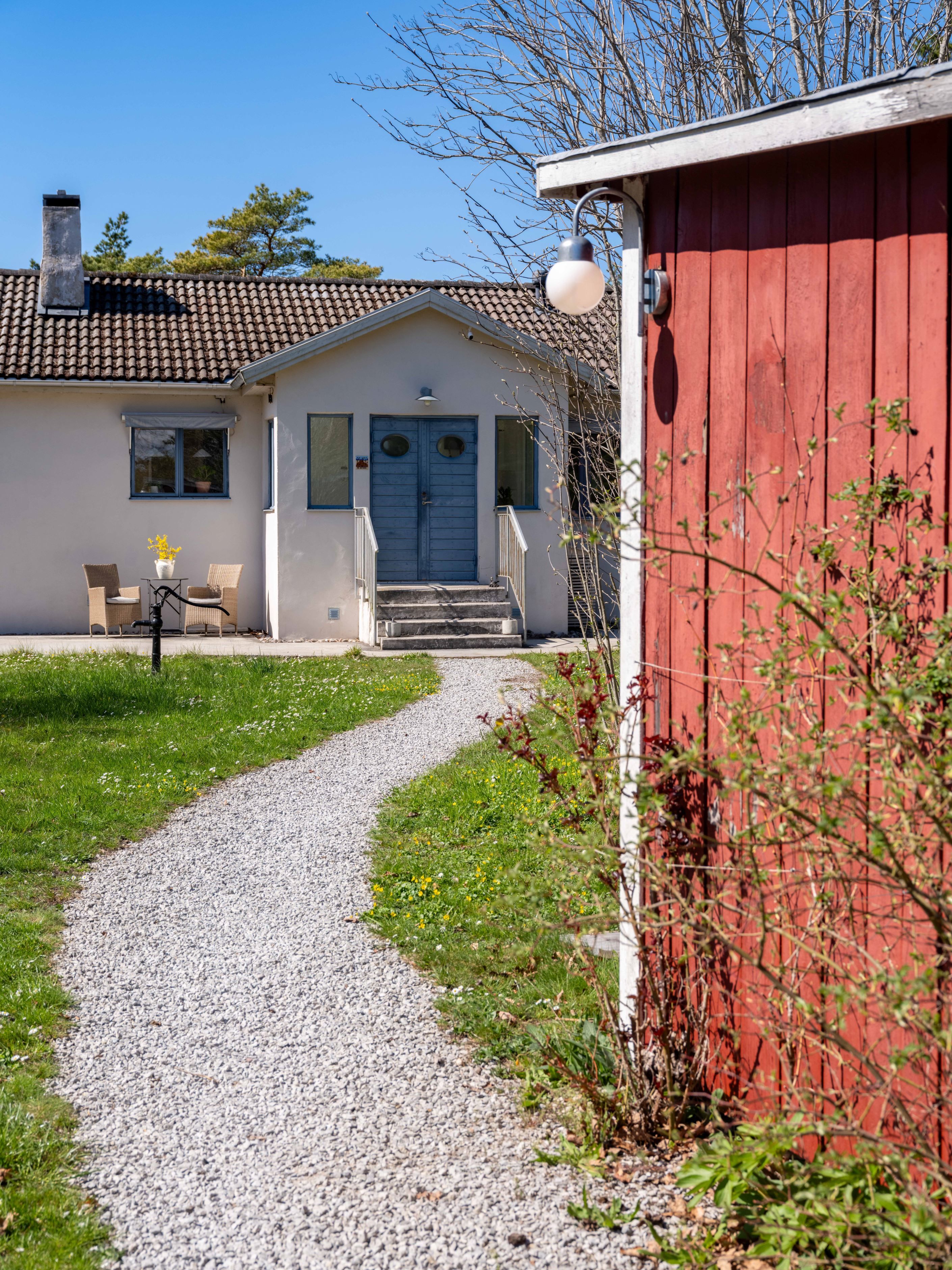 Men även om huset levererar en perfekt mix av äldre charm och modern elegans, så är det ute som magin verkligen tar fart. En altan i etage som sträcker ut sig i den stora trädgården. Här finns poolen med tillhörande trädäck, en stilren pergola (ja, solsängarna får ett eget rum), och du förstår vilket utrymme för mingel, middag och magplask som finns. Allt ramas in av det fina gotlandstunet runt tomten.