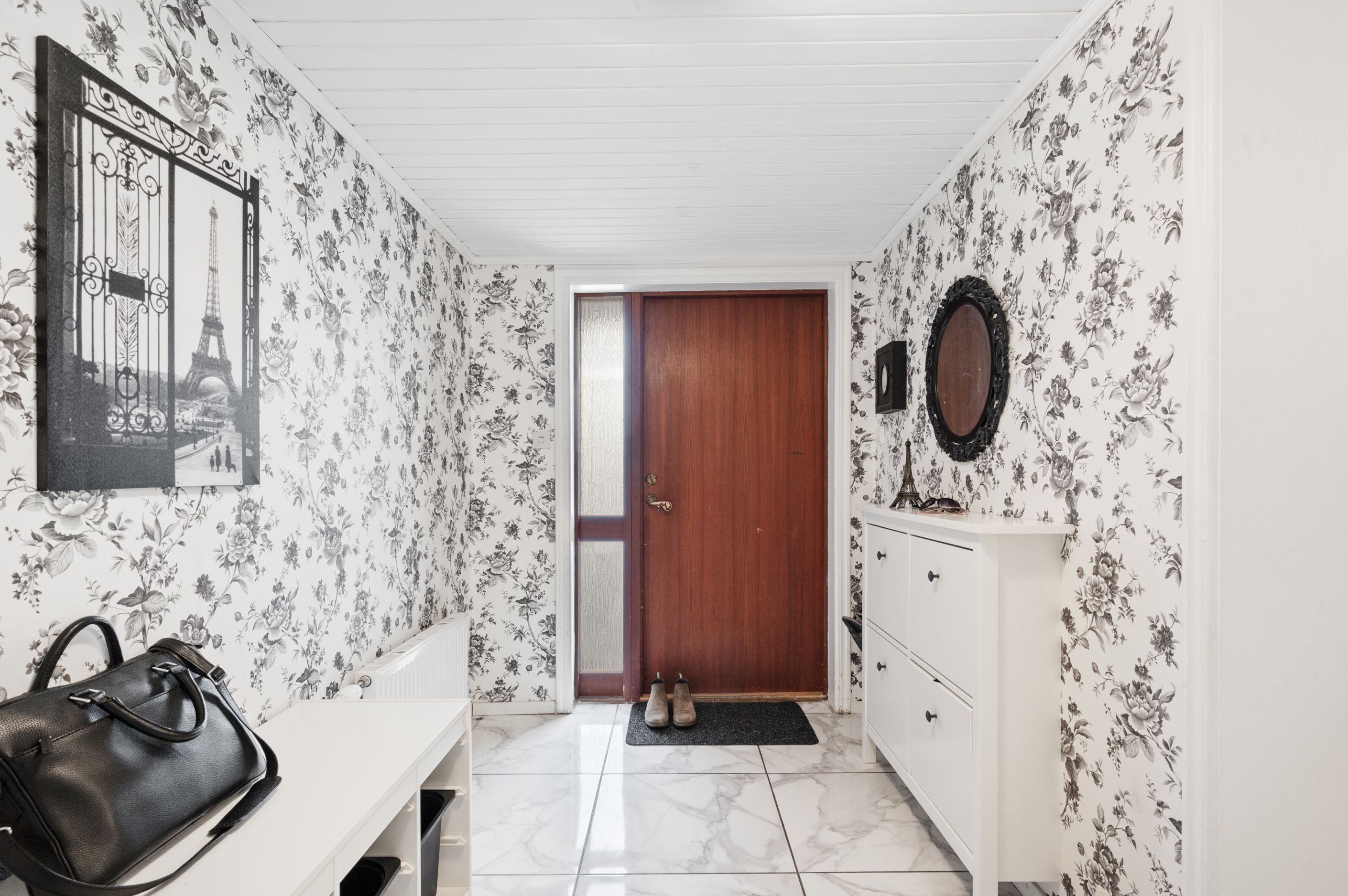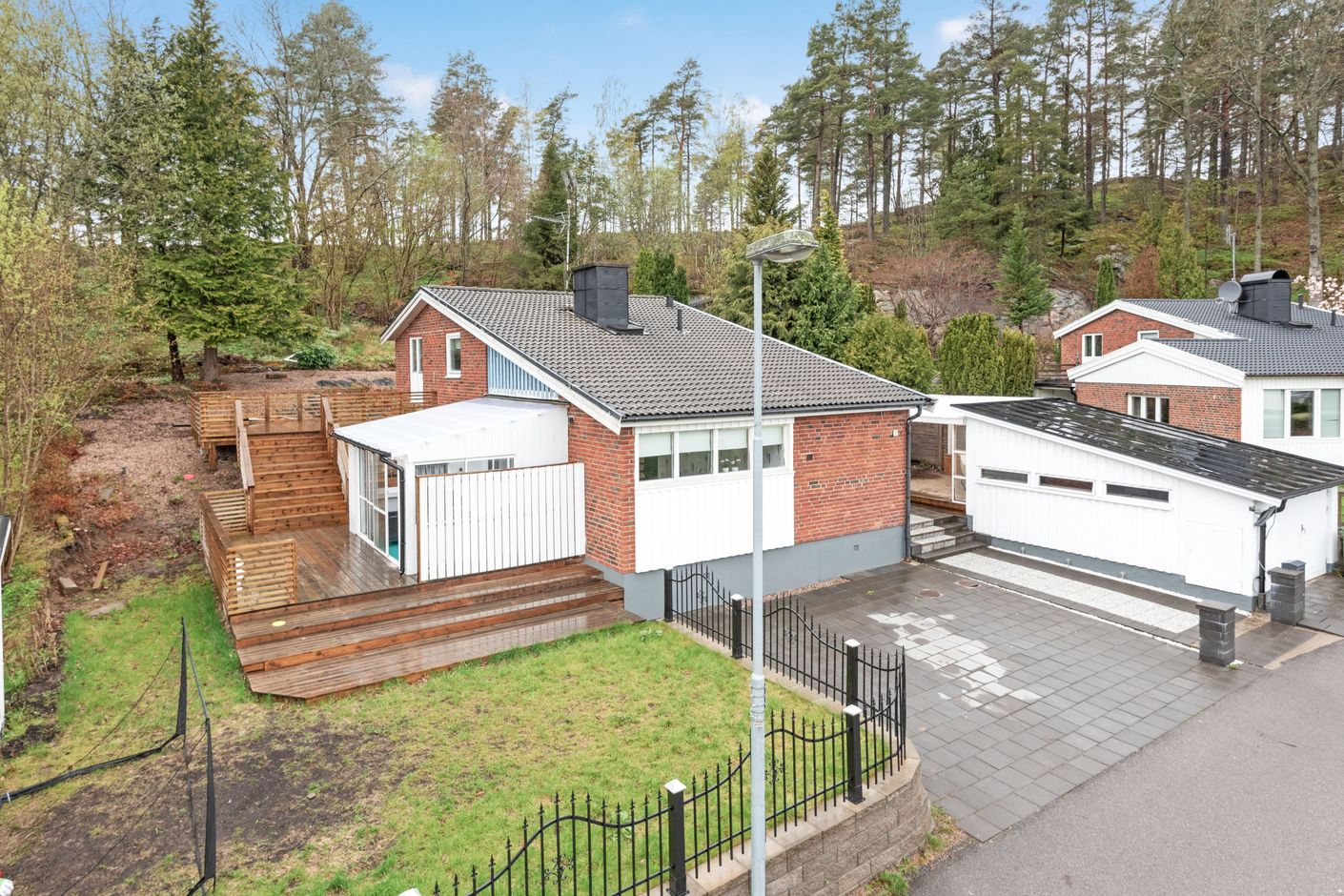 Denna fina villa är byggd 1956 och är mycket välplanerad. Den har genomgått omfattande renoveringar under de senaste åren. Nya badrum, nytt kök, ny ventilation och ny dragna vattenrör m.m. På baksidan av huset har du en liten gräsmatta och en fin rymlig altan i etage och uterum. Fastigheten har även ett garage som ligger sammanlänkat med huvudfastigheten. Man välkomnas av den stora rymliga hallen som leder dig in i de ljusa fina köket. Vardagsrummet är rymligt och leder dig ut till den fina uteplatsen. Nedre plan har även två stora sovrum, stort badrum och en tvättstuga med goda förvaringsmöjligheter. På övre plan finns tre sovrum, litet vardagsrum och toalett.