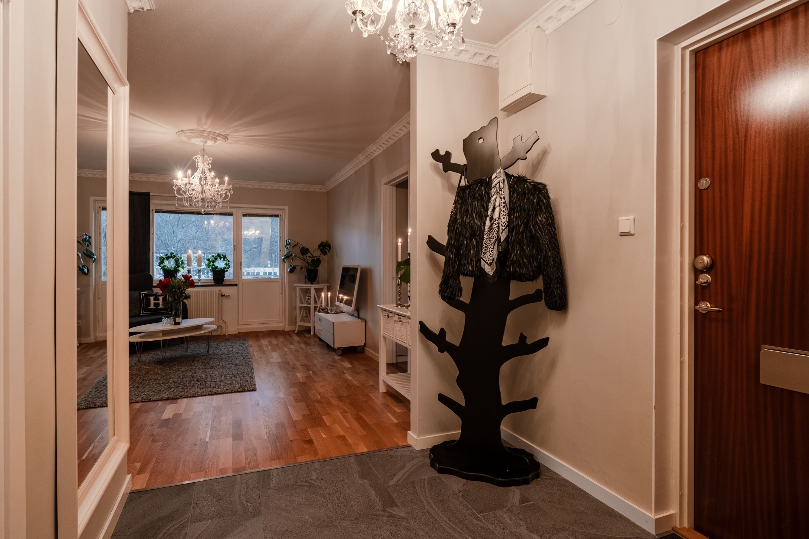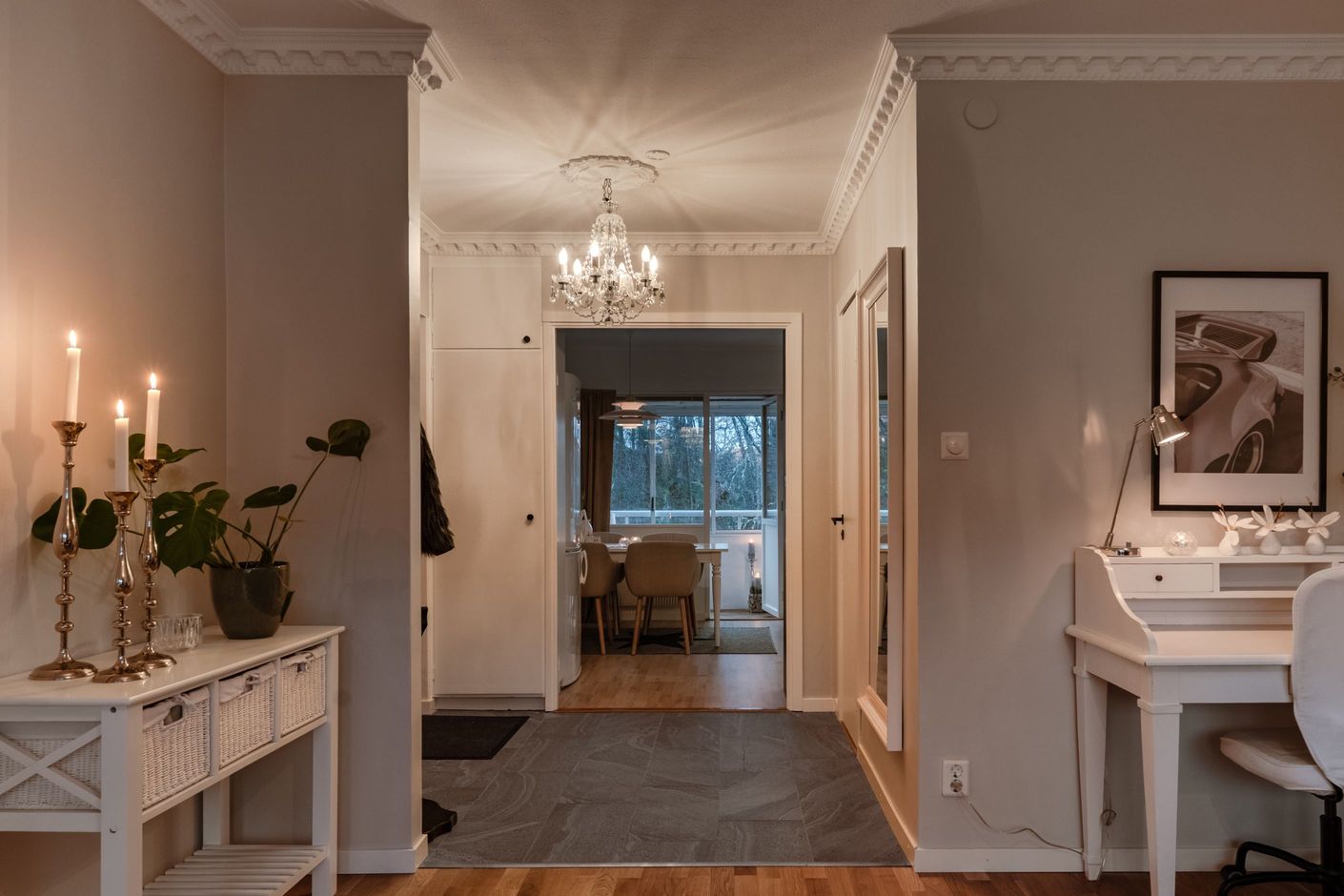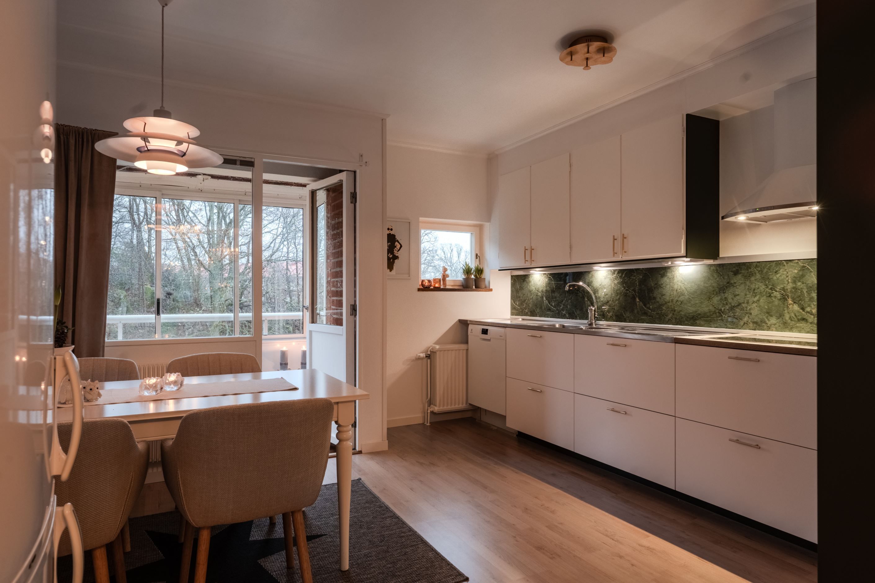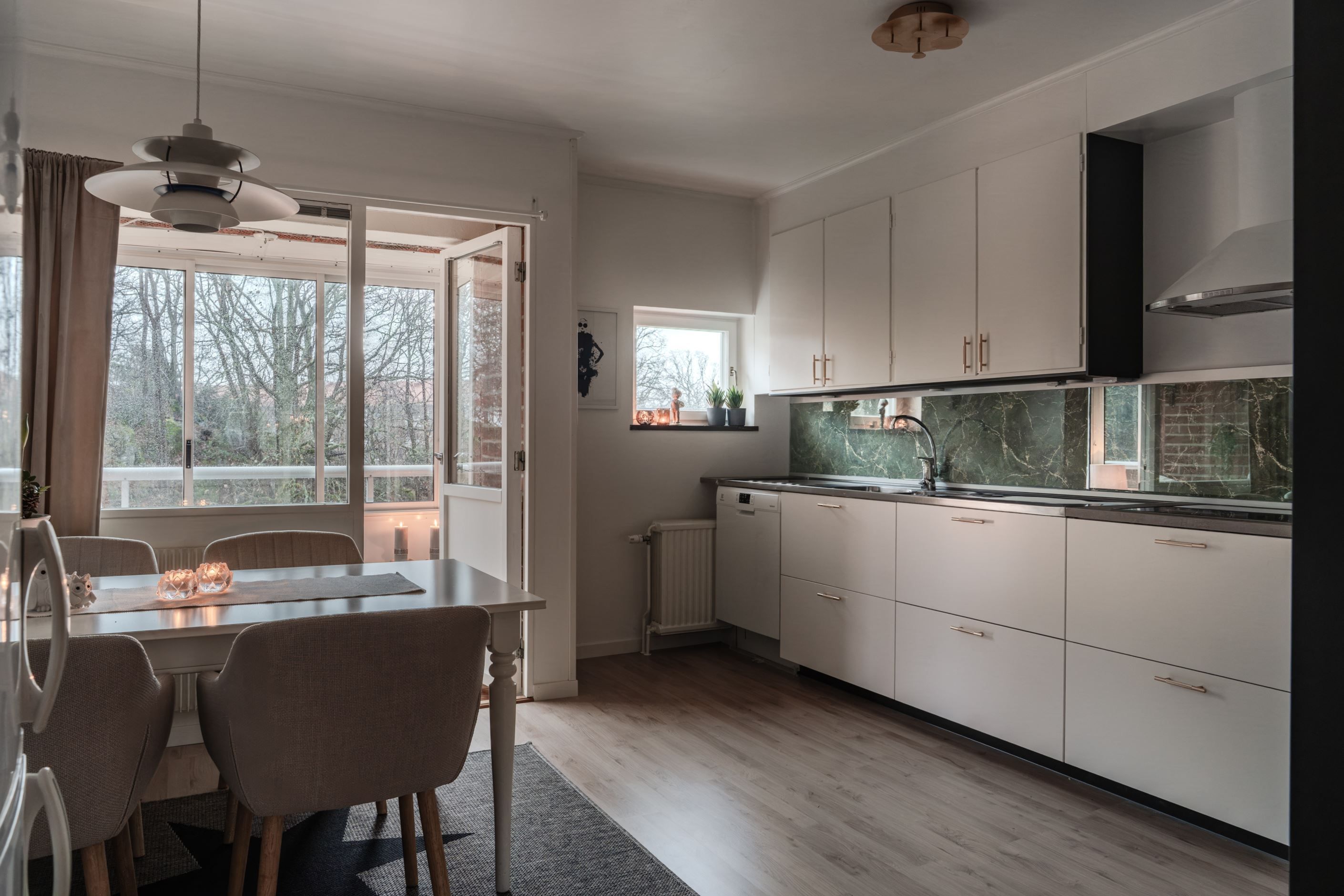 Denna tvåa i Unneröd karaktäriseras av varma ljusa toner och eleganta detaljer som takstuckaturer. Lägenheten renoverades under 2025 där väggar och tak har målats, nya lister och stuckaturer lagts och nya kontakter och brytare installerats. Originalgarderober och skåp har målats och fått nya beslag. Köket är sedan innan utrustat med vitvaror i mycket fint skick och har kompletterats med ny köksbänk och ett vackert stänkskydd. Plats finns för en matgrupp intill altanen vilket skapar en mysig social plats med förlängning ut till den inglasade altanen. Det luftiga vardagsrummet blir en självklar plats för både umgänge och avkoppling.