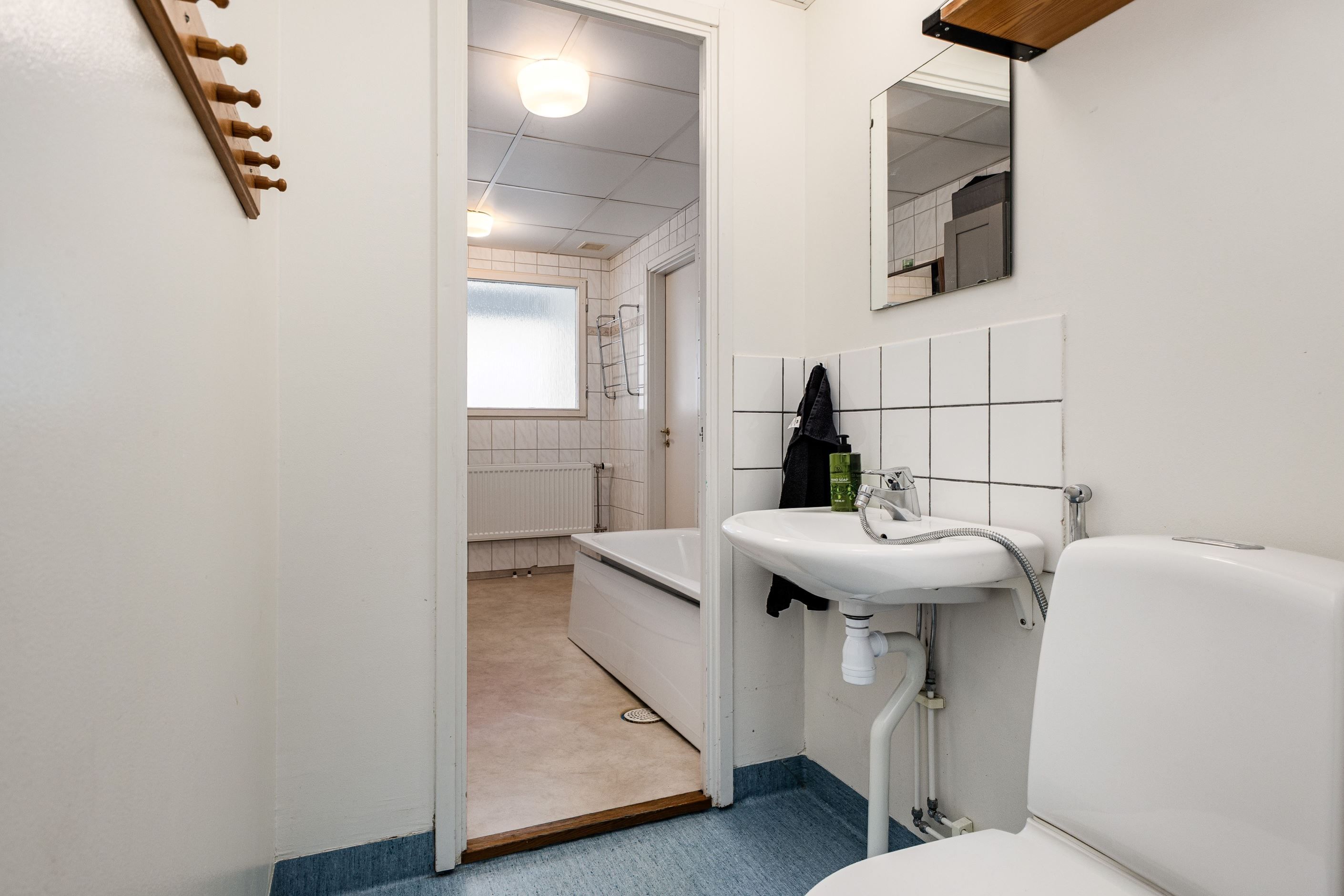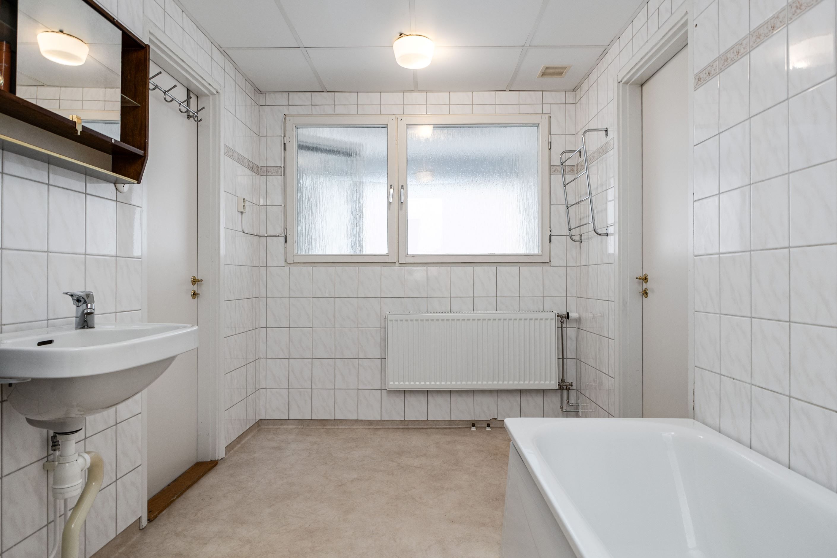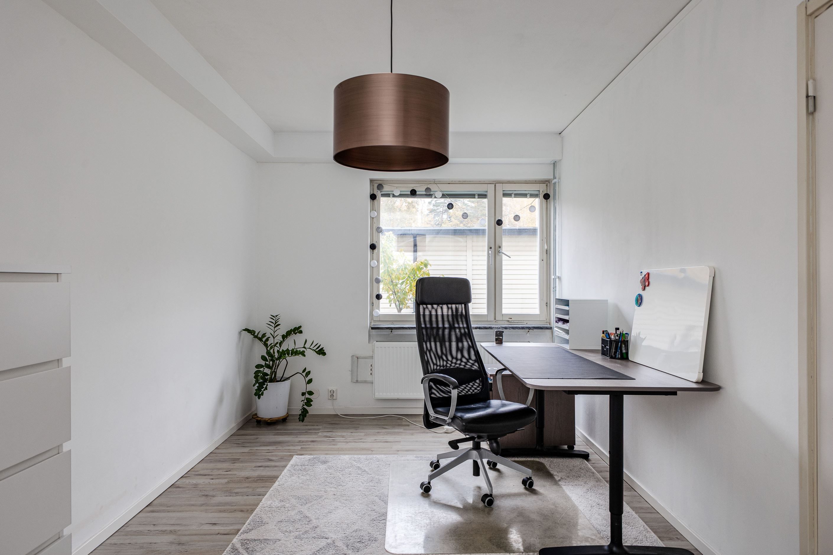 På suterrängvåningen ligger det rymliga vardagsrummet med rikligt ljusinsläpp som skapar en härlig och inbjudande atmosfär. Från vardagsrummet nås uteplatsen med gräsmatta - en perfekt plats för barnens lek, odlingar eller avkoppling i solen. På samma plan finns ytterligare ett rum som enkelt kan användas som sovrum, gästrum eller arbetsrum.