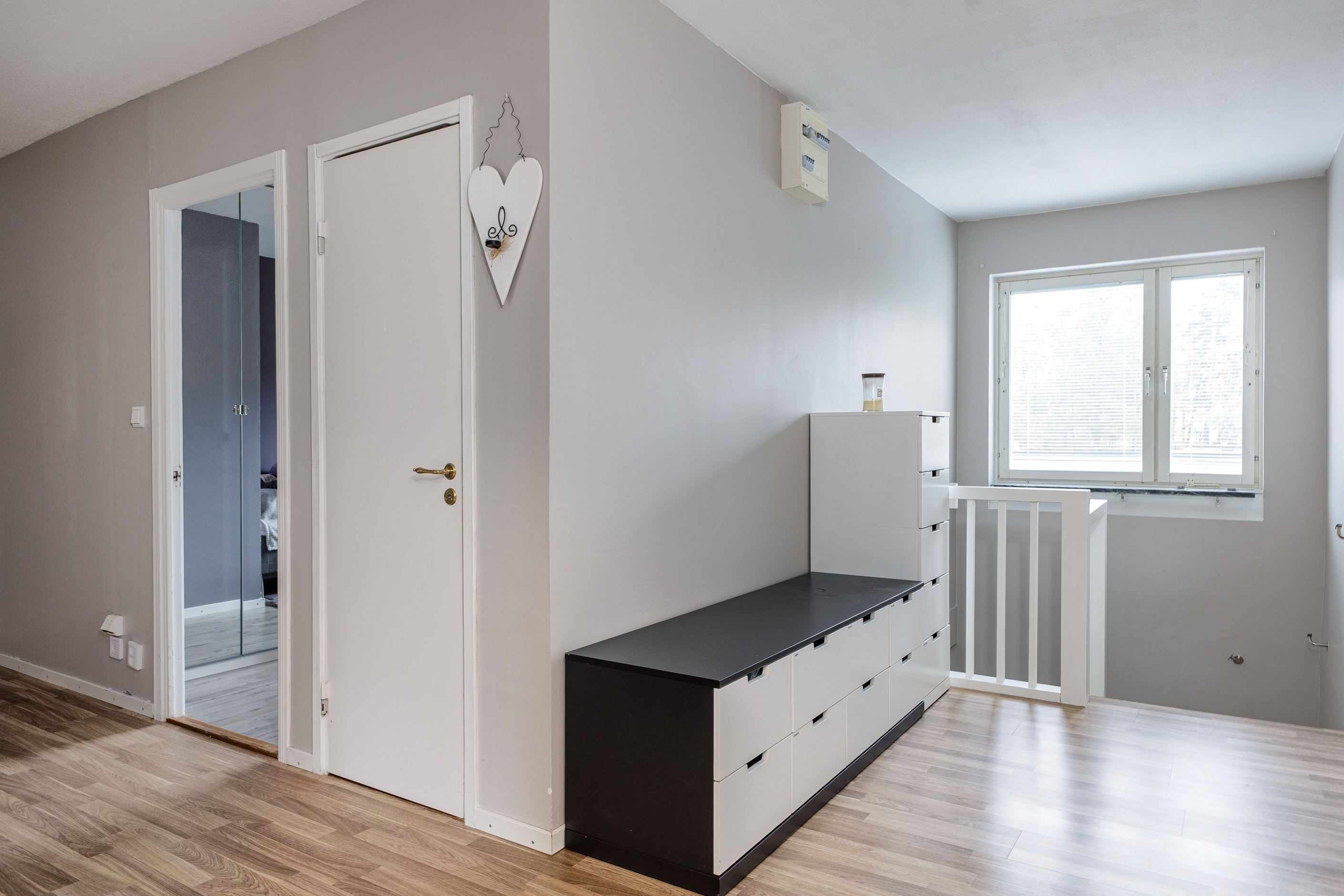 Kliv in i bostaden och möts av den rymliga hallen som leder dig vidare till ljusa och välplanerade ytor som skapar en känsla av rymd och trivsel. Det charmiga köket har gott om plats för matlagning och umgänge, och öppnar upp mot en inglasad balkong i soligt sydvästläge - en perfekt plats för morgonkaffet eller avkoppling i kvällssolen. På entrévåningen återfinns tre rogivande sovrum samt en praktisk klädkammare som erbjuder generös förvaring. Här finns även ett rymligt badrum och en gästtoalett som underlättar vardagen för hela familjen.