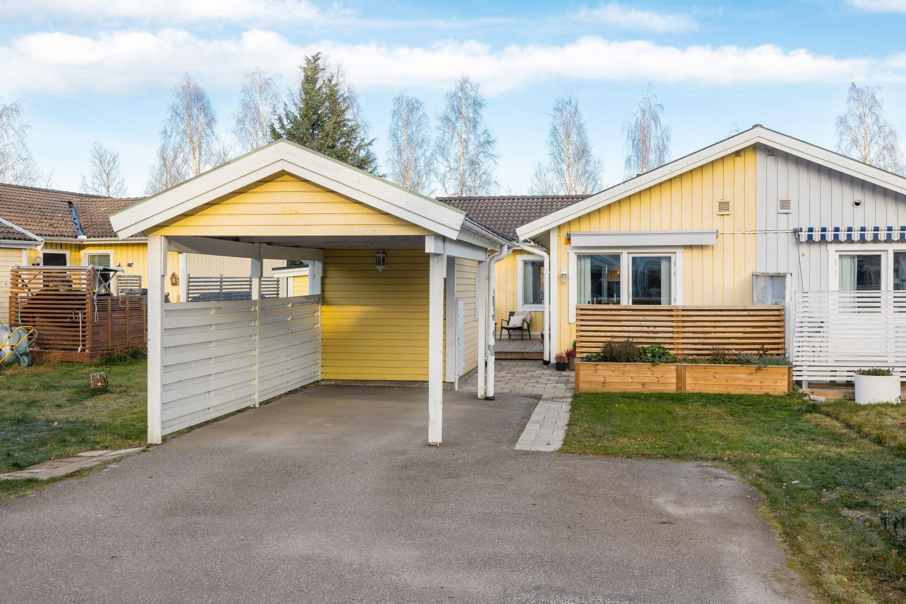 Med en boyta på 103 kvadratmeter fördelat på två plan, möts du av ett hem där ljus och rymd står i fokus. De tre välplanerade sovrummen ger plats för hela familjen, och det ljusa vardagsrummet bjuder in till både avkoppling och sociala tillställningar. Köket är utrustat med moderna vitvaror och har renoverats med omsorg för att möta dagens höga standard. Badrummet på entréplanet är renoverat i år i smakfulla materialval. Här finns en skyddad innergård med altan för härliga grillkvällar. Gott om förvaring i utomhusförrådet och en plan gräsmatta på husets baksida.