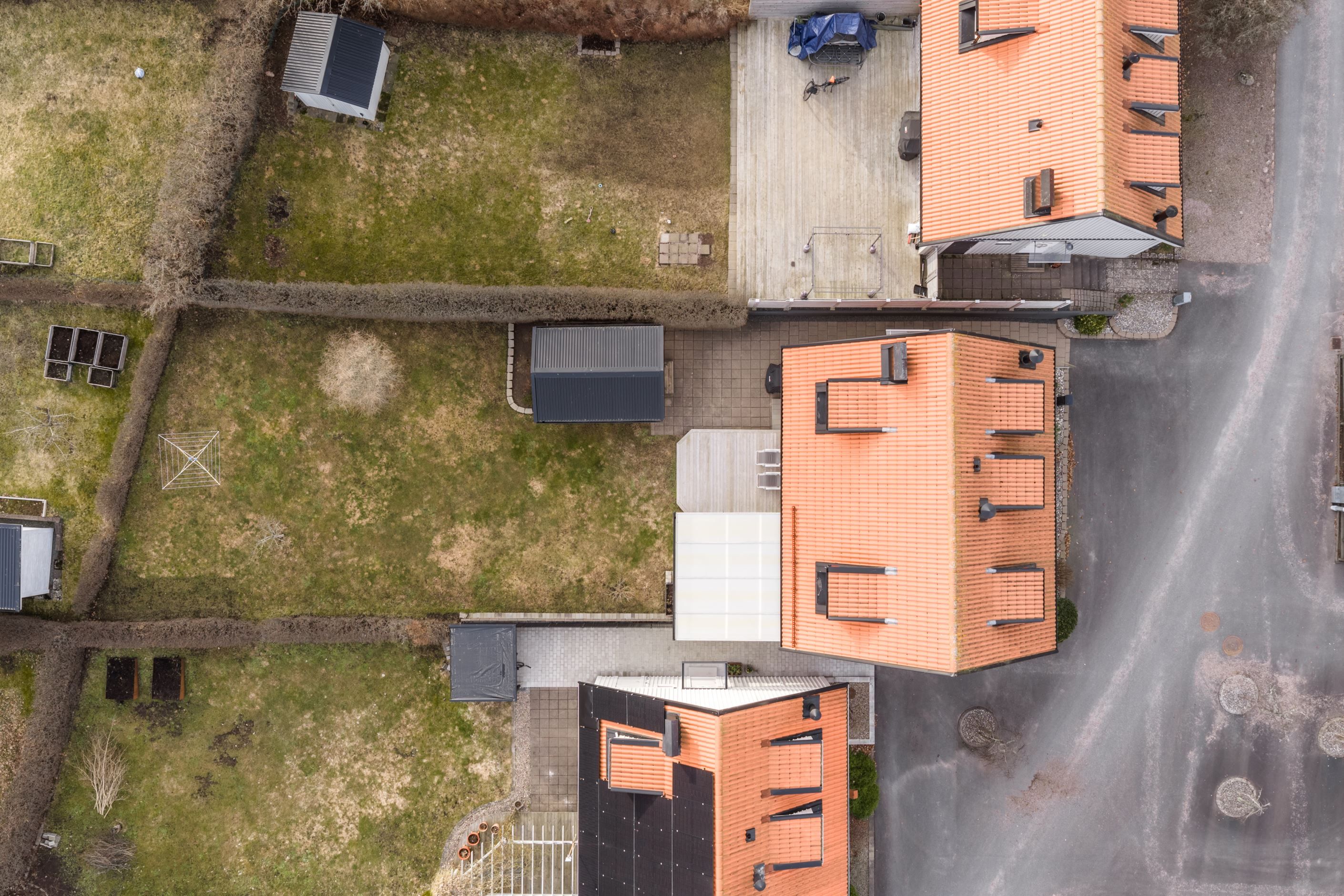 Matsalen har gott om utrymme för större middagar och umgänge. Härifrån nås den inglasade altanen som uppfördes och som fungerar som en naturlig förlängning av bostaden. Altanen leder vidare ut till trädäck och trädgård i söderläge, där trädäcket byttes ut 2023 och erbjuder en trivsam plats för avkoppling och sociala stunder under sommarhalvåret.