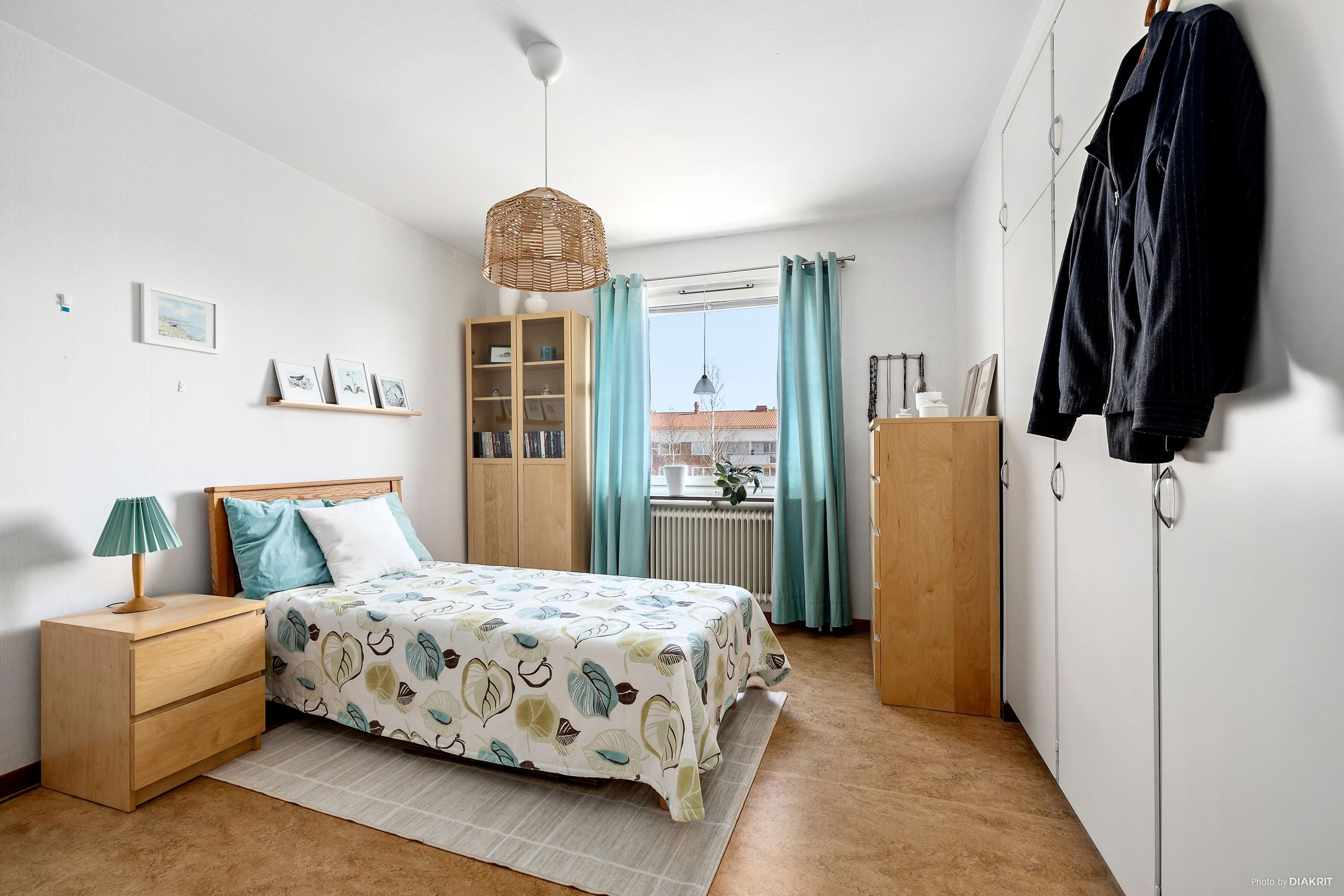 Det rogivande sovrummet rymmer en dubbelsäng och erbjuder bra förvaring i garderober. Badrummet är äldre med matta på väggar och golv. Utrustat med dusch, handfat, spegelskåp samt tvättmaskin.