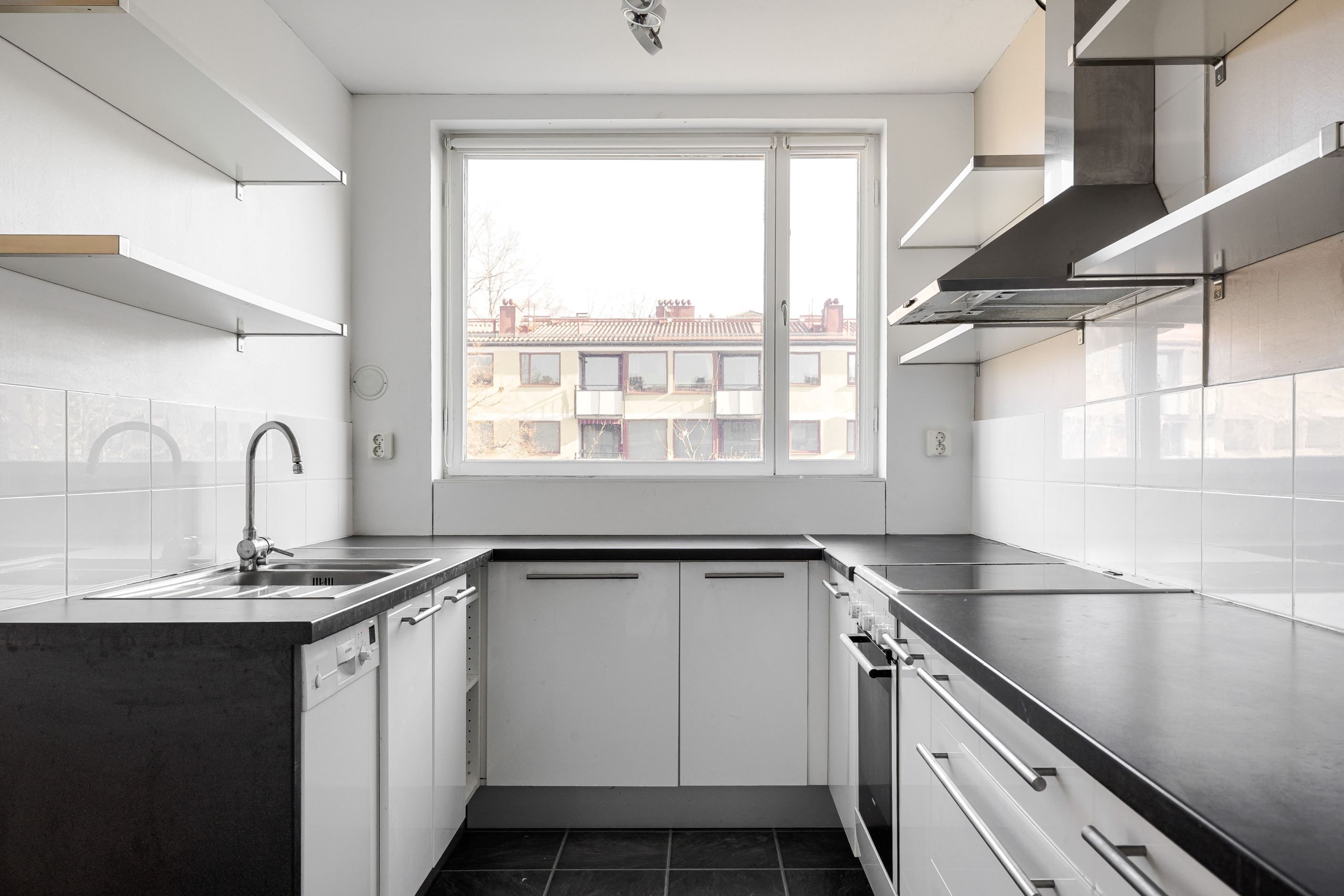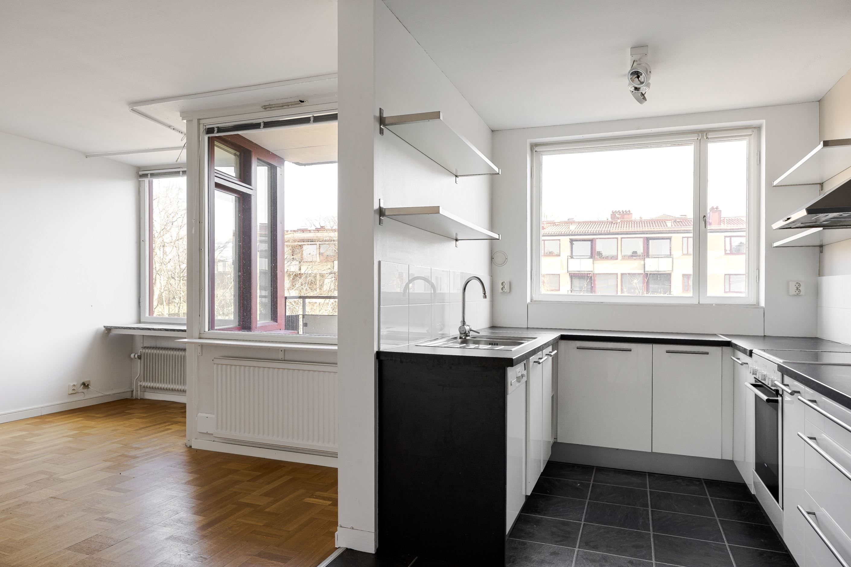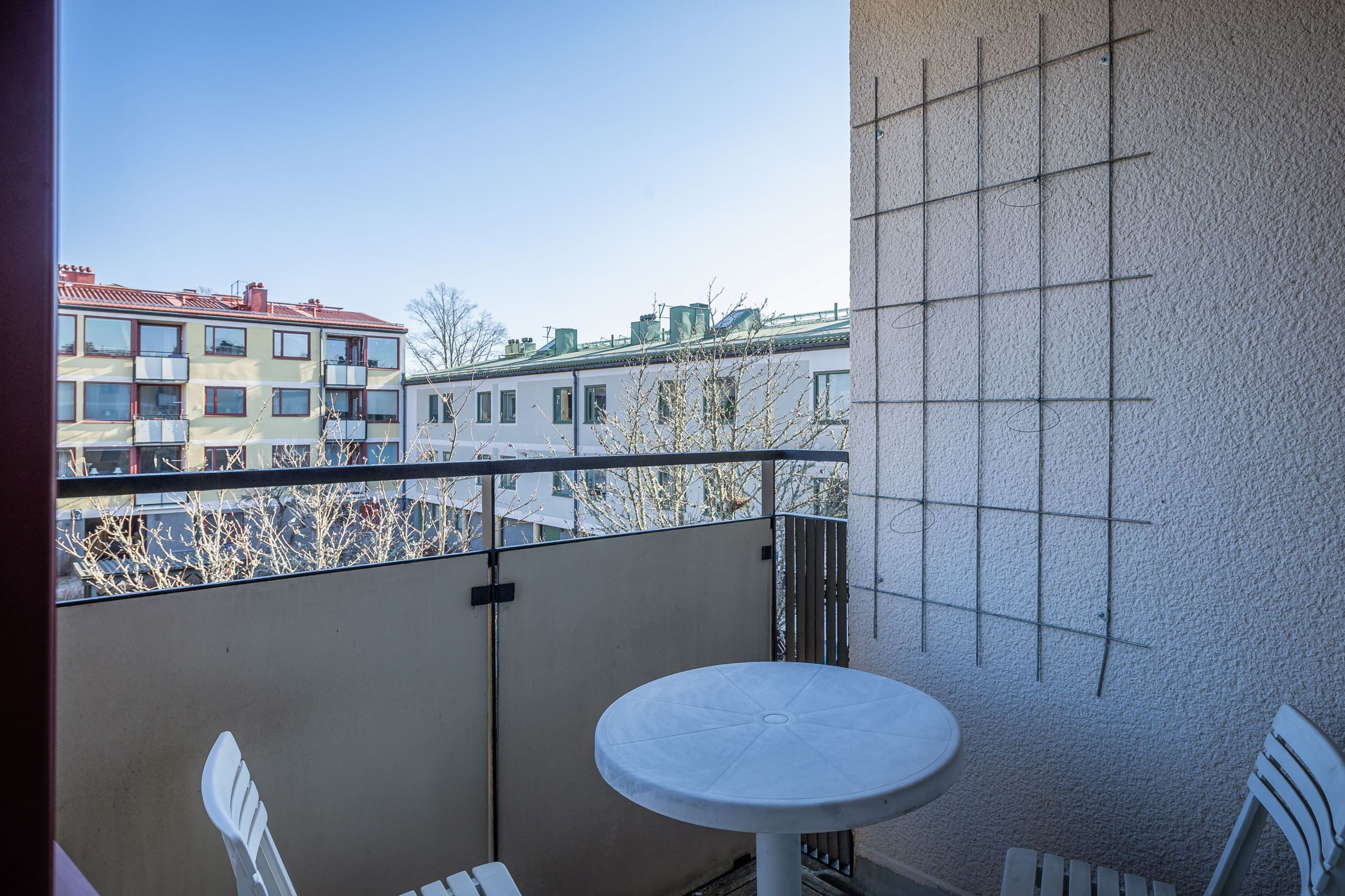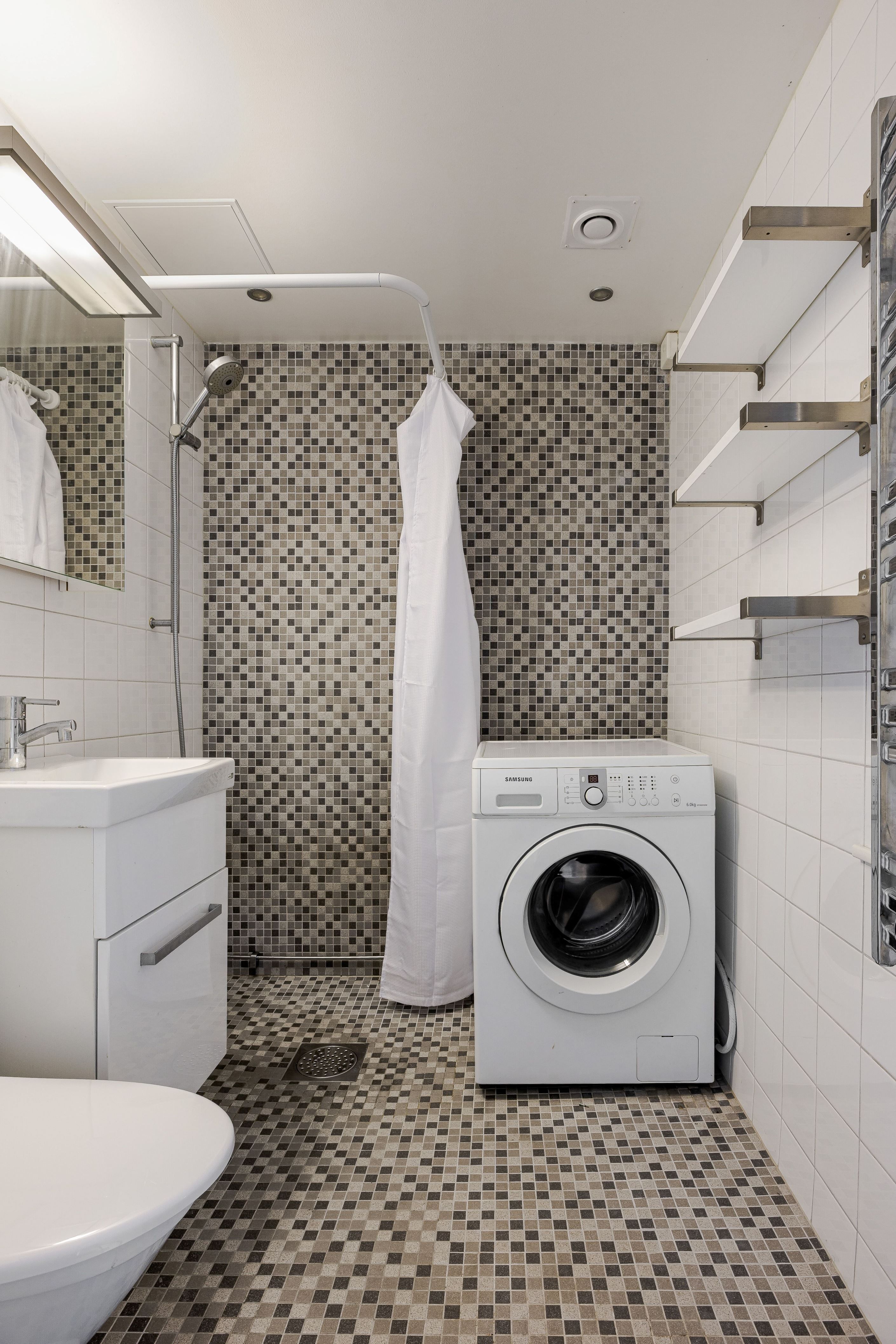 Lägenheten har ett ljust kök med öppen planlösning in mot vardagsrummet. Härifrån nås direkt access till balkong som vetter ut mot föreningens lugna innergård. Badrummet är helkaklat och har duschhörna, wc, kommod med handfat samt tvättmaskin som ger bra vardagskomfort.