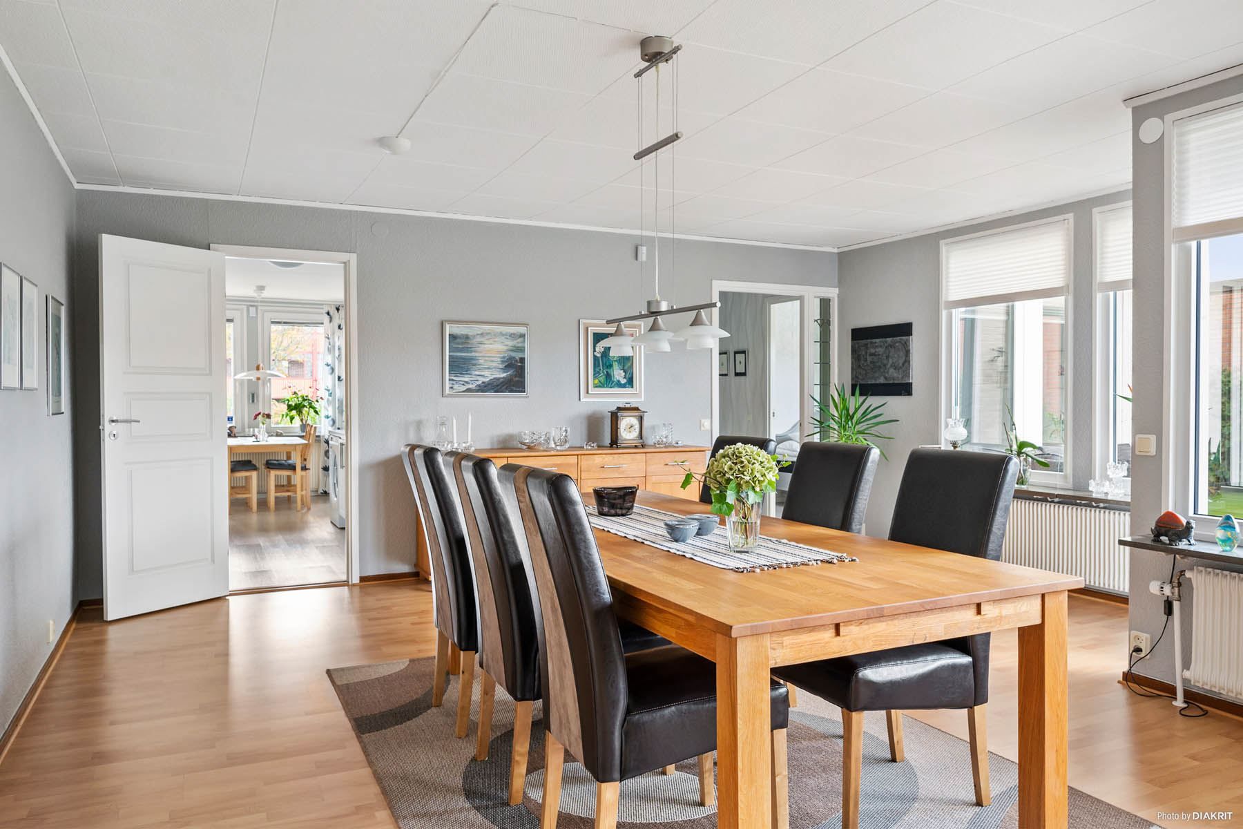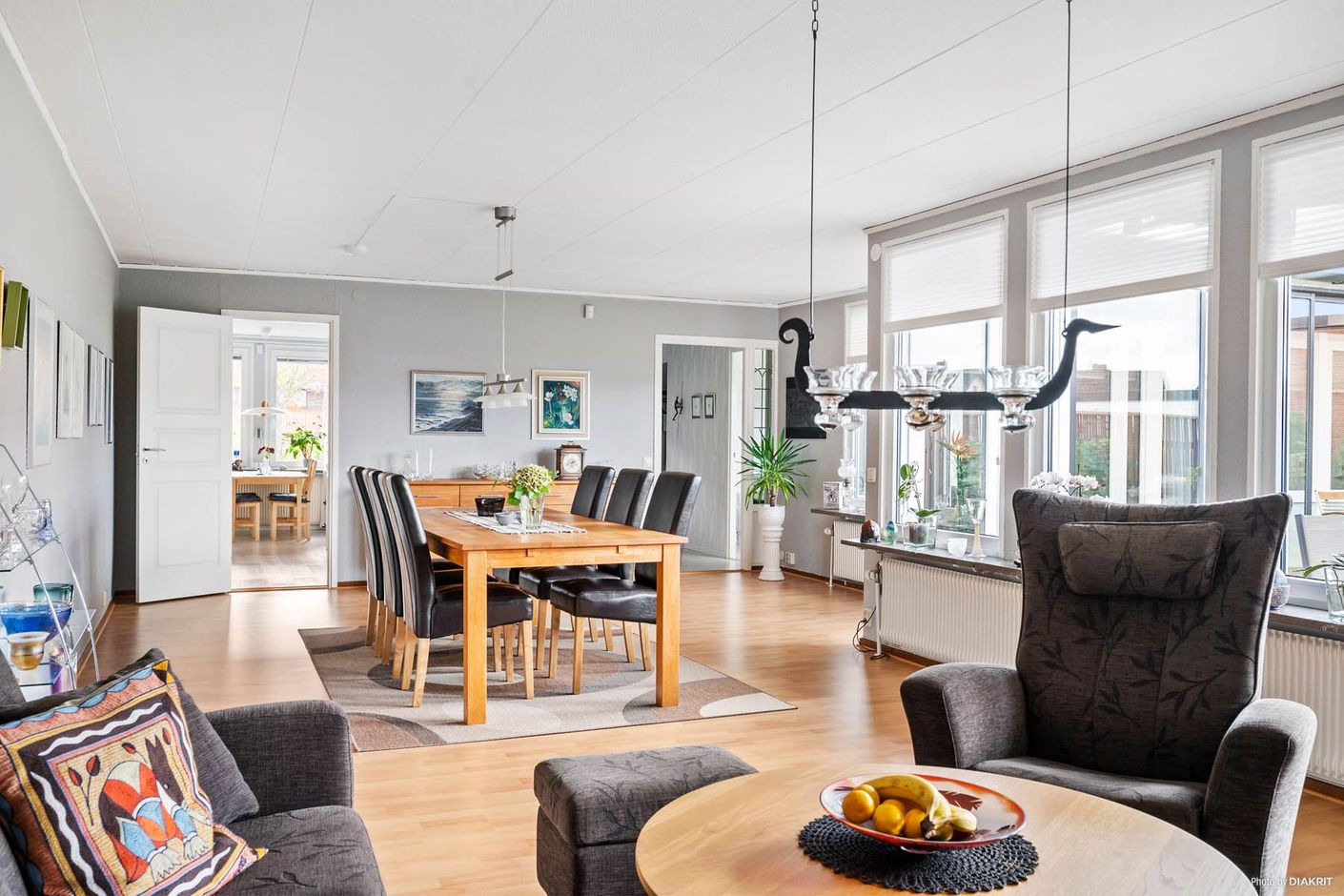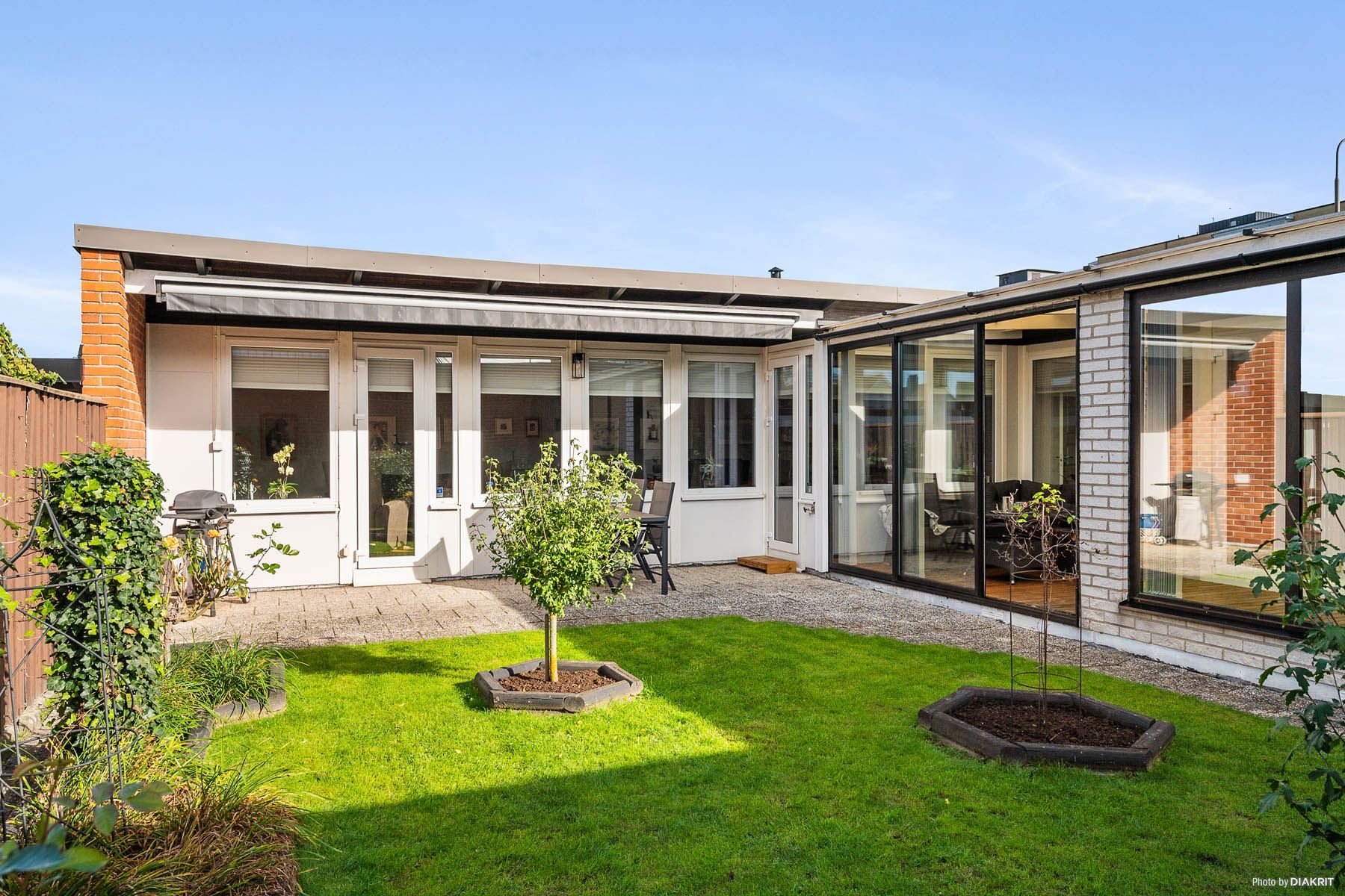Enplanshus i bra skick med möjlighet till fyra sovrum. Här finns även ett inglasat uterum, stort vardagsrum, renoverat badrum, Gäst WC, integrerat garage och en mysig innergård i västerläge!