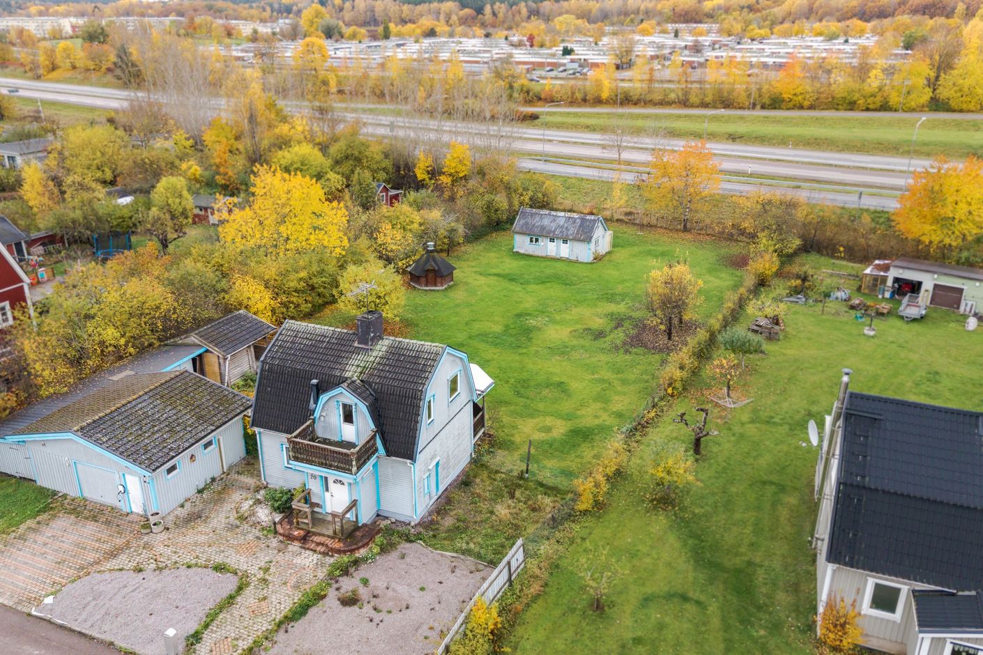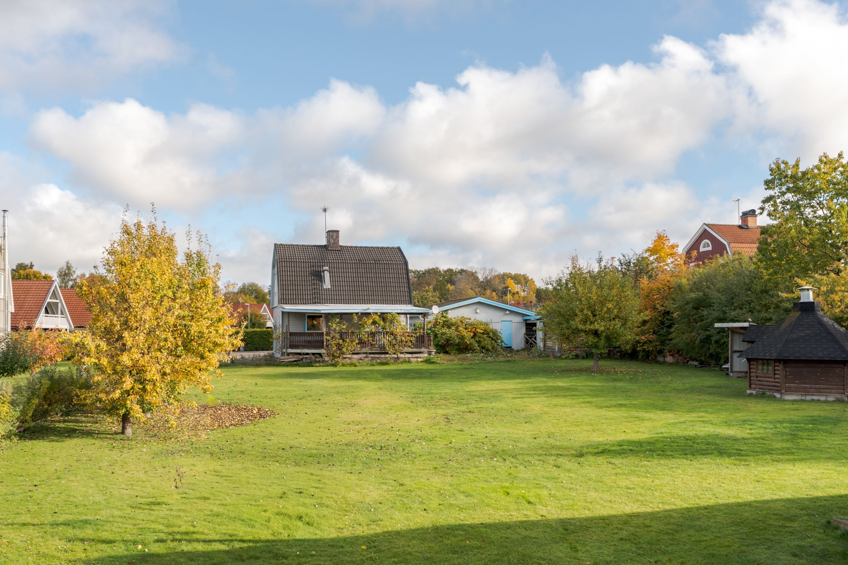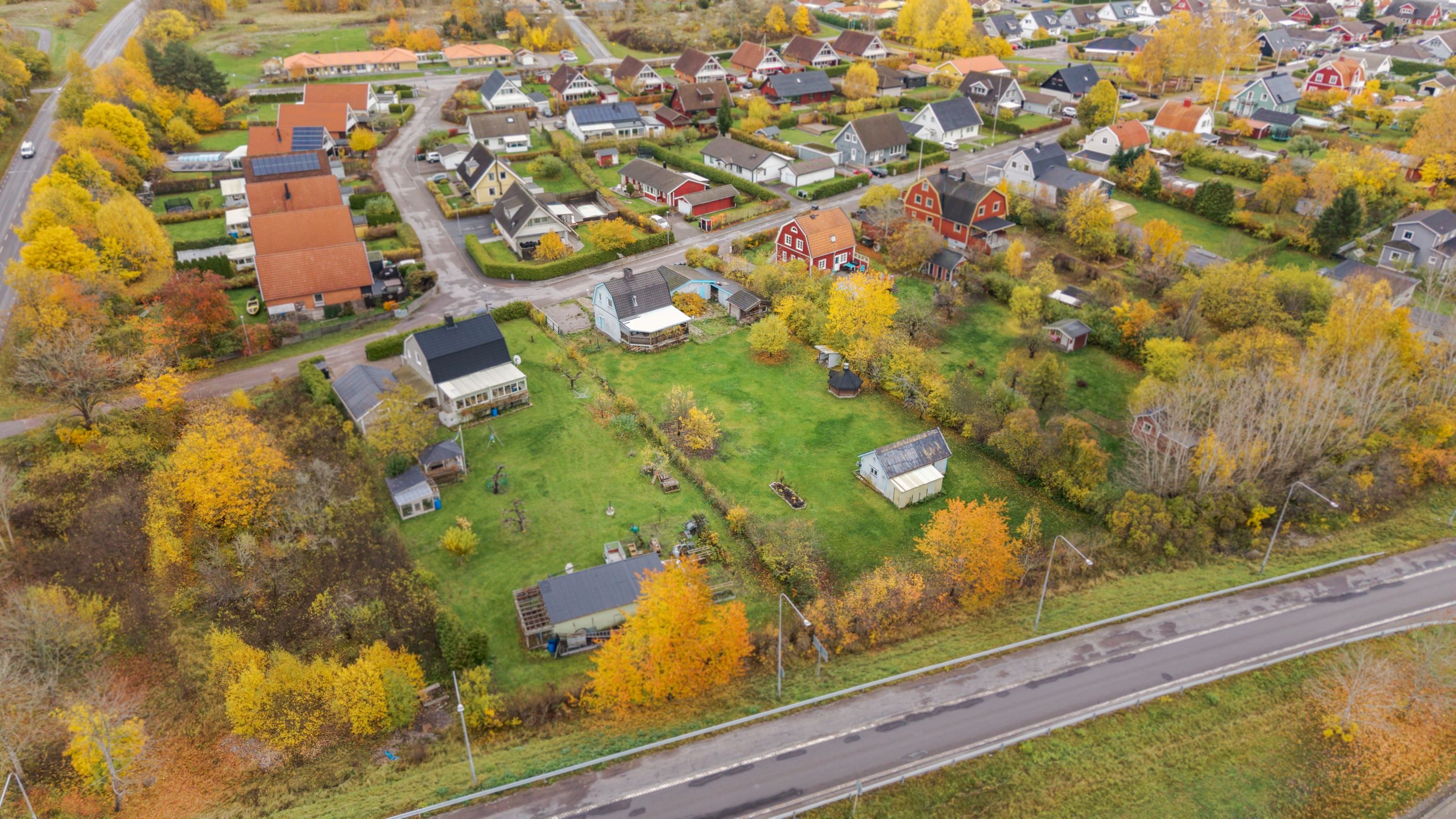 Tomten erbjuder många möjligheter, oavsett om du vill odla, bygga ut eller skapa en riktigt fin uteplats för sommarkvällarna. På tomten finns även ett gästhus med framdragen el, vilket öppnar upp för extra boendeyta, uthyrning eller kanske en egen studio eller kontor.