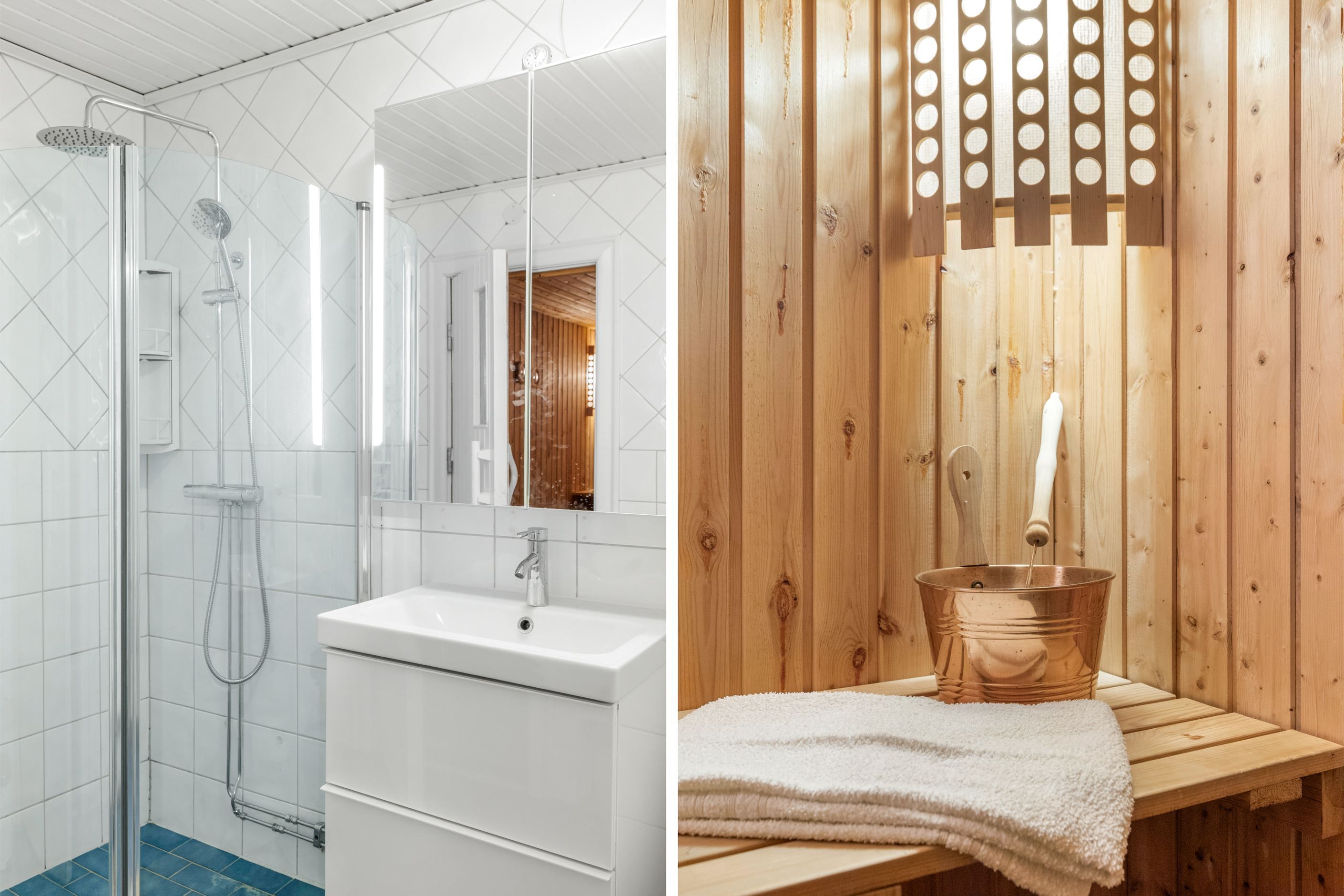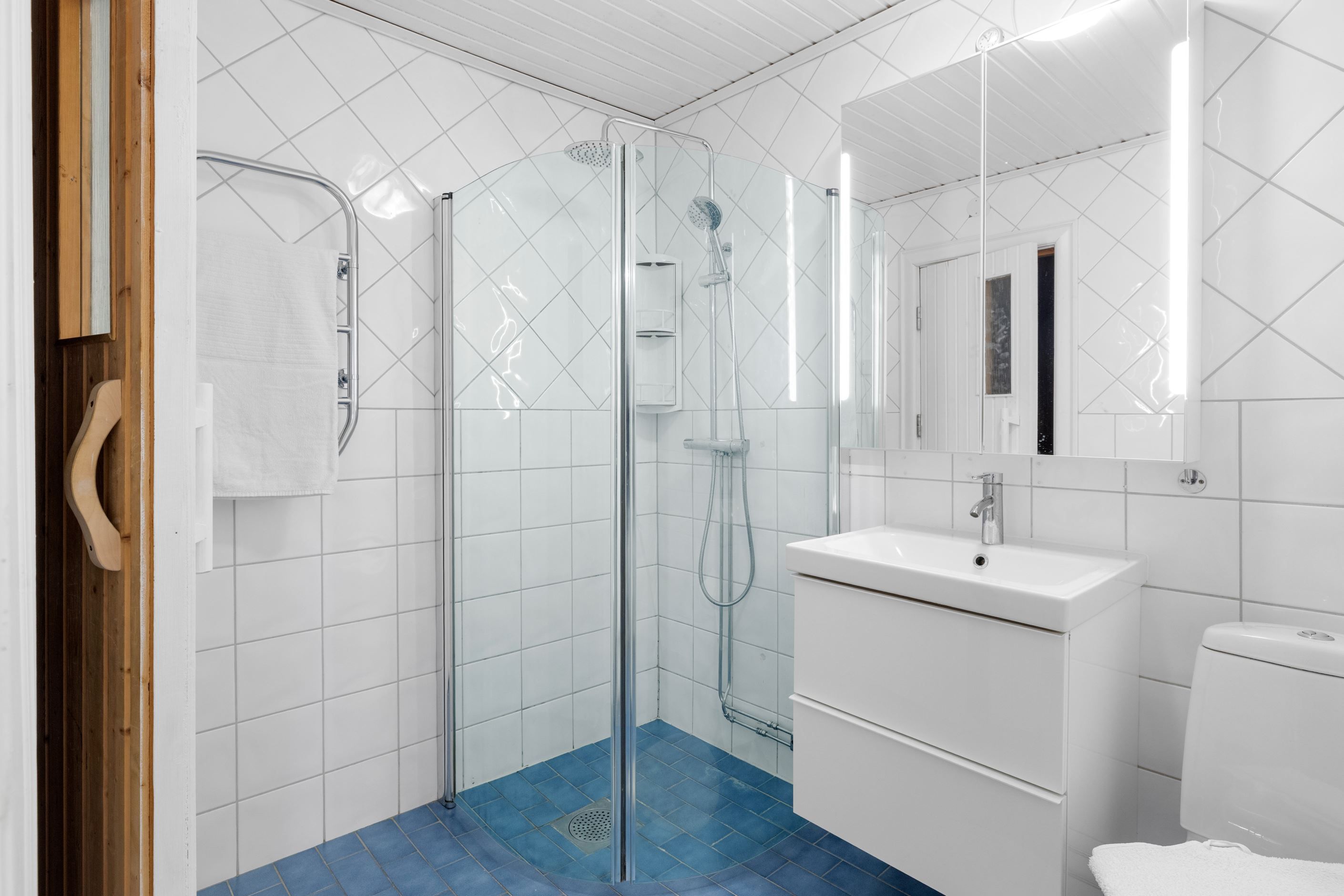 Entréplanet erbjuder fina möjligheter för både tonåringar och hemmakontor med ett stort sovrum med skjutdörrsgarderob, en praktisk tvättstuga, badrum med dusch och bastu samt ett rejält förråd.