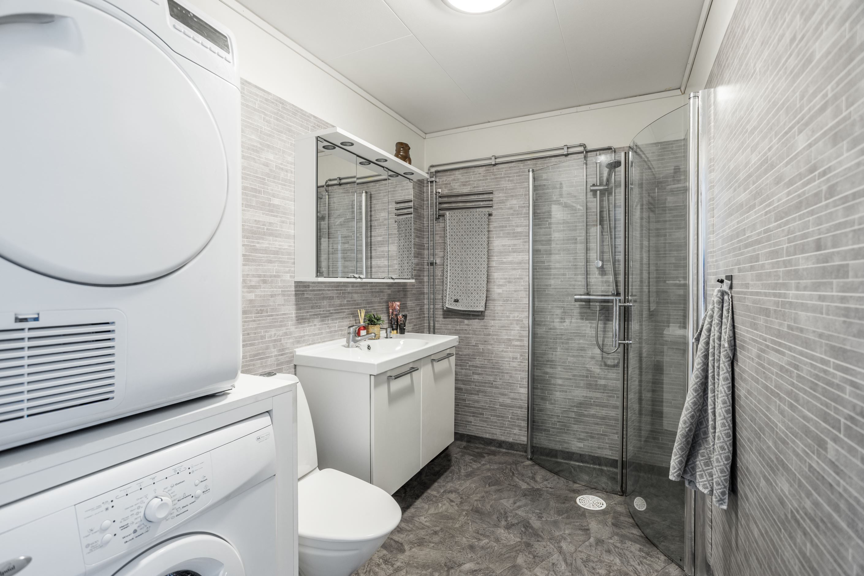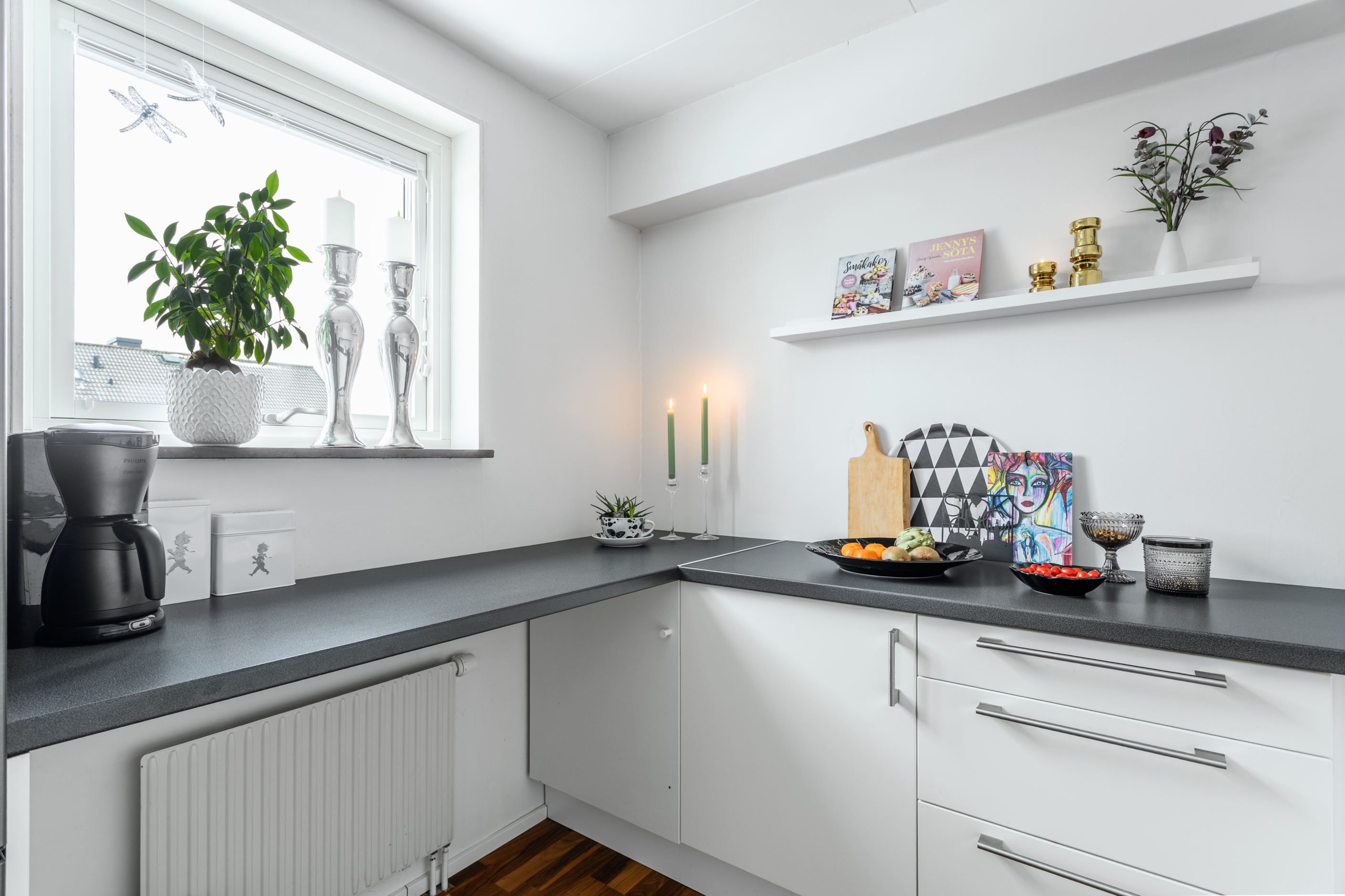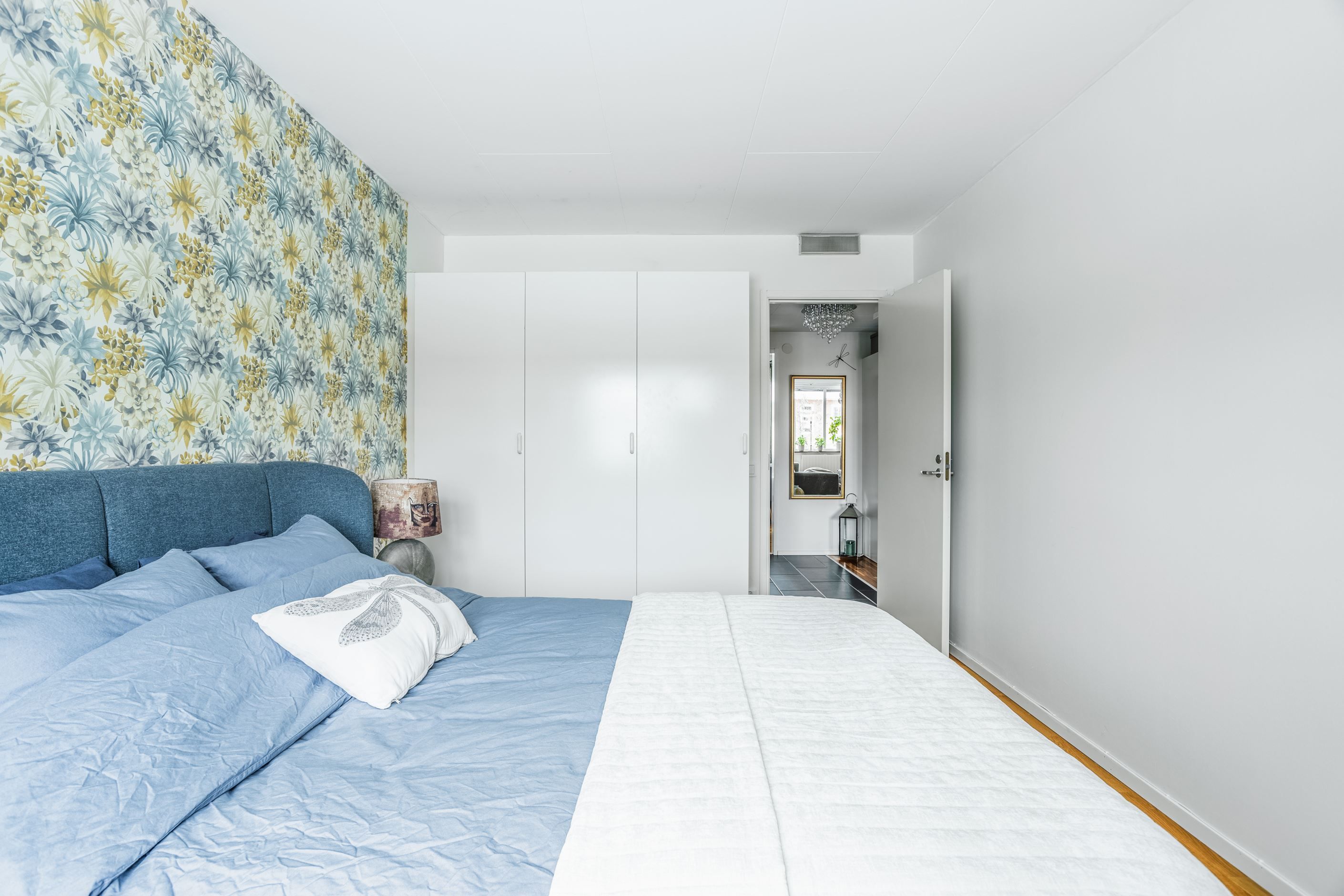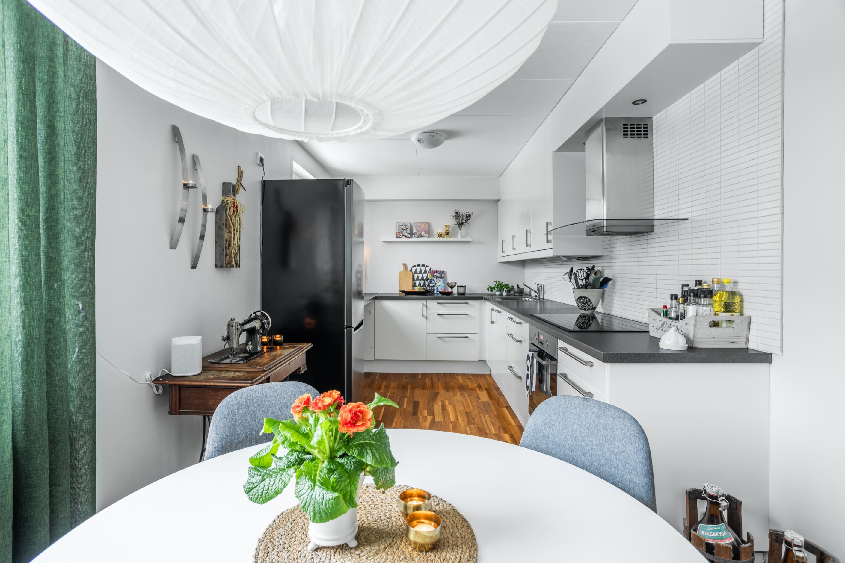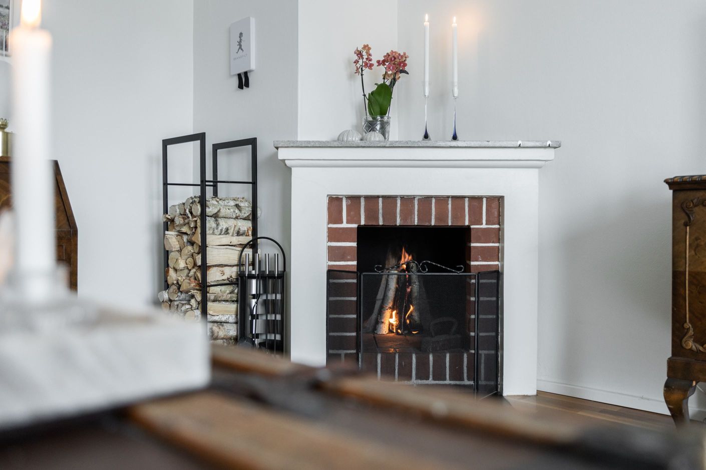 Du möts av en rymlig hall med lättskött klinker på golvet. Till höger finns det rymliga sovrummet med god garderobsförvaring och vardagsrummet med utgång till balkong i soligt läge – perfekt för morgonkaffet eller kvällshänget. Här finns även en vacker öppen spis som skapar extra mysfaktor under årets kallare månader. Det renoverade köket från 2019 med uppdaterade vitvaror ligger beläget till vänster i hallen och är generöst tilltaget och utrustat med kyl/frys, diskmaskin, spis, ugn och fläkt – gott om plats för både vardagsmatlagning och middagsbjudningar. Här finns även plats för ett matbord med 4-5 stolar. Badrummet är i gott skick med plastmatta och våtrumstapet – praktiskt och lättskött. Både tvättmaskin och torktumlare finns i bostaden vilket underlättar vardagens bestyr.