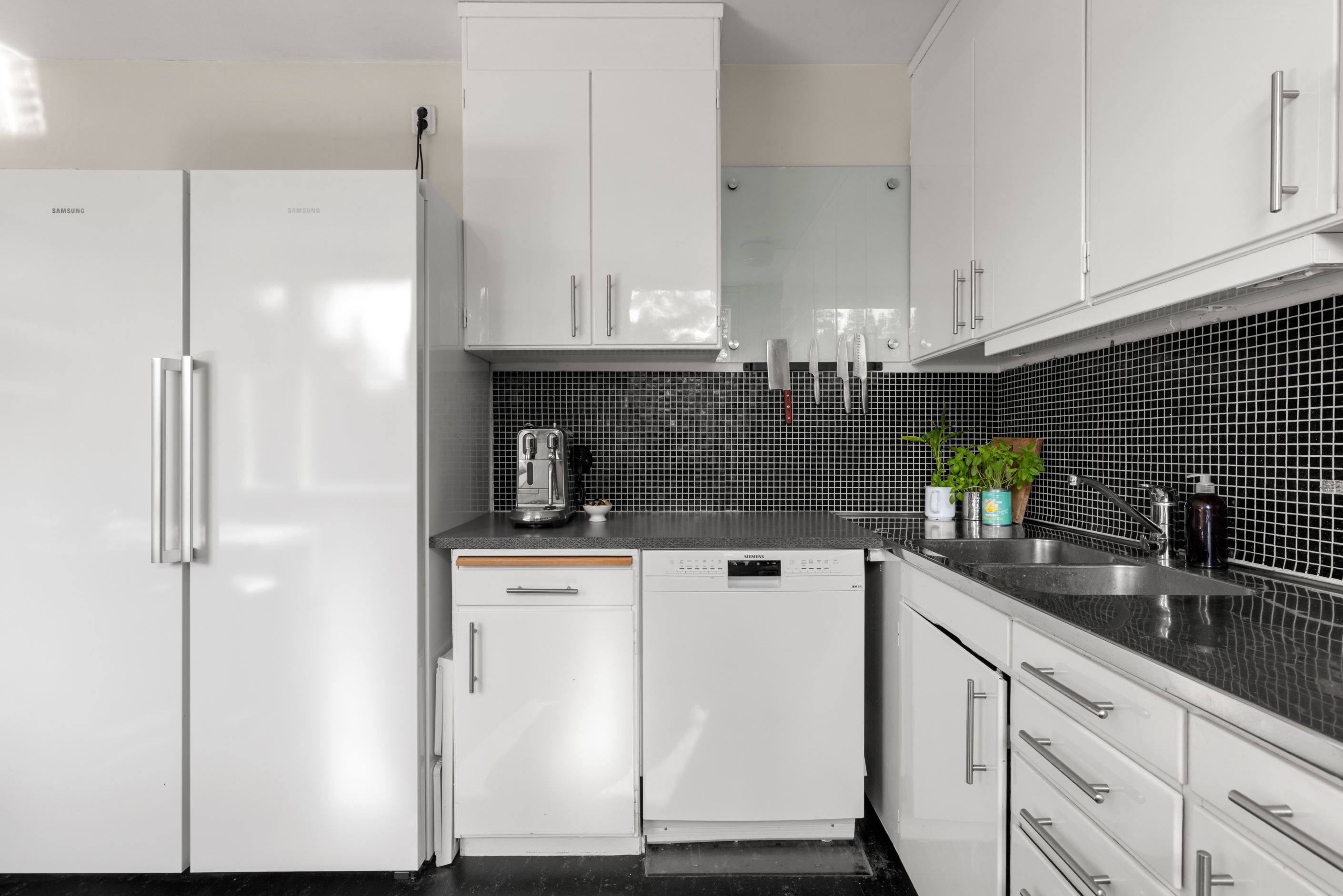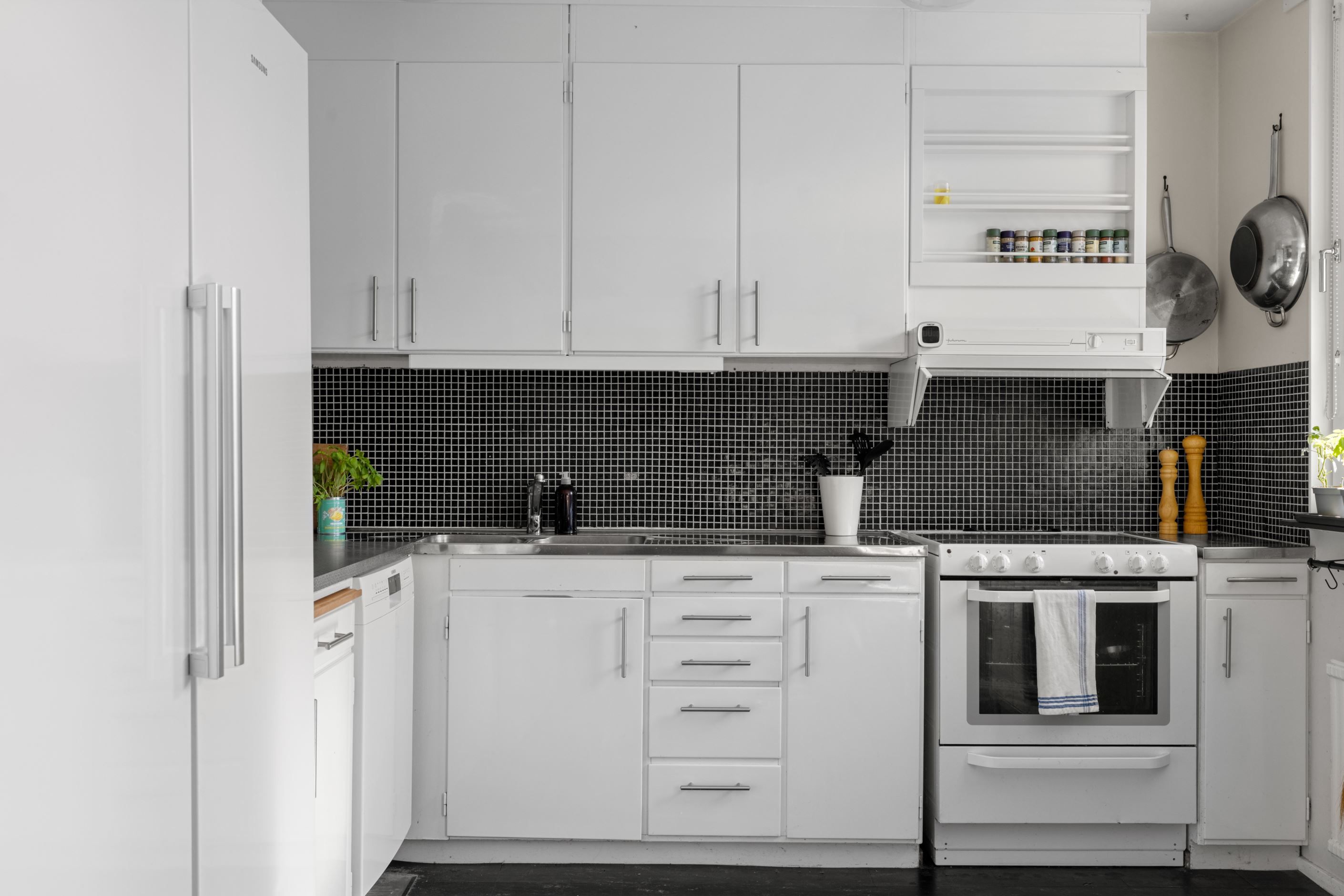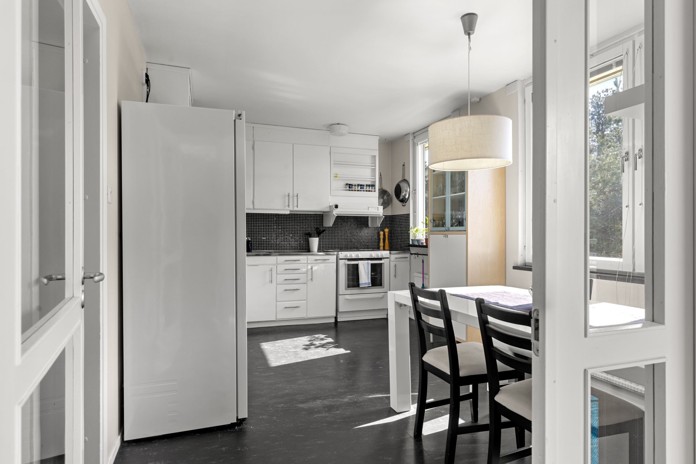 Köket har gott om arbetsytor och plats för matgrupp, medan de två badrummen skapar en smidig vardag – det ena med dusch och det andra med badkar samt tvättmaskin. Lägenheten har dessutom nyligen uppdaterats med nya ytskikt såsom golv och målning, vilket ger ett modernt och enhetligt intryck. Praktisk hall med garderober, hatthylla samt säkerhetsdörr. Förråd finns bekvämt på samma våningsplan.