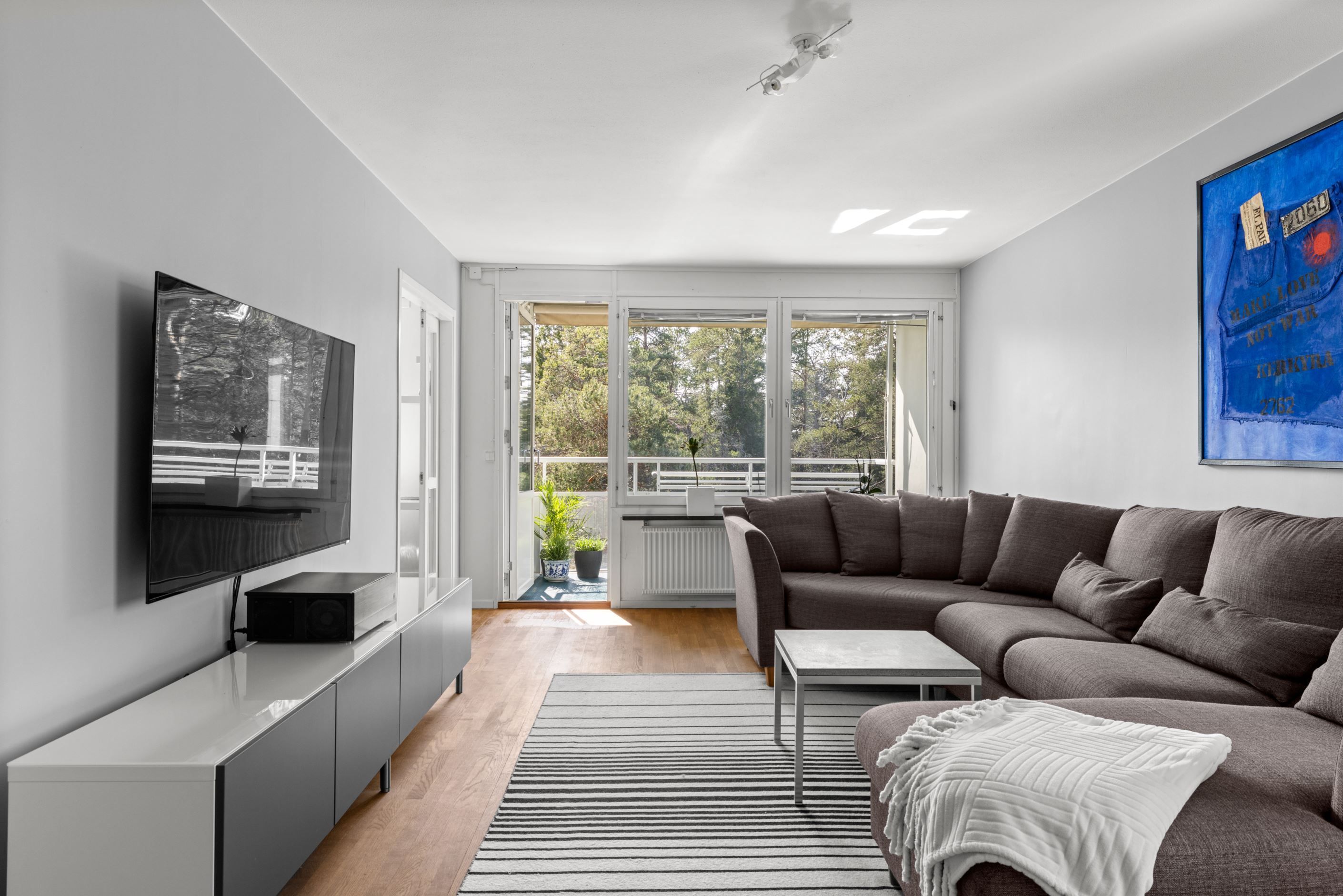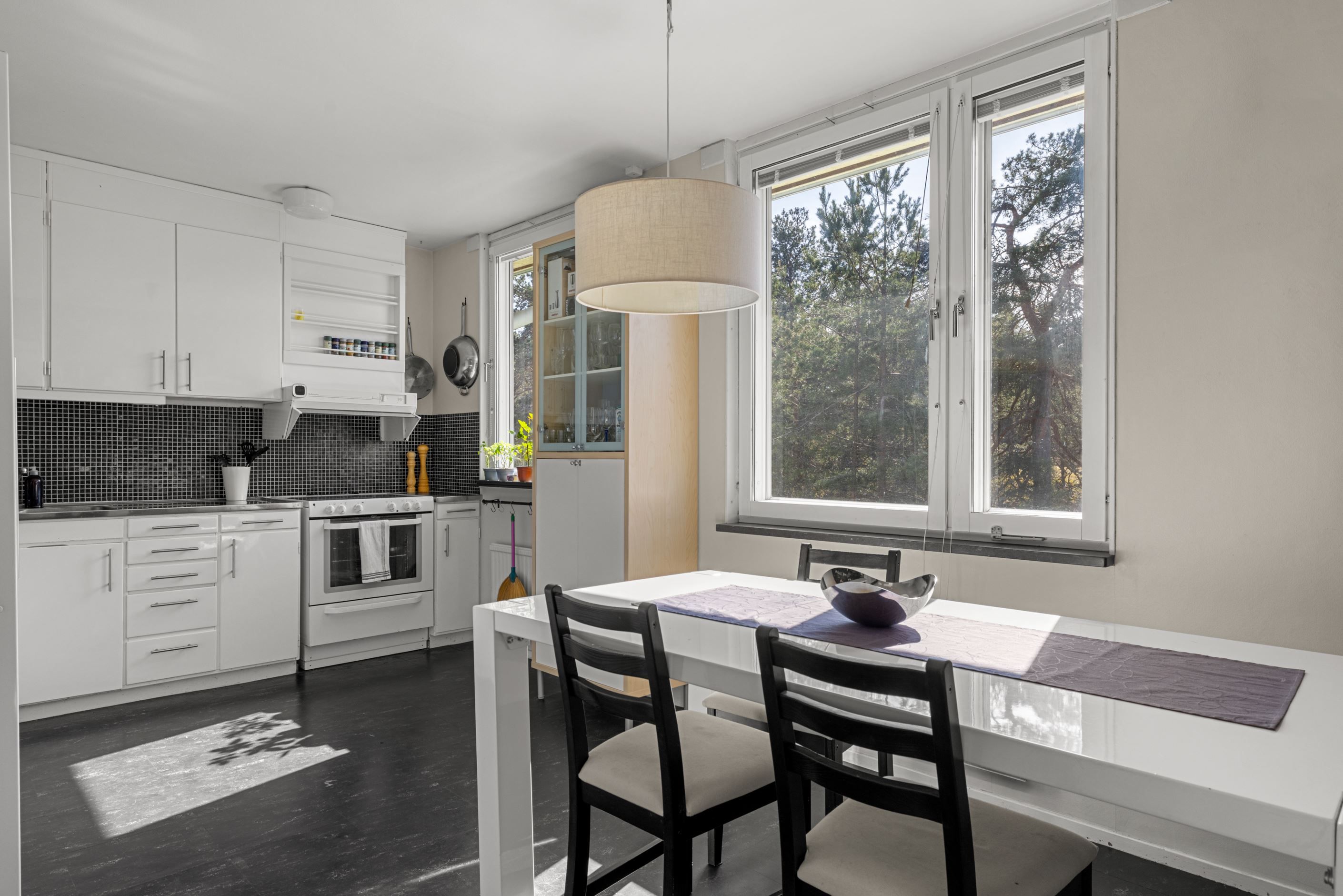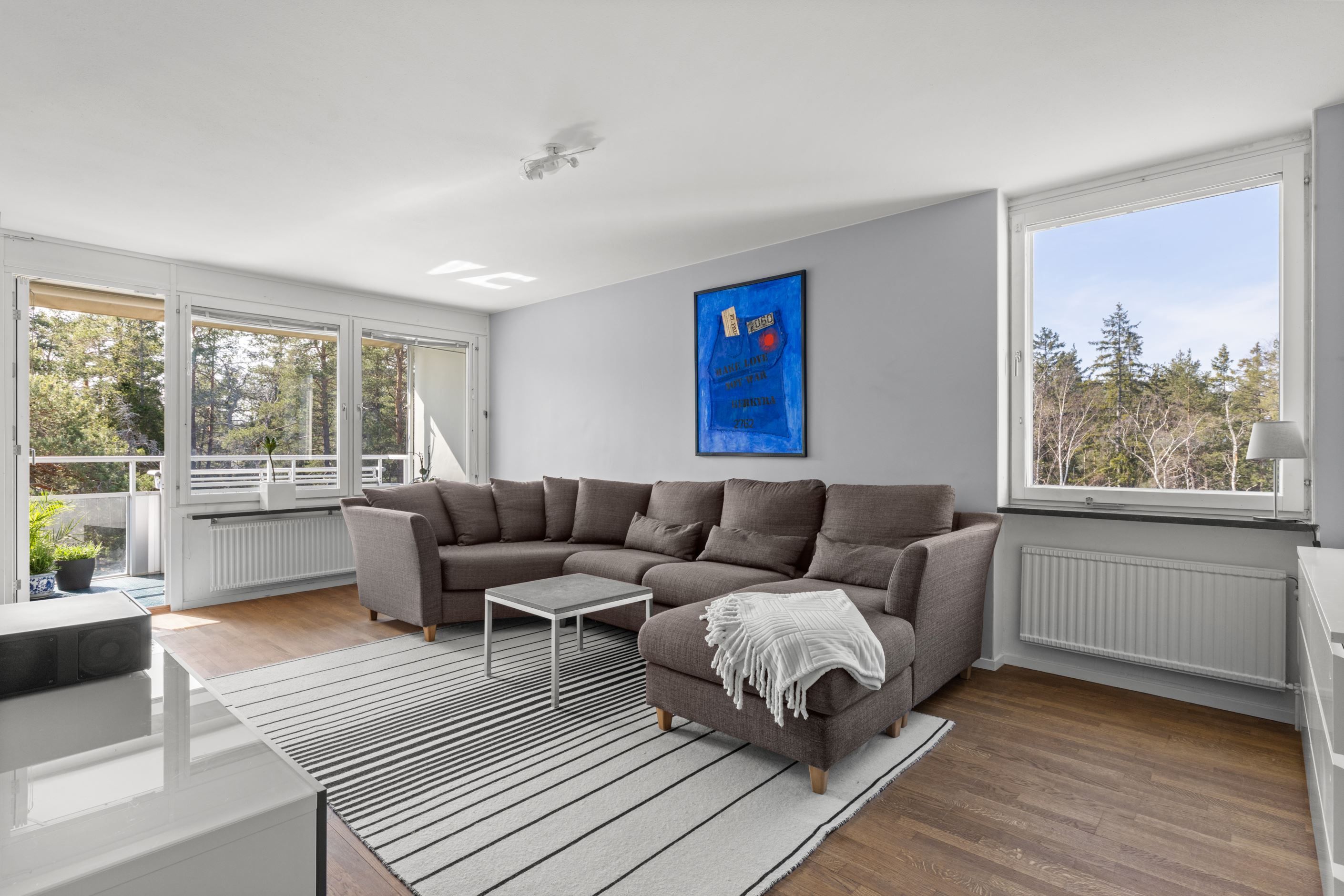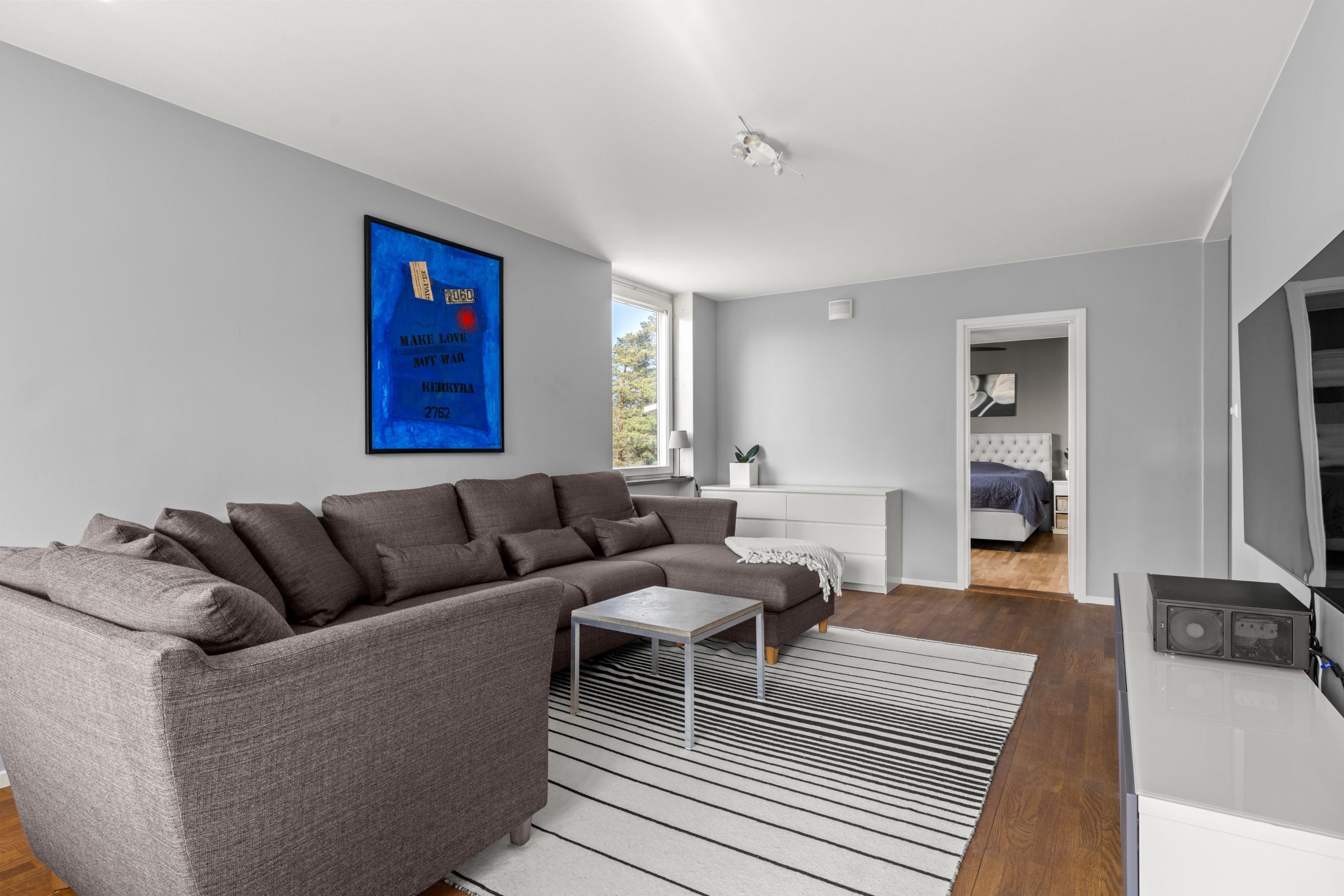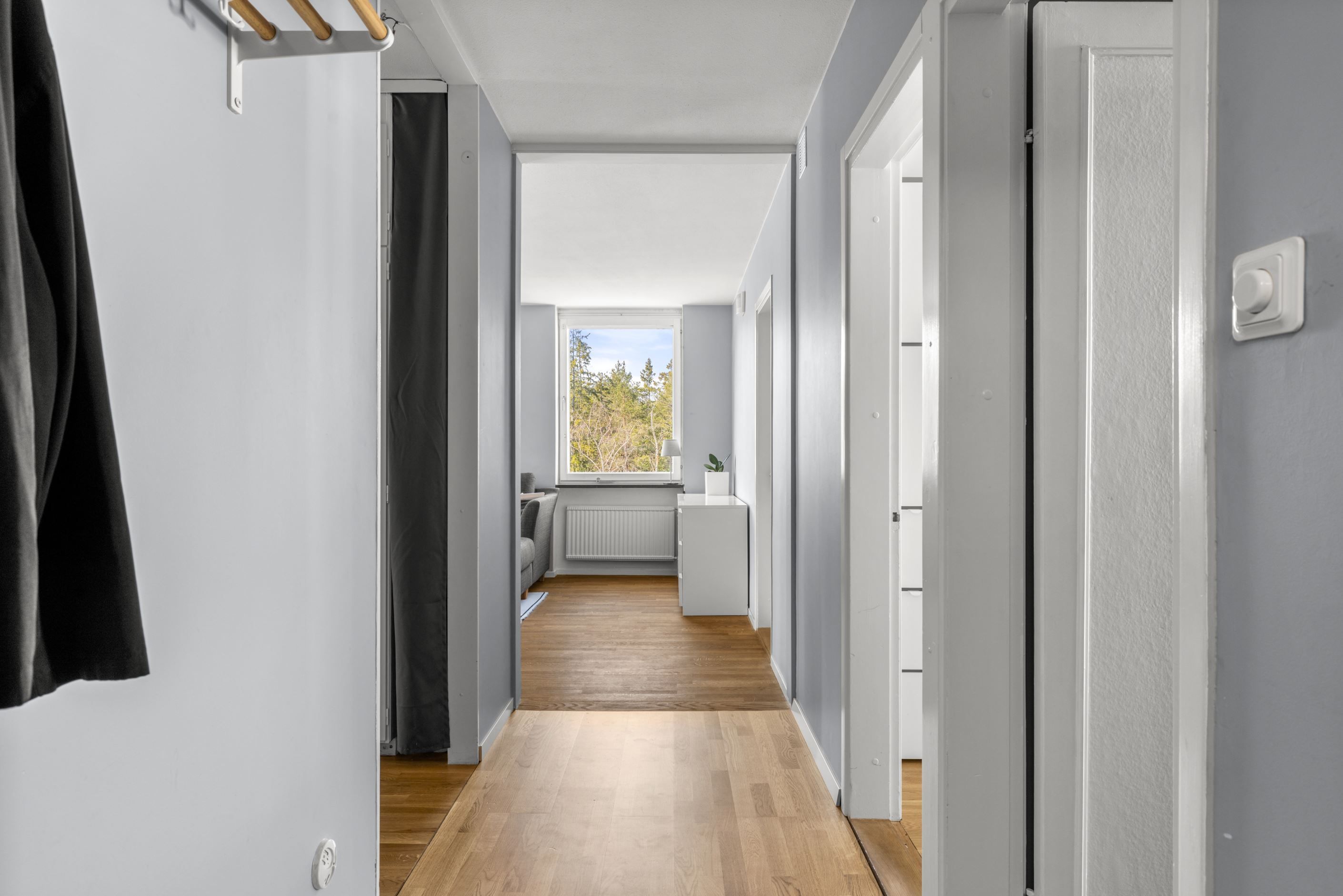Välkommen till en ljus och välplanerad gavellägenhet högst upp i huset – med ett insynsskyddat läge och fönster i flera väderstreck som fyller bostaden med naturligt ljus.