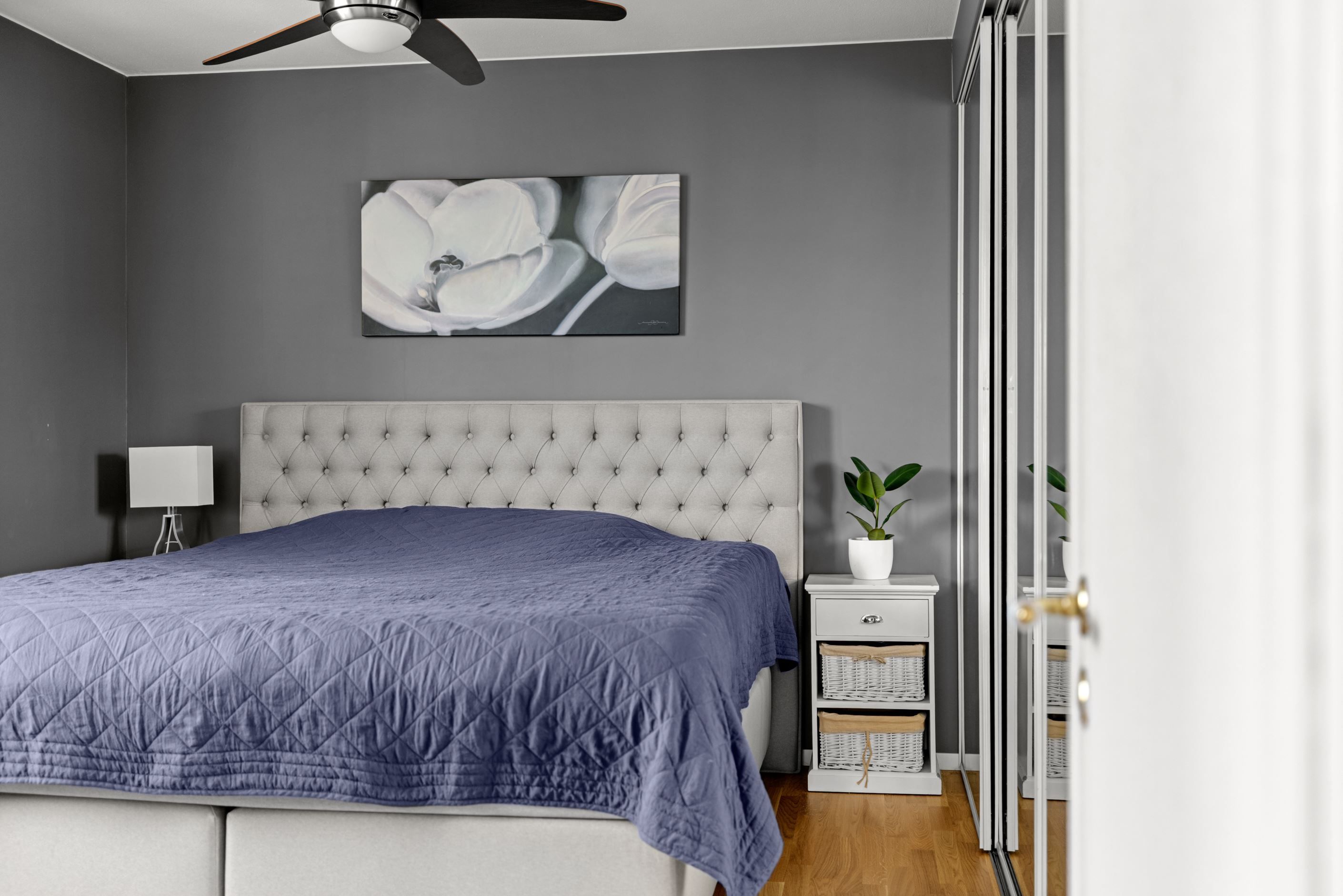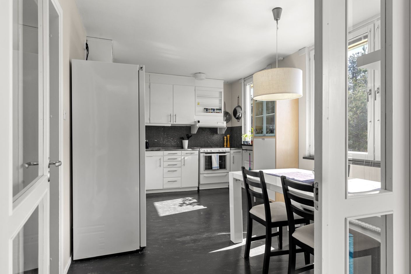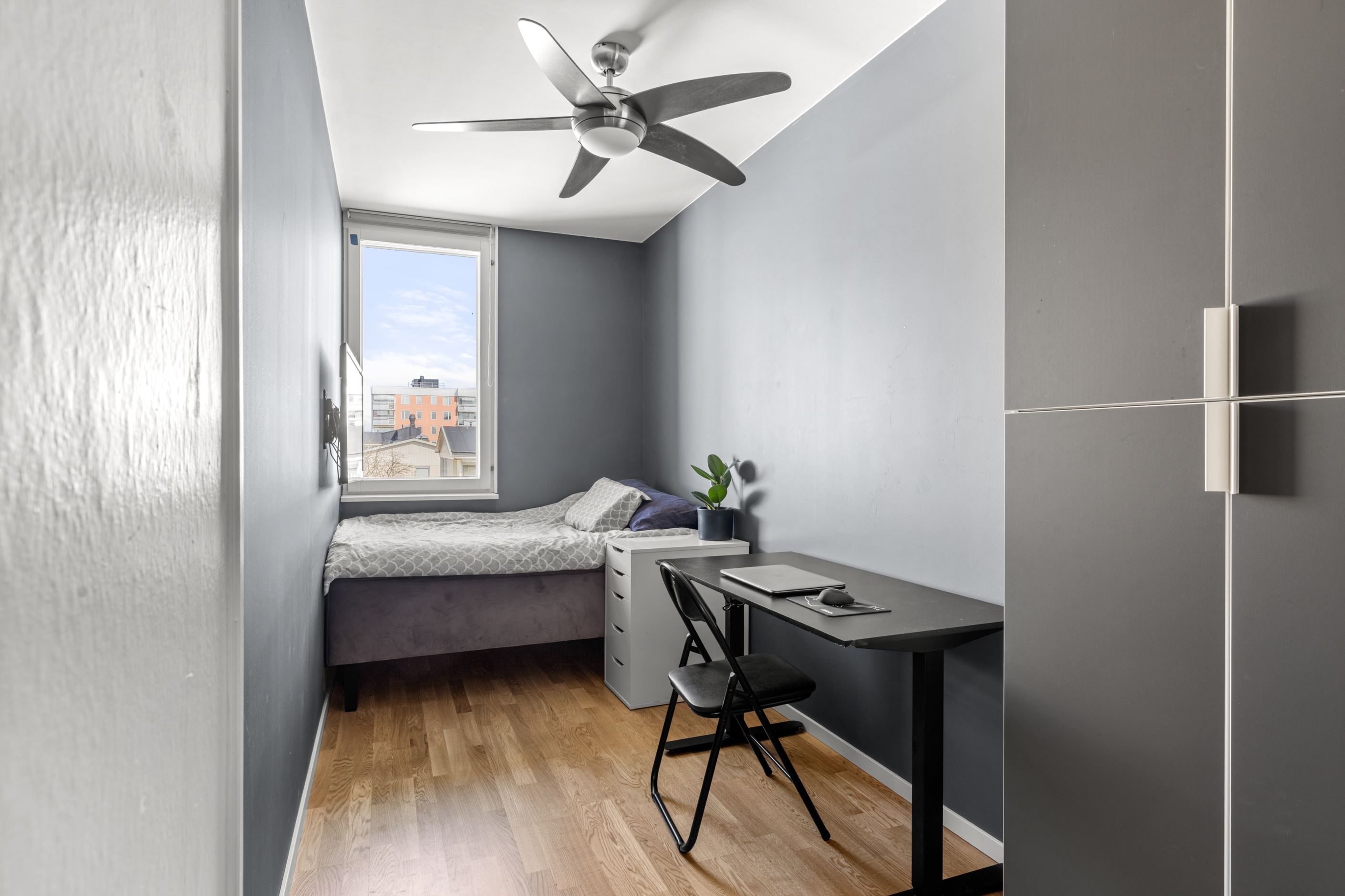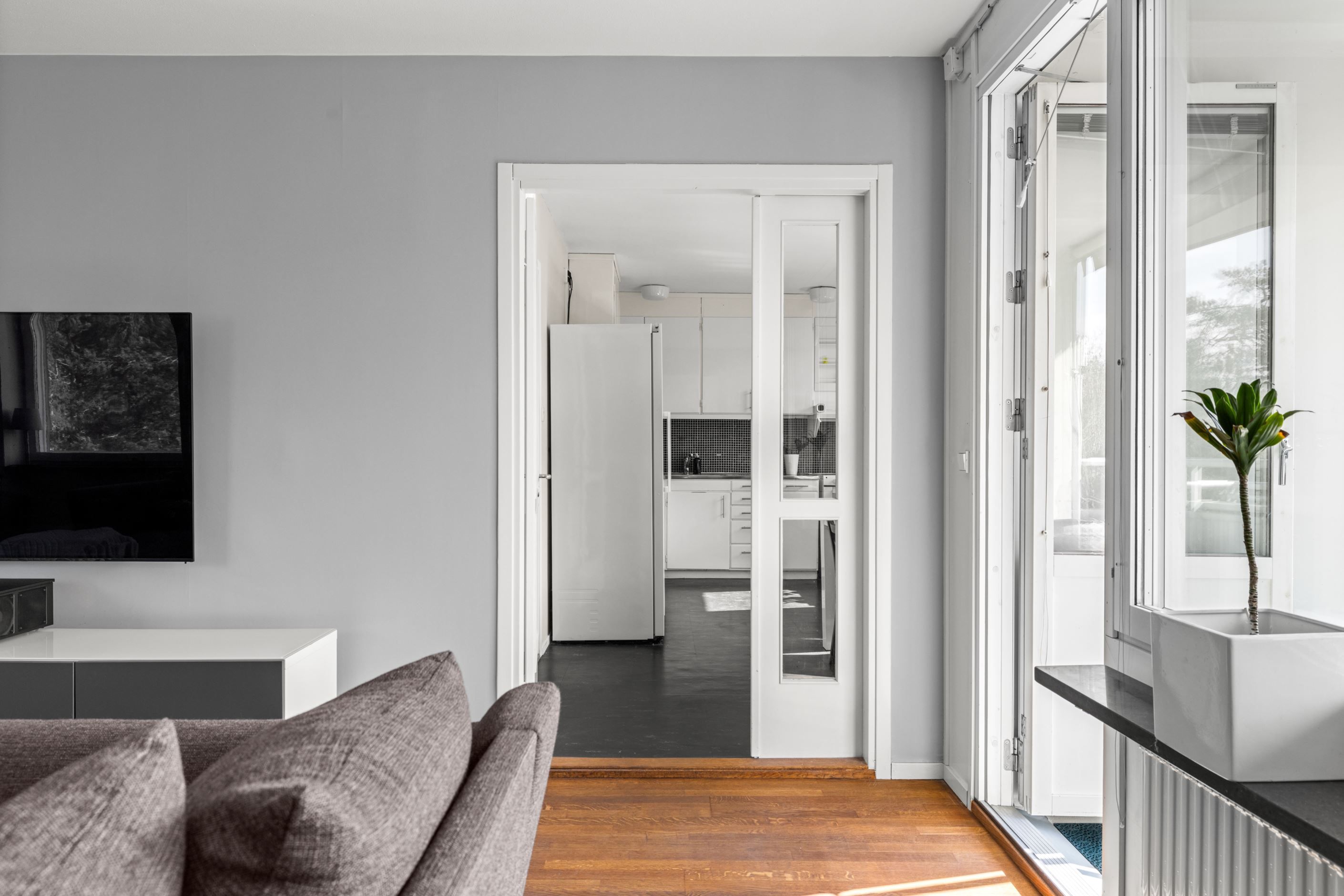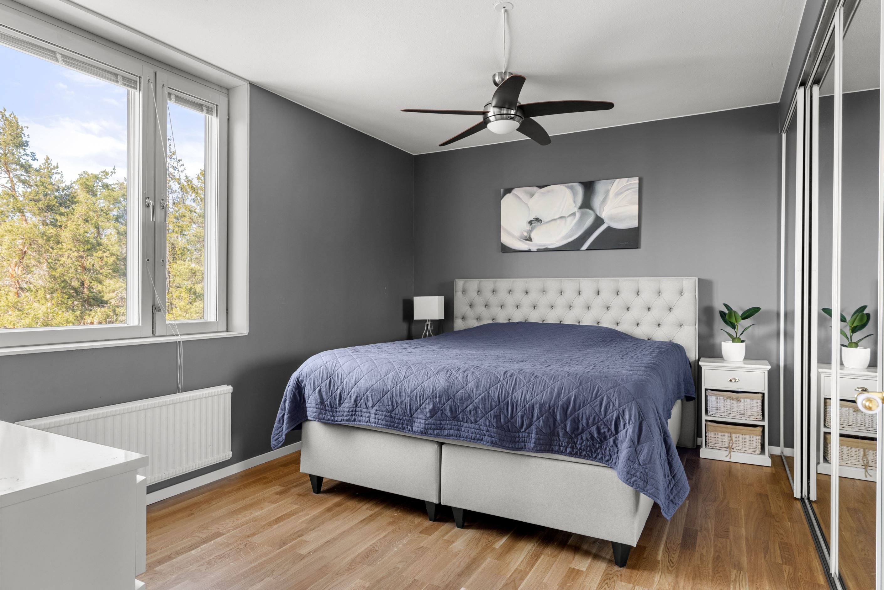 Välkommen till en ljus och välplanerad gavellägenhet högst upp i huset – med ett insynsskyddat läge och fönster i flera väderstreck som fyller bostaden med naturligt ljus.