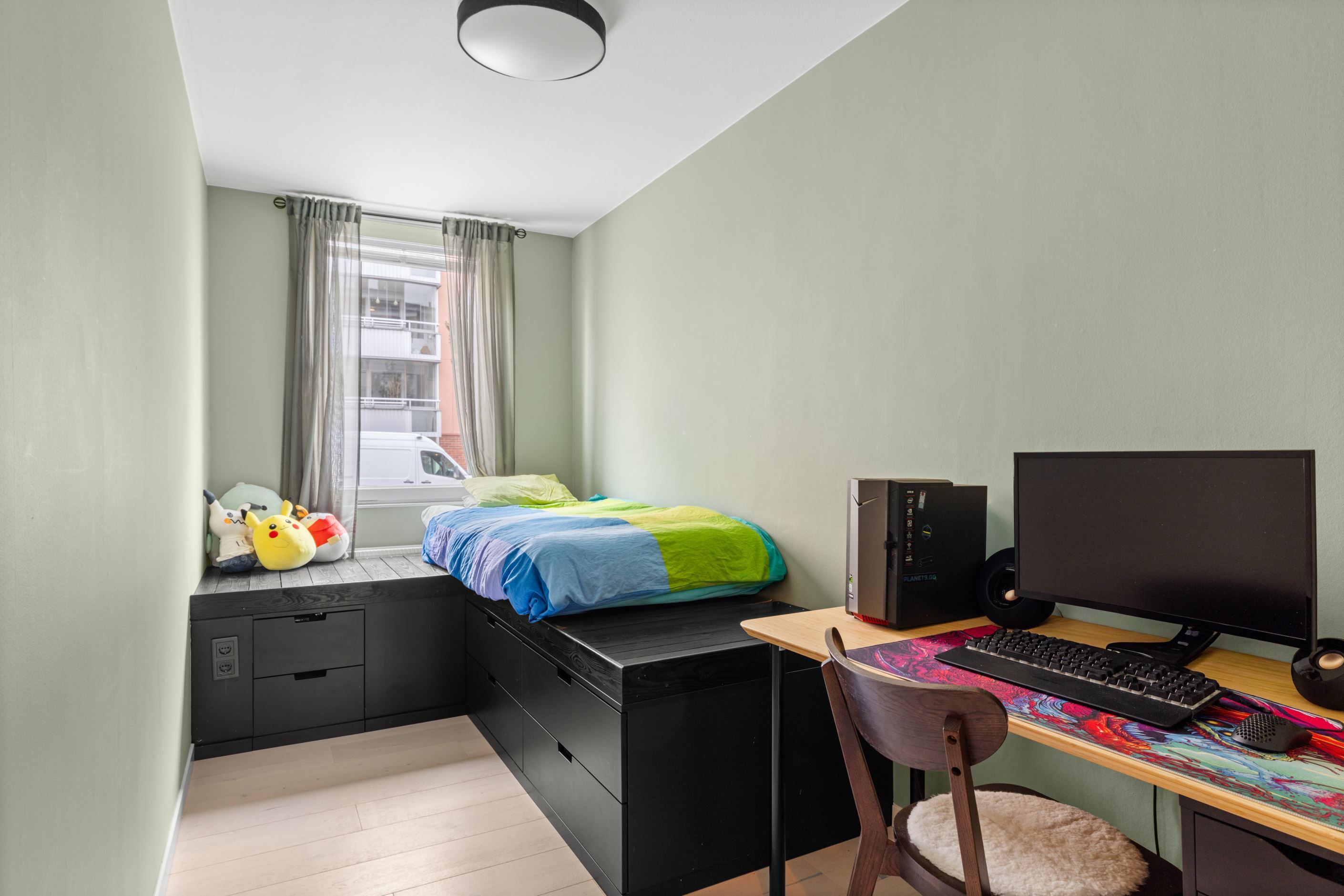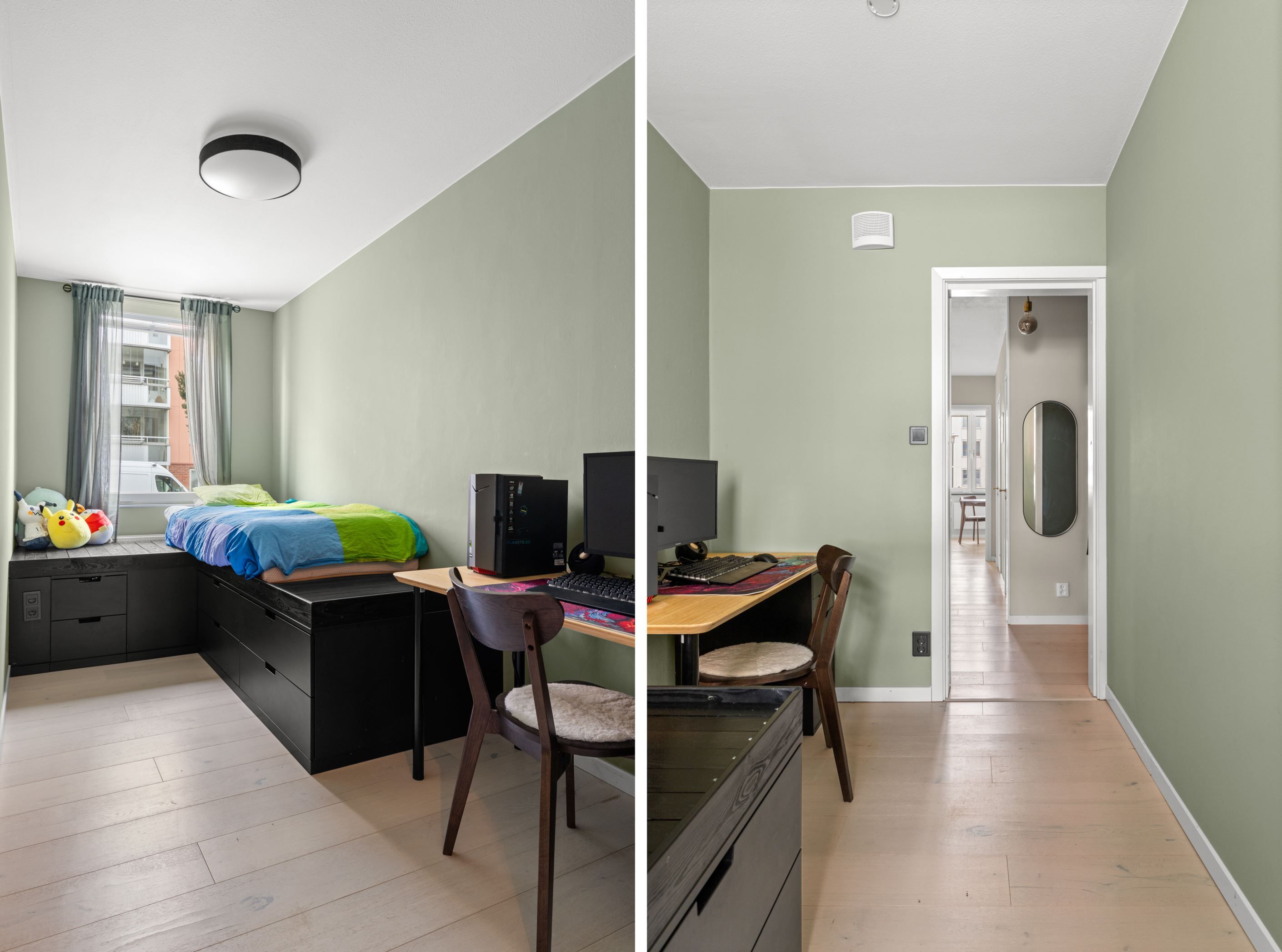 Bostaden erbjuder ett härligt ljusinsläpp från stora fönsterpartier som tillsammans med den smarta planlösningen skapar en luftig och harmonisk känsla. Här bor du i en yteffektiv lägenhet där varje kvadratmeter används på rätt sätt.