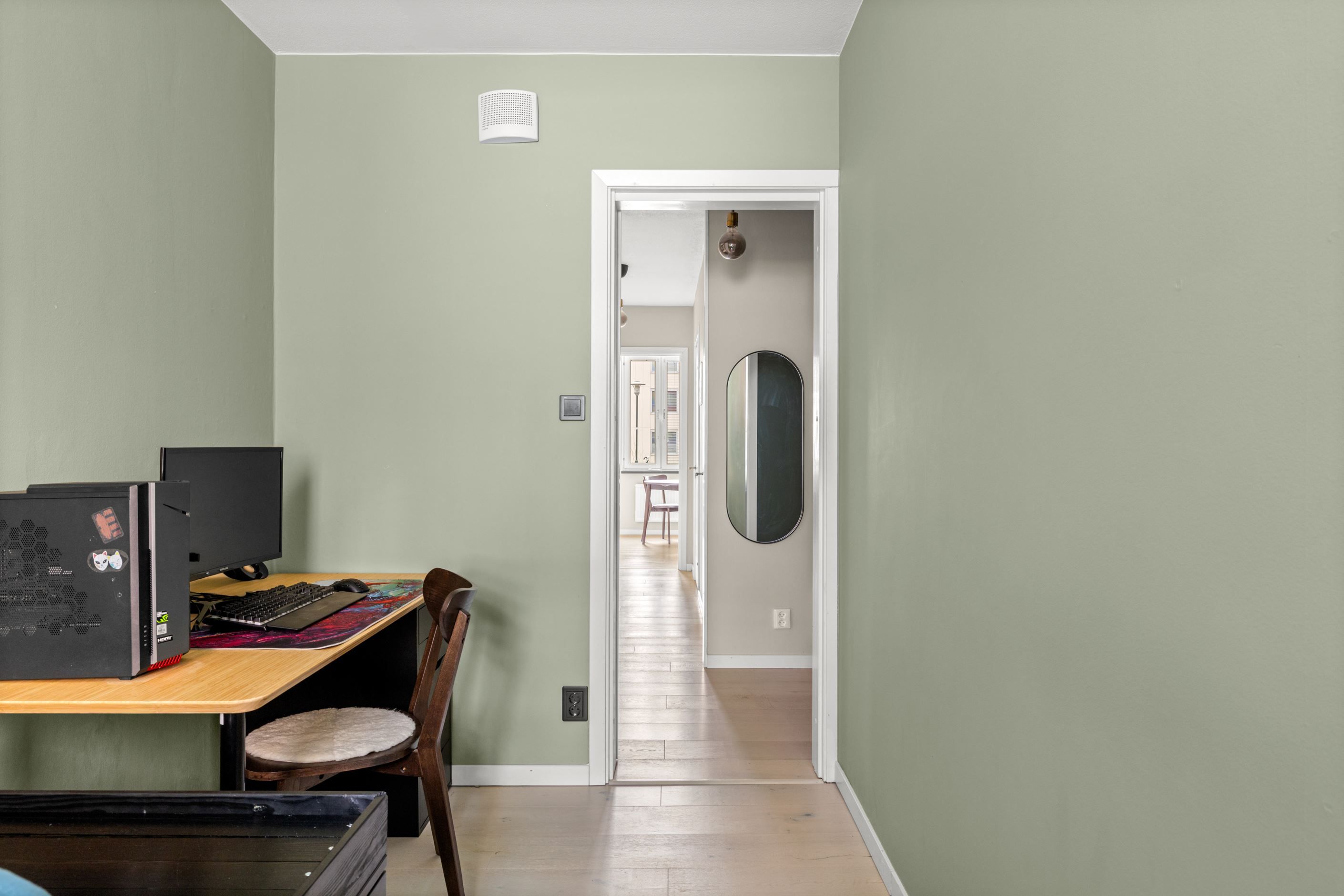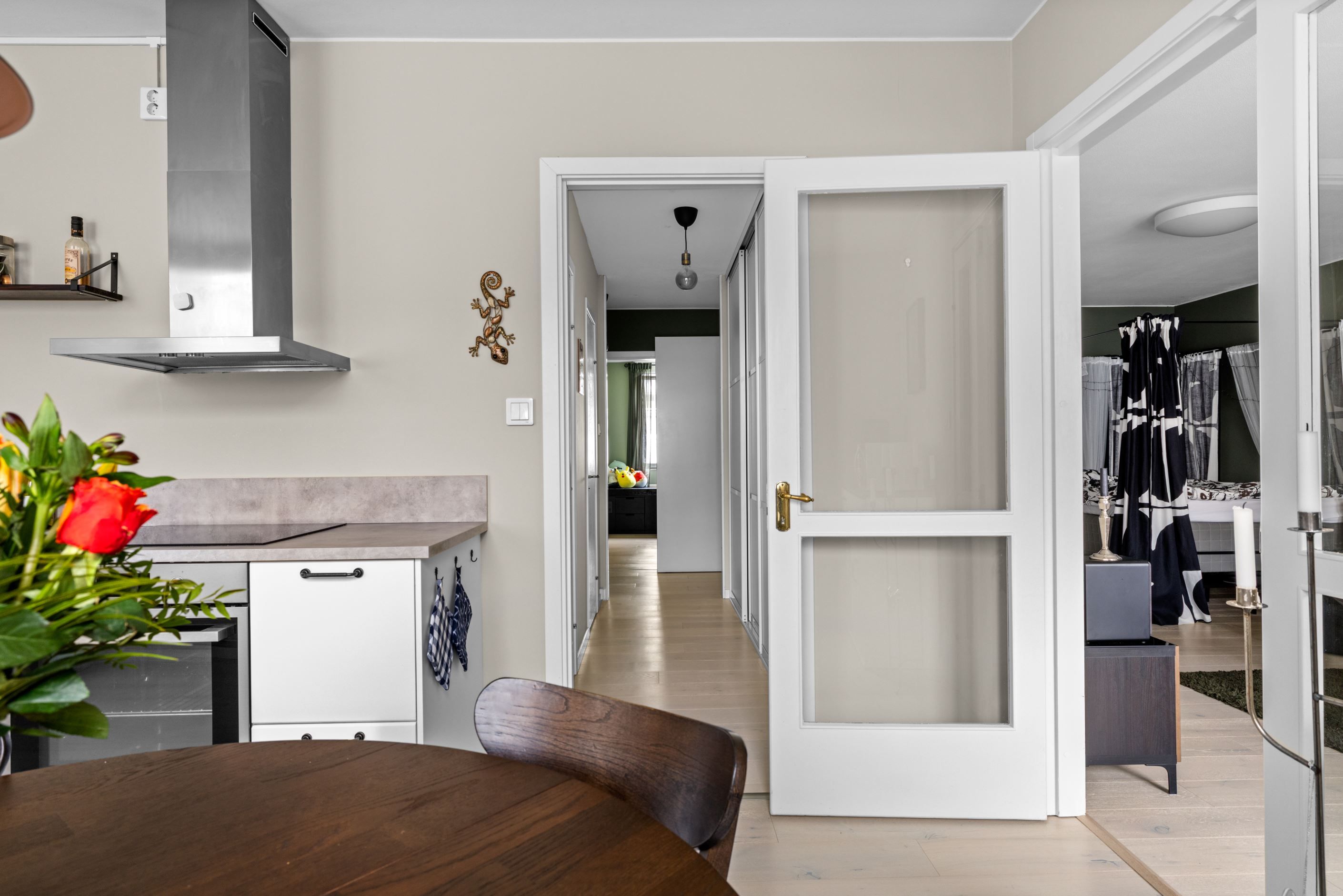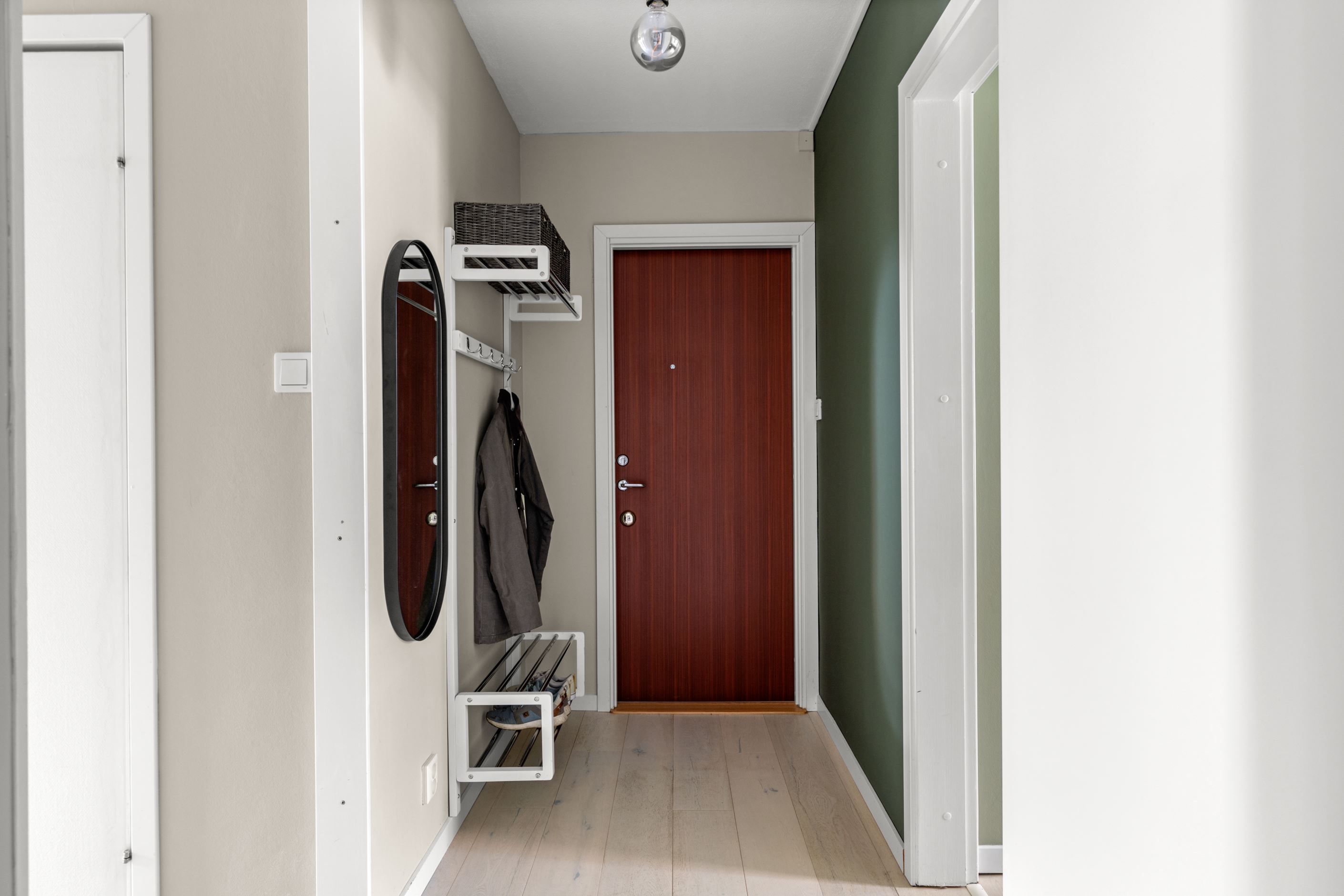 Säkerhetsdörren bidrar till en ökad trygghetskänsla och ljudisolering – en detalj som gör stor skillnad i vardagen.