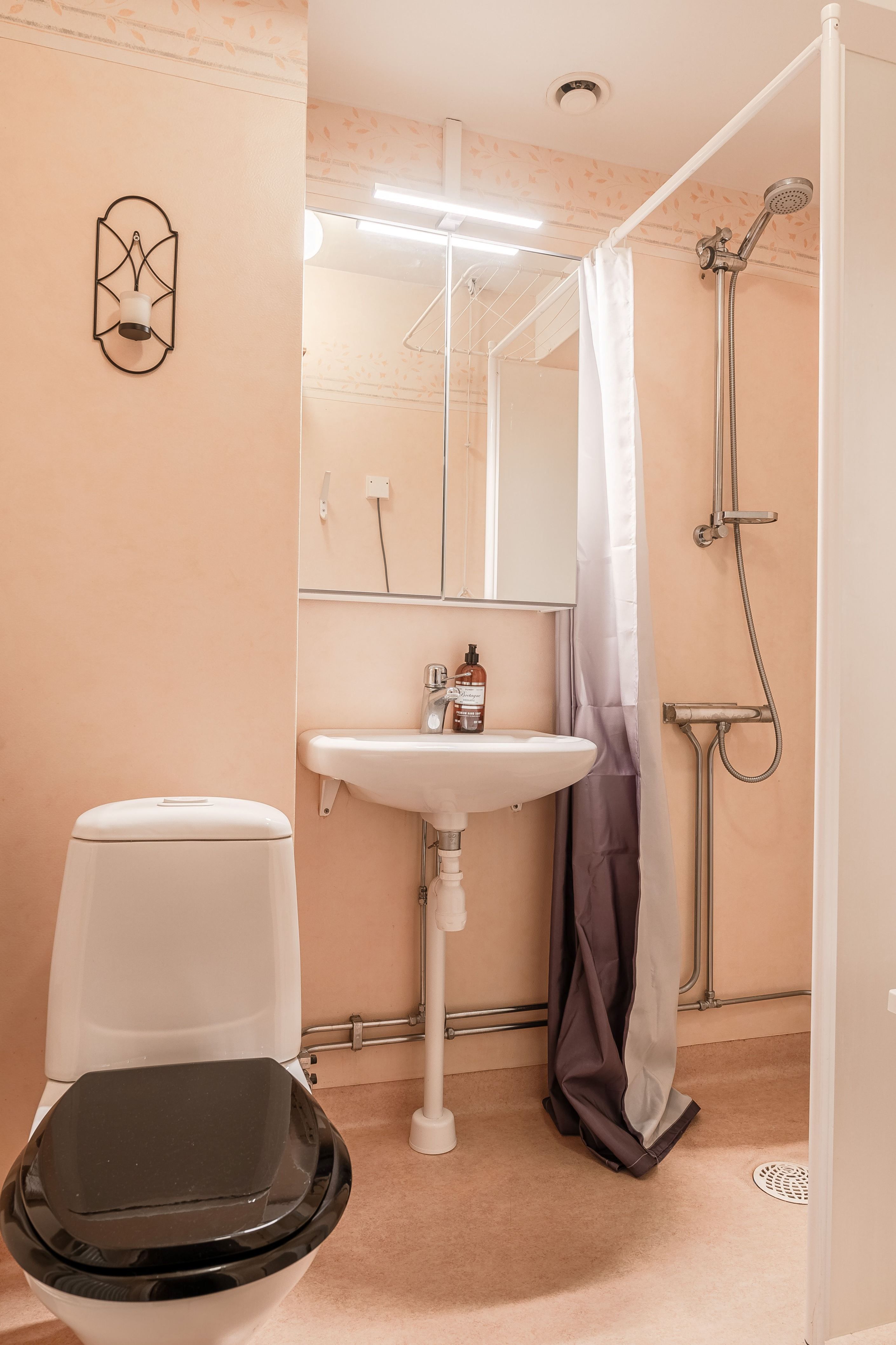 Välkommen att kliva in i den trevliga hallen som erbjuder dig utrymme för avhängning av ytterkläder och gott om förvaringsmöjligheter i flertalet garderober som finns till bjuds. Här kan du med enkelhet hänga bort mycket av dina egna ytterkläder för att på så sätt undvika plotter och lämna utrymme till dina vänner och bekanta. Direkt till höger ligger sedan bostadens väl tilltagna badrum utrustat med WC, dusch samt handfat med tillhörande spegelskåp för småförvaring. Här har du också lyxen av egen tvättmaskin!