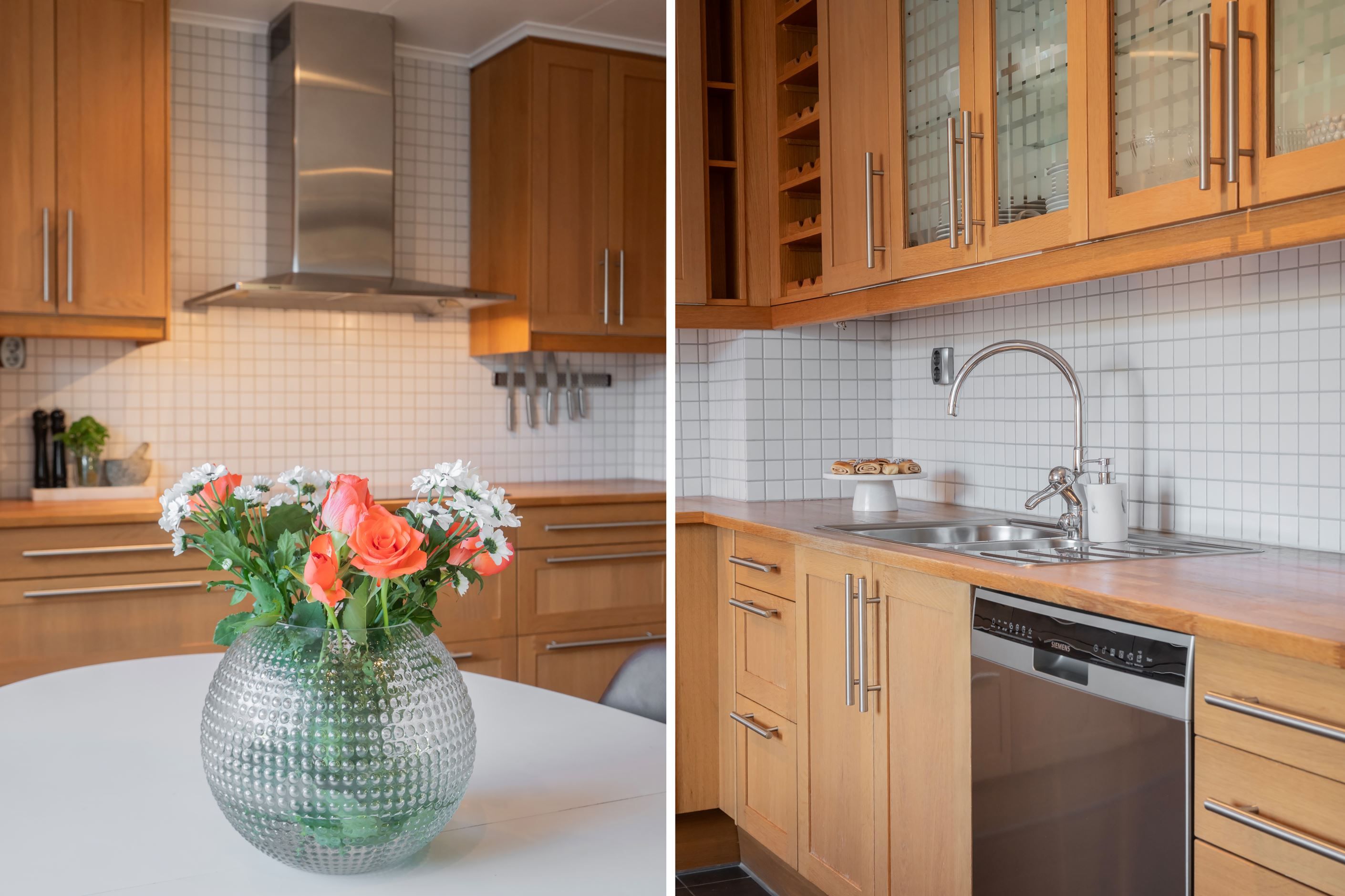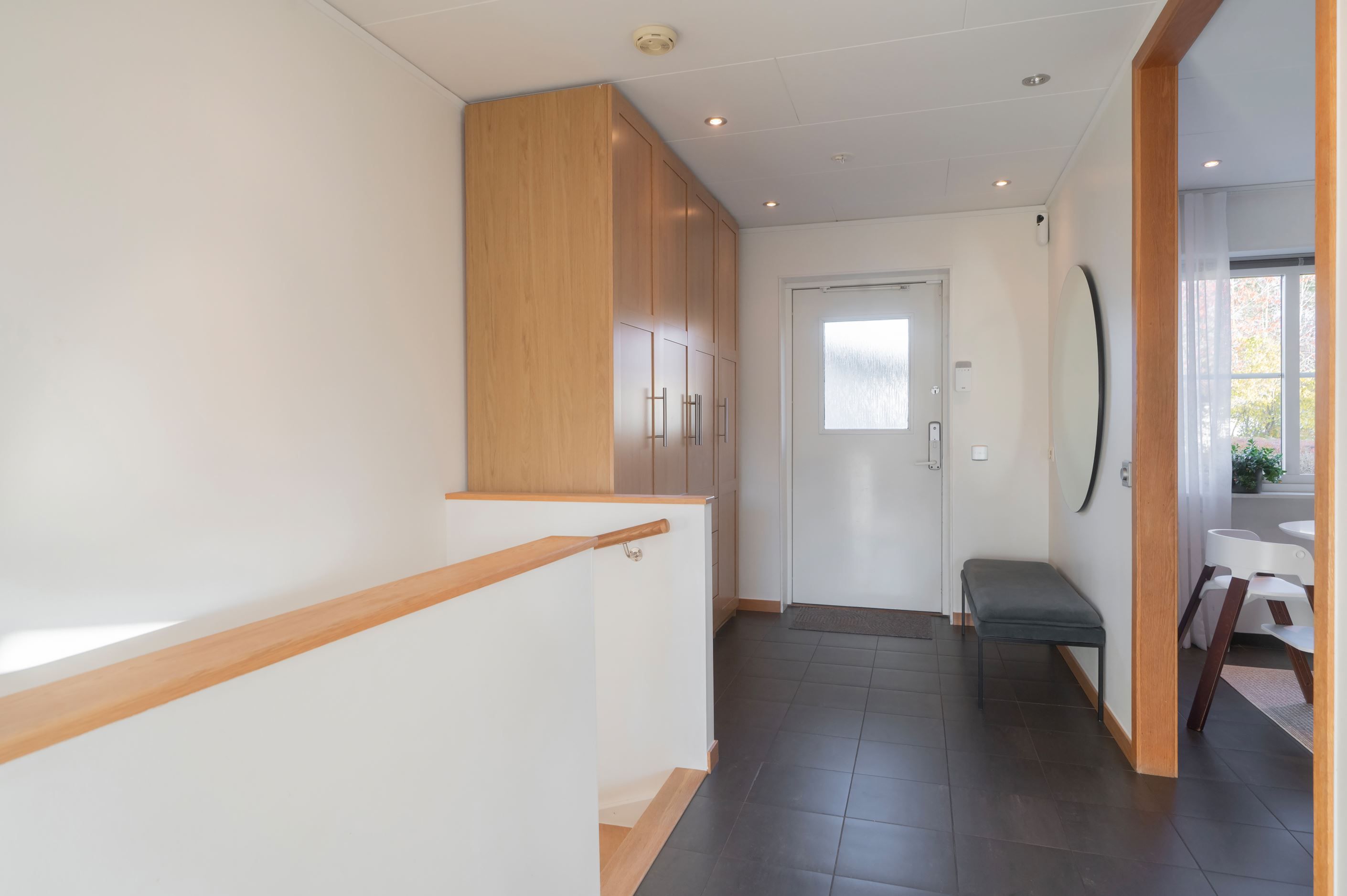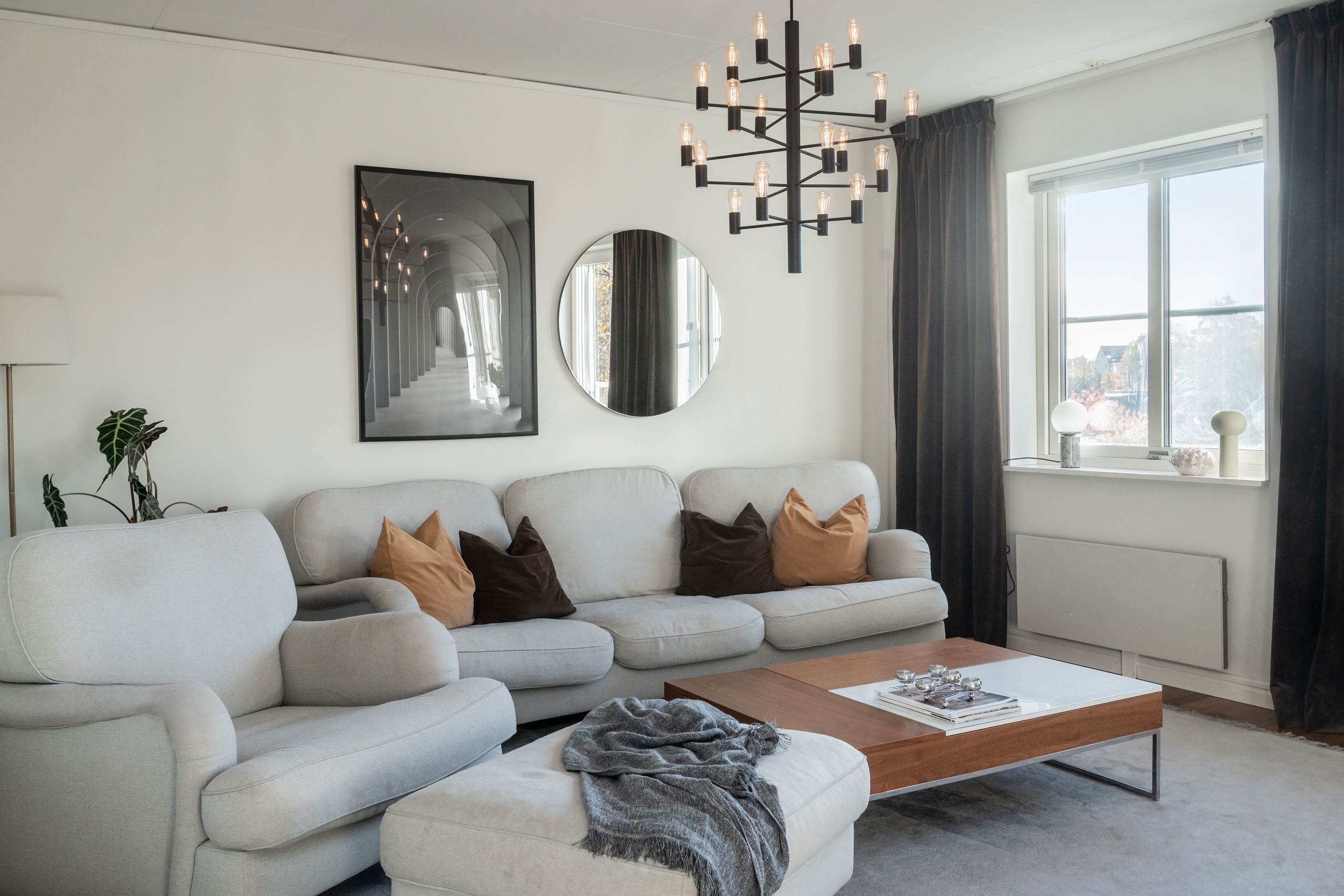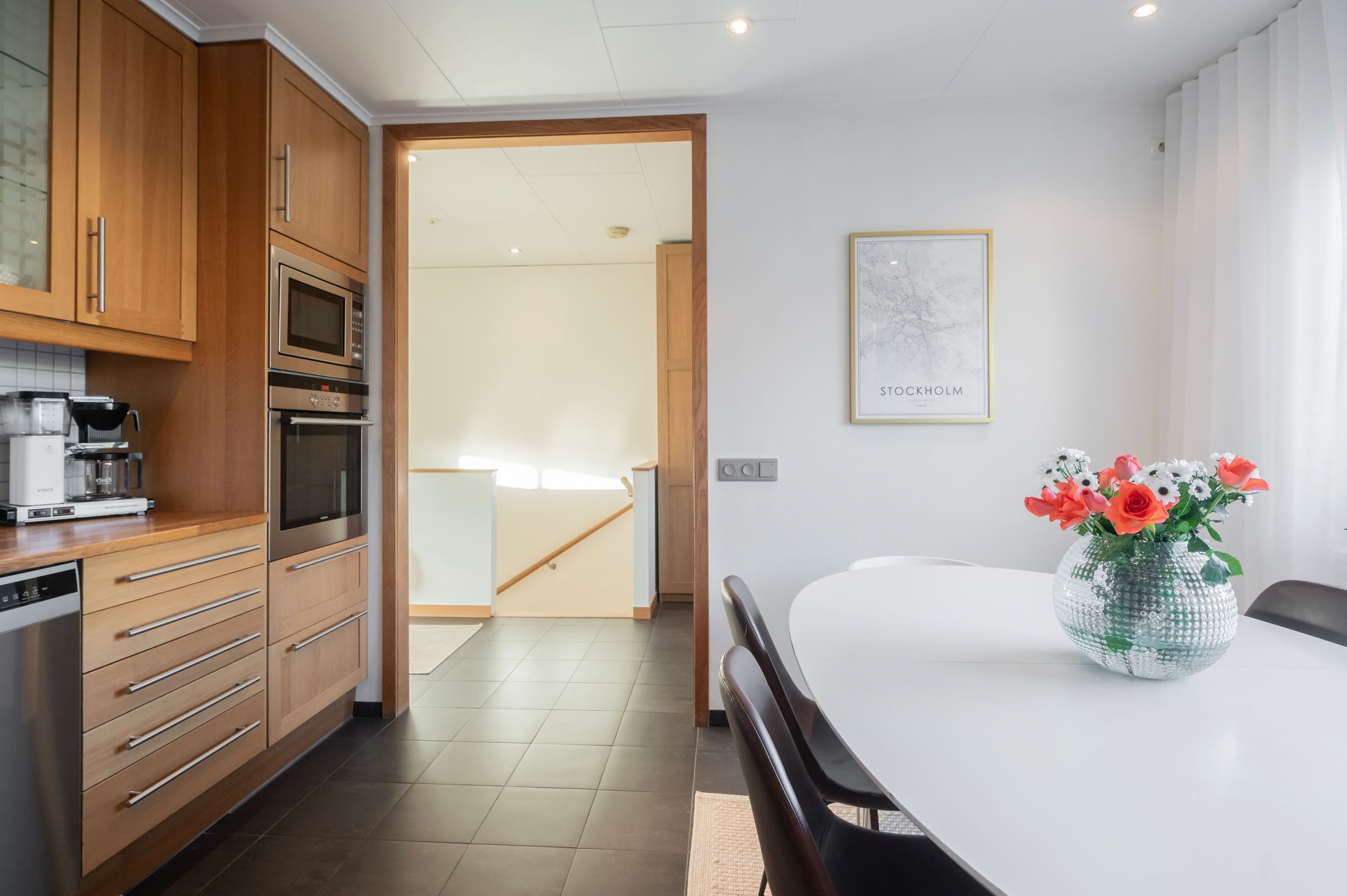 De stora fönsterpartierna ger ett härligt ljusinsläpp och skapar en luftig och inbjudande känsla i hela hemmet. Här möts ni av smakfulla materialval, fina sociala ytor och genomgående parkettgolv som tillsammans ger bostaden dess unika karaktär.