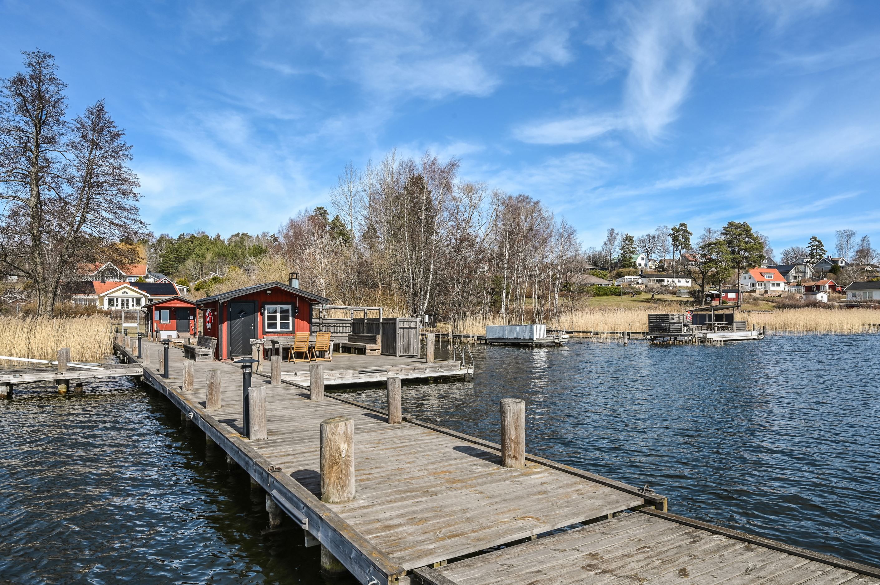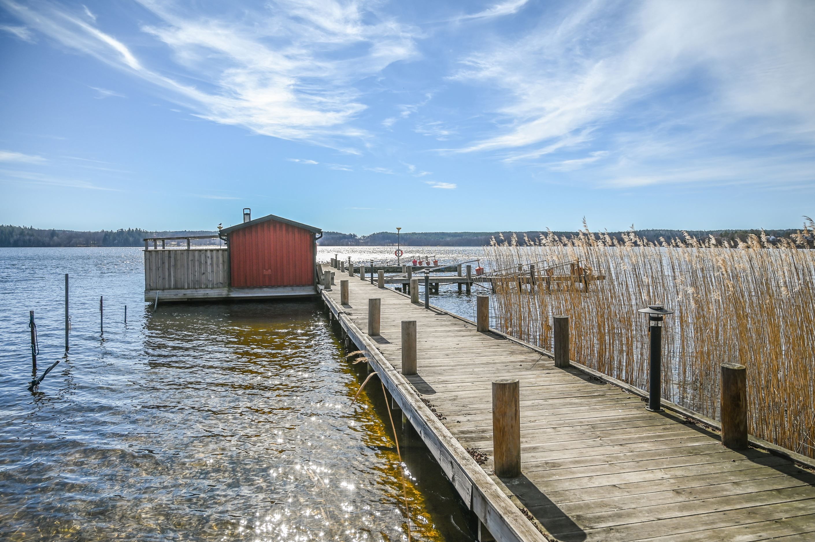 Samfällighetens brygga med båtplatser och bastu