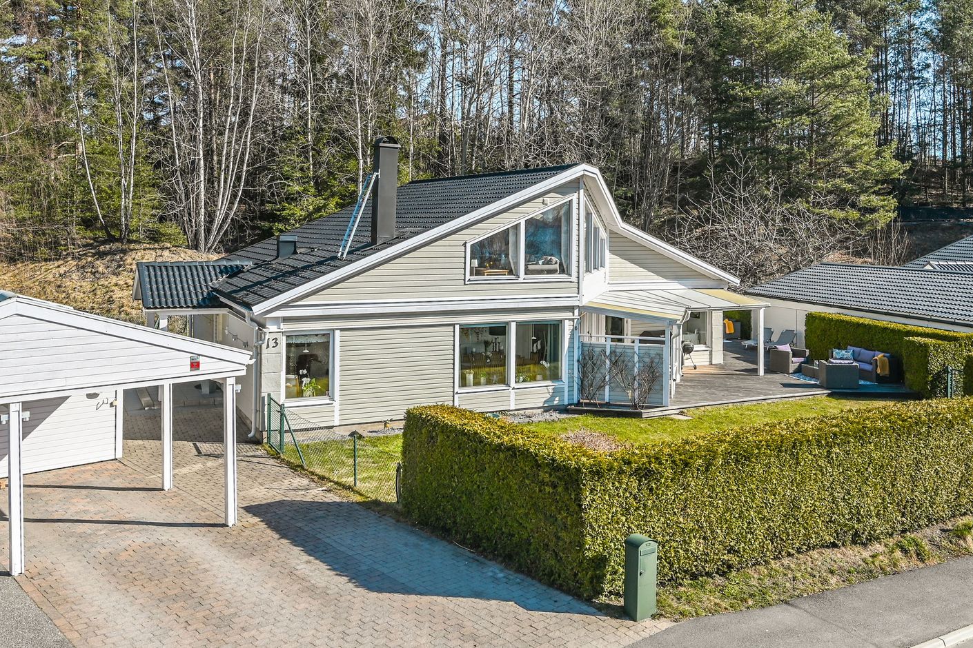 Detta är ett hem att trivas i – med natur, vatten, gemenskap och bekvämligheter runt knuten.