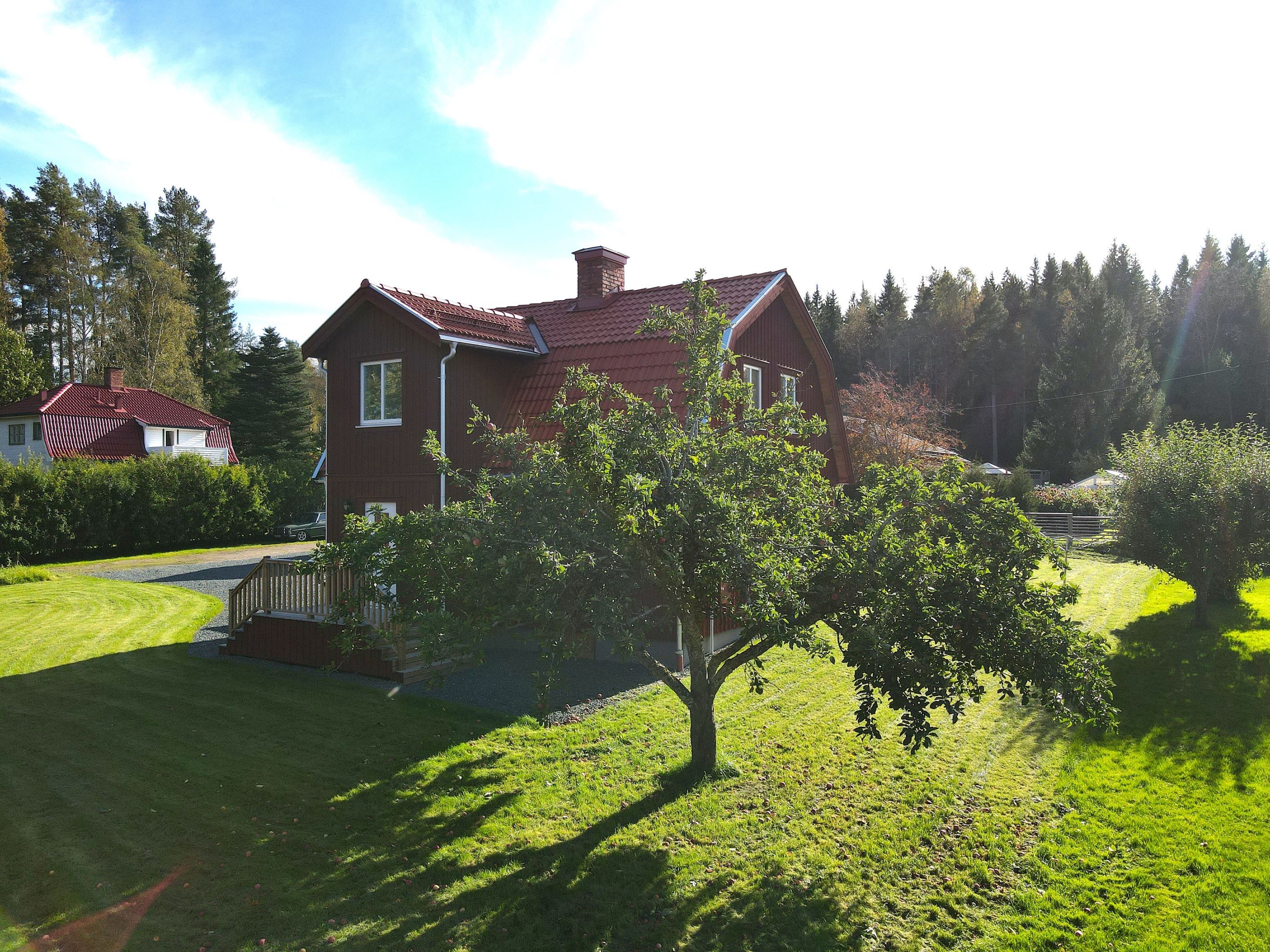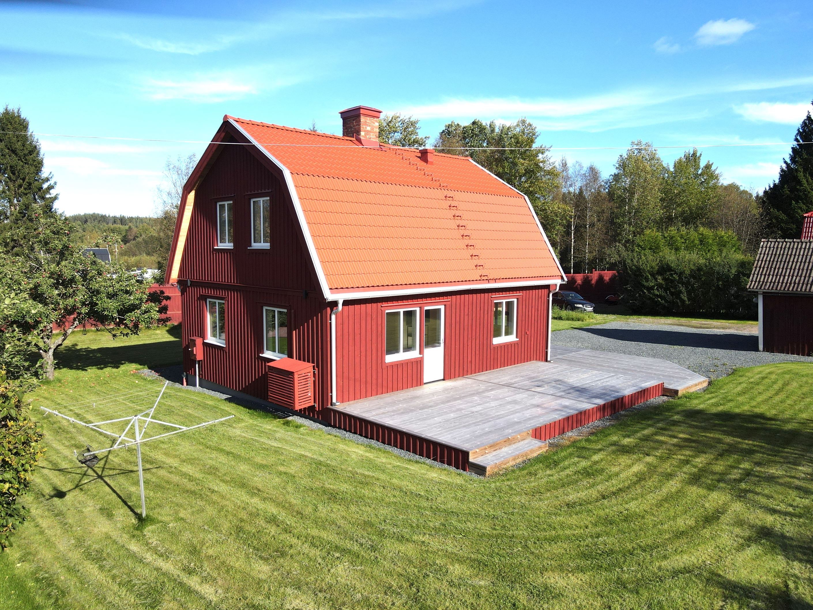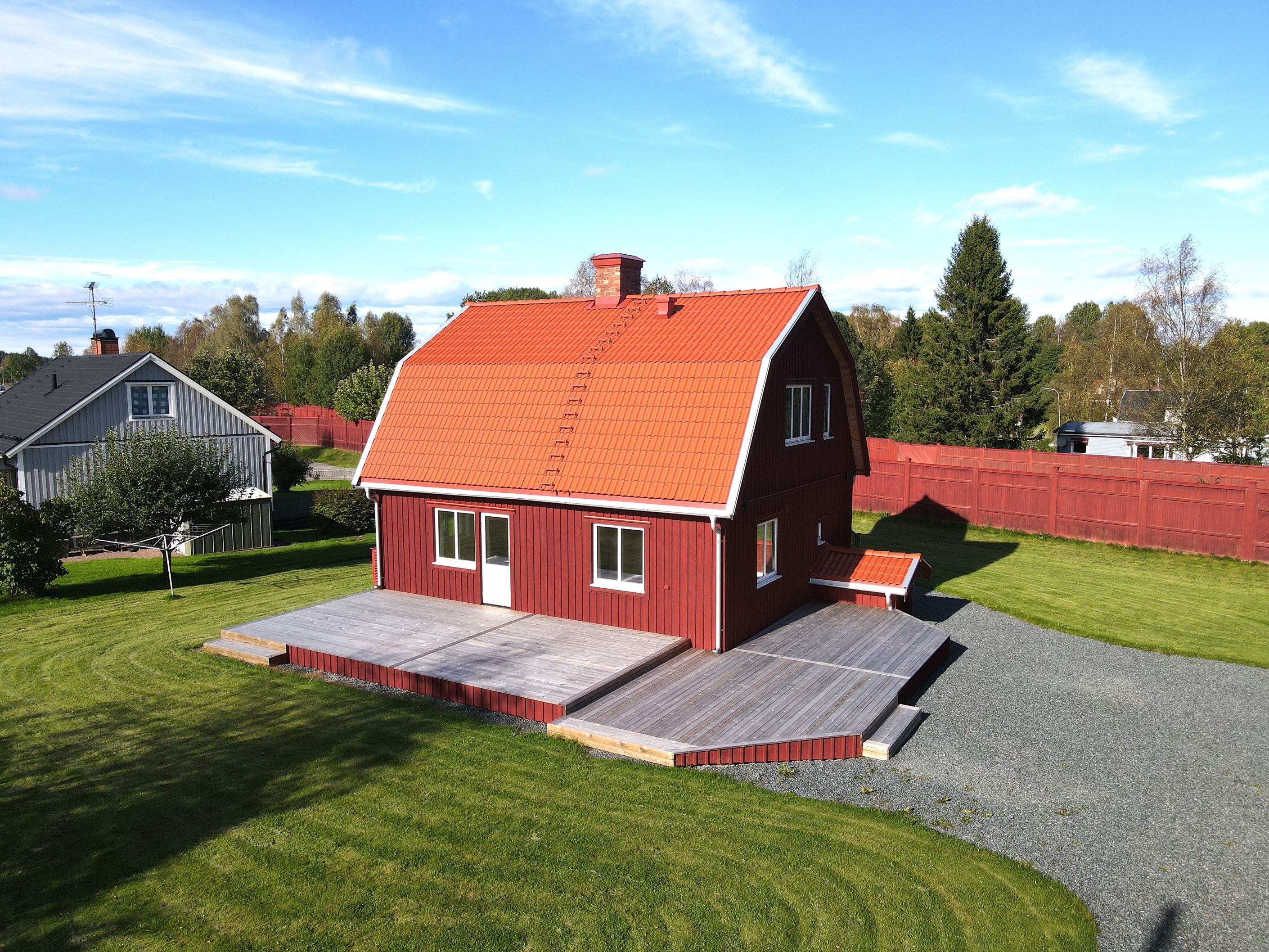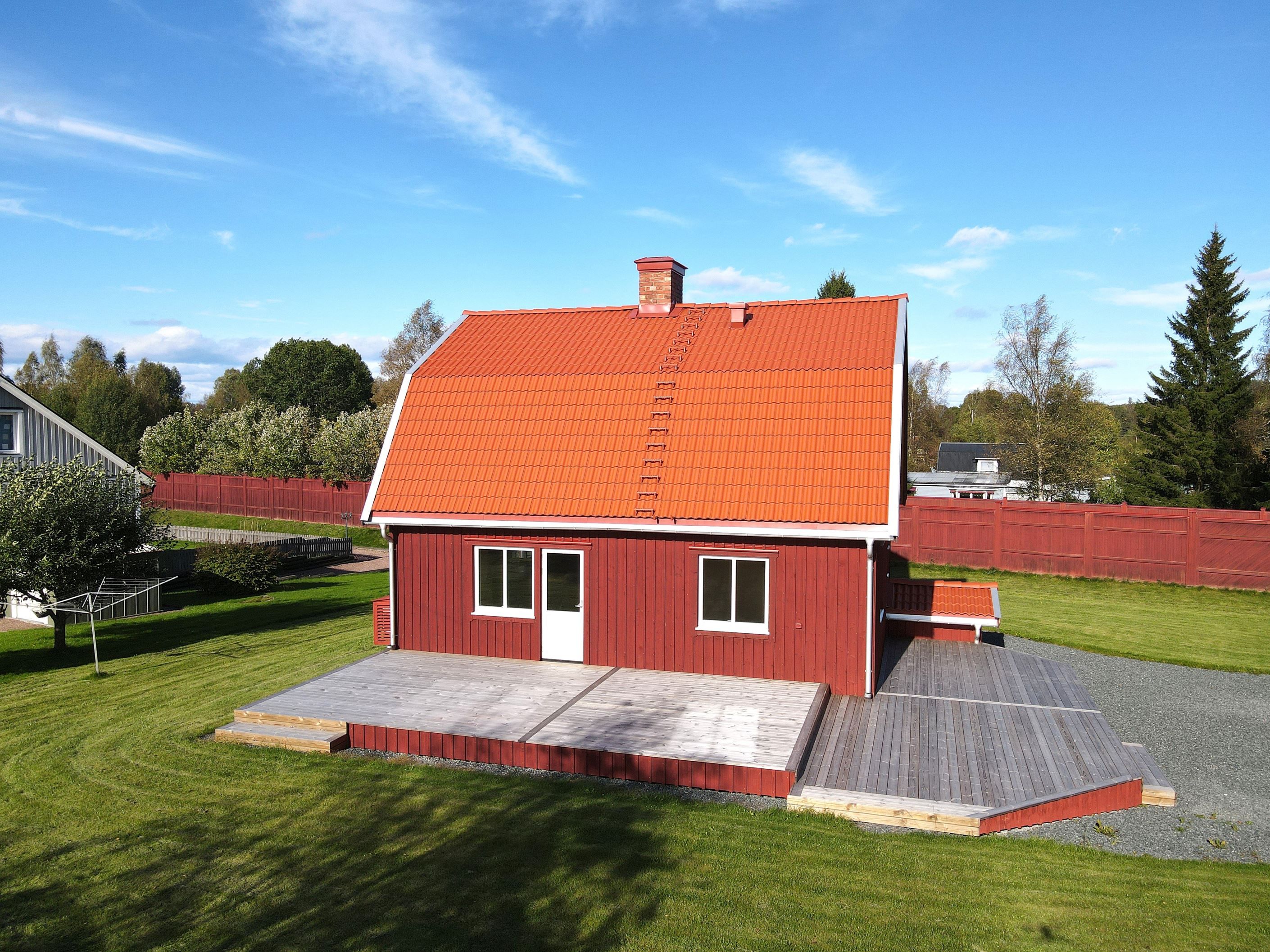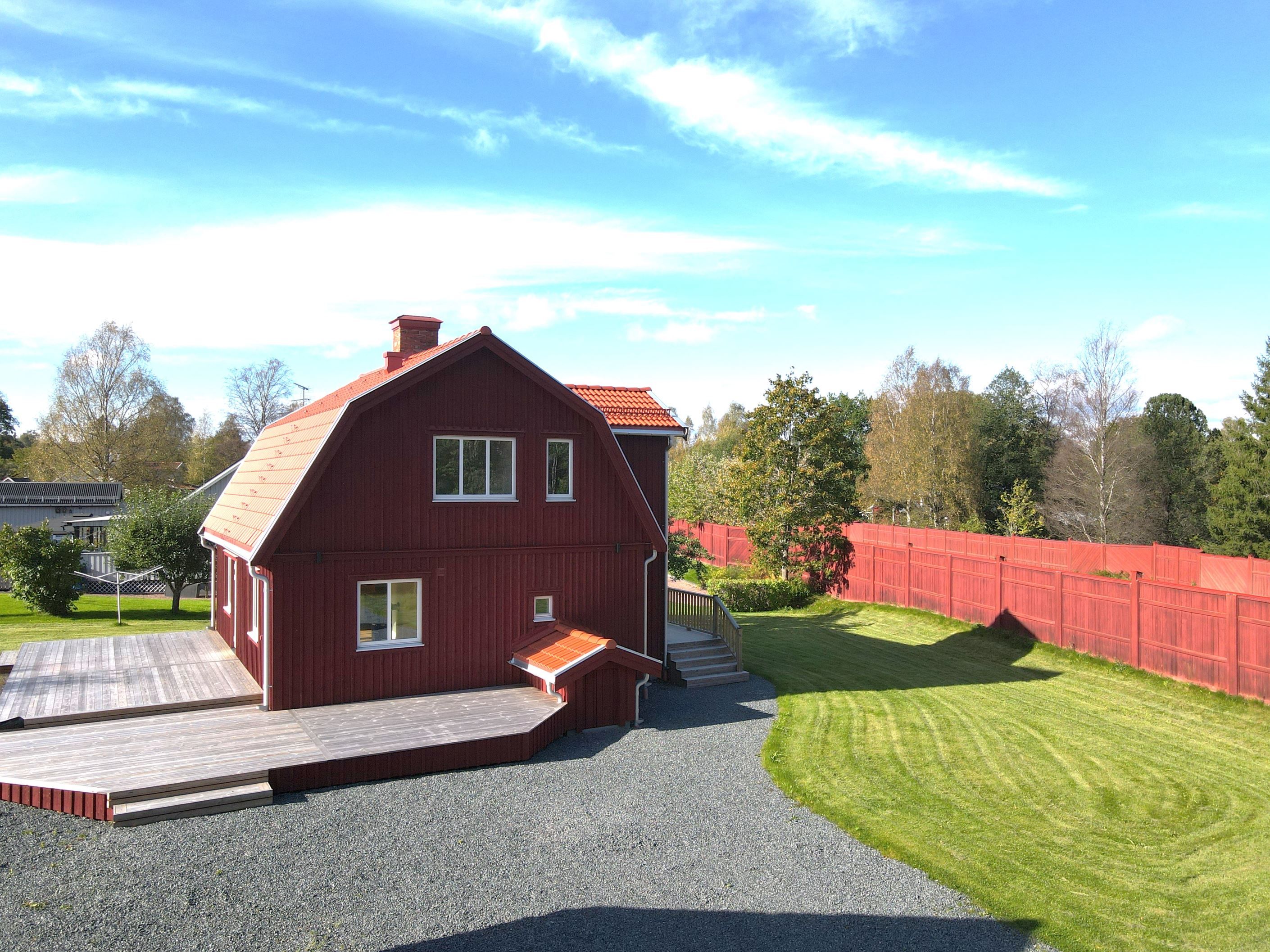 På en insynsskyddad tomt med gångavstånd till centrum ligger detta mycket välrenoverade Faluröda hus med brutet tak.