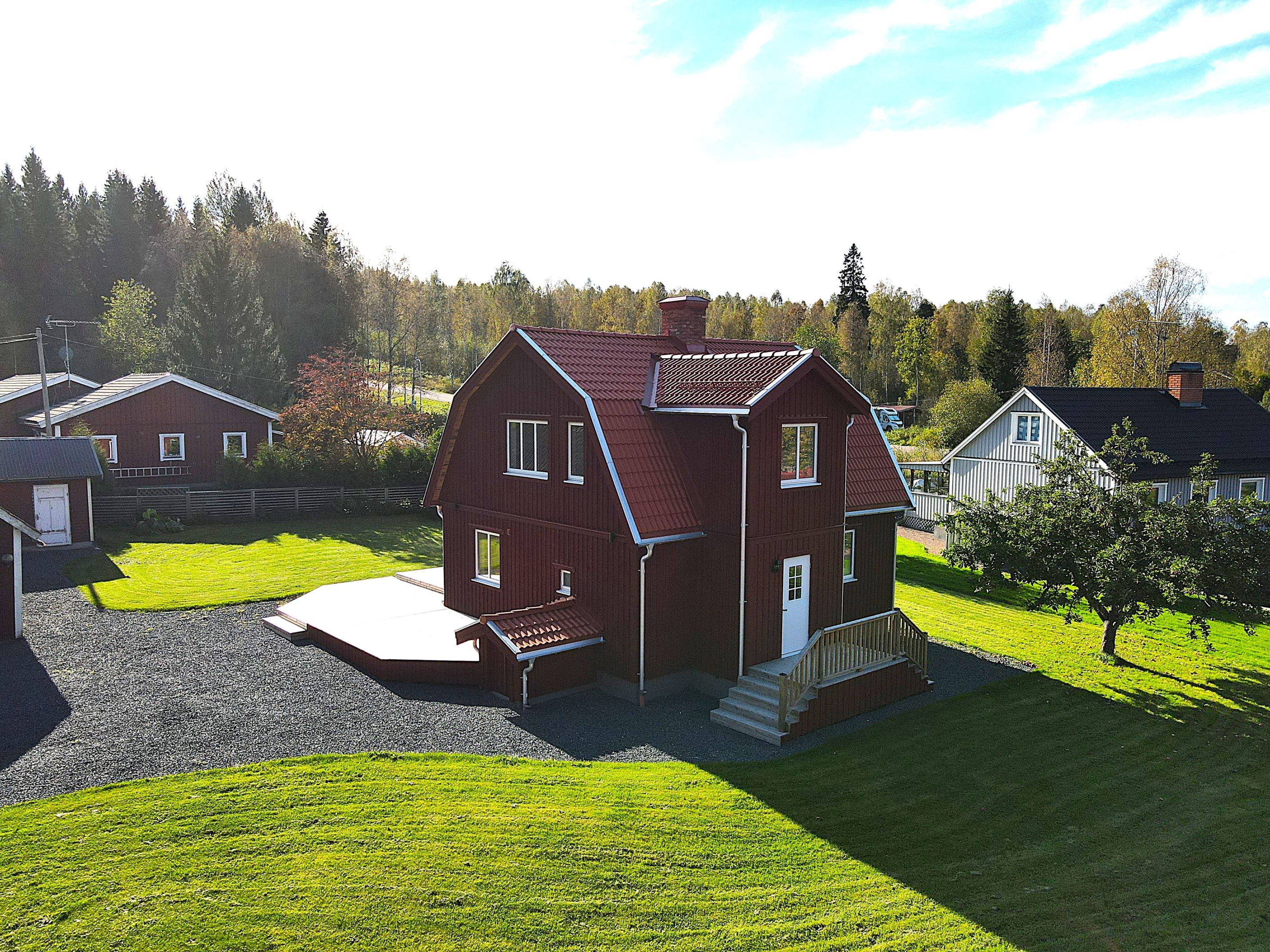 Redan i hallen möts man av en omedelbar känsla av ett lugn och välbehag. Här är allt nyrenoverat och inget har lämnats åt slumpen. Allt i från fasad, tak, fönster, altan, badrum, kök och samtliga ytskikt. På hela entréplan löper ett enhetligt trägolv och väggarna är ljusa. Köket utgör en behaglig kontrast i sin lugna duvblå färg och det är öppet mot vardagsrummet där även en braskamin sprider sin värme. På övre plan ligger husets tre sovrum och en wc. Från vardagsrummet når man den stora altanen och trädgården som är nyanlagd. Välkommen att flytta in i ett hus där du inte behöver renovera. Välkommen att uppleva detta hemtrevliga hus på plats!