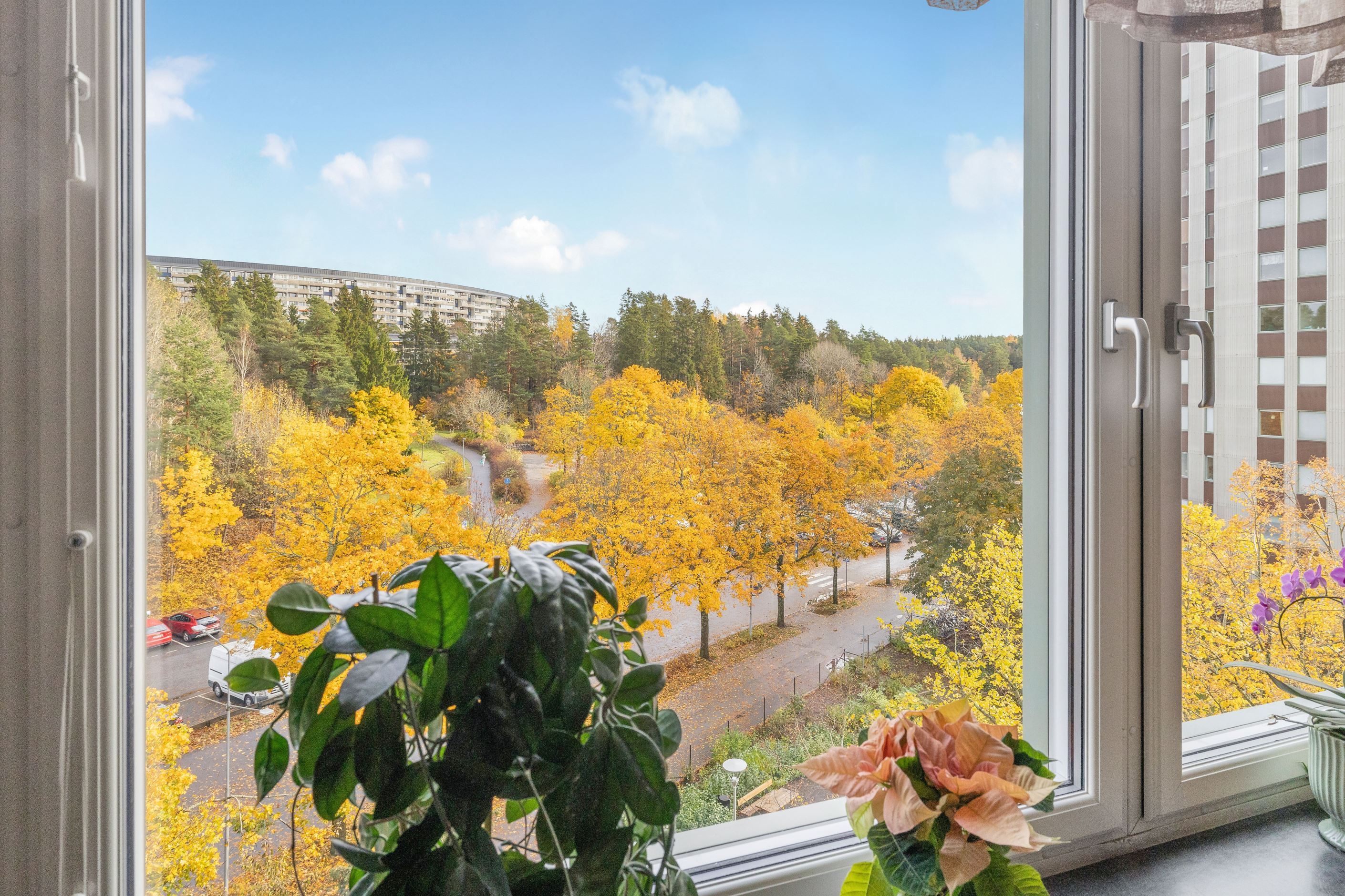 Upptäck denna ljusa och luftiga trerummare belägen på femte våningen, som erbjuder en fantastisk utsikt över en grönskande innergård åt ena hållet och över ett skogsparti åt andra. Minimalt med insyn!