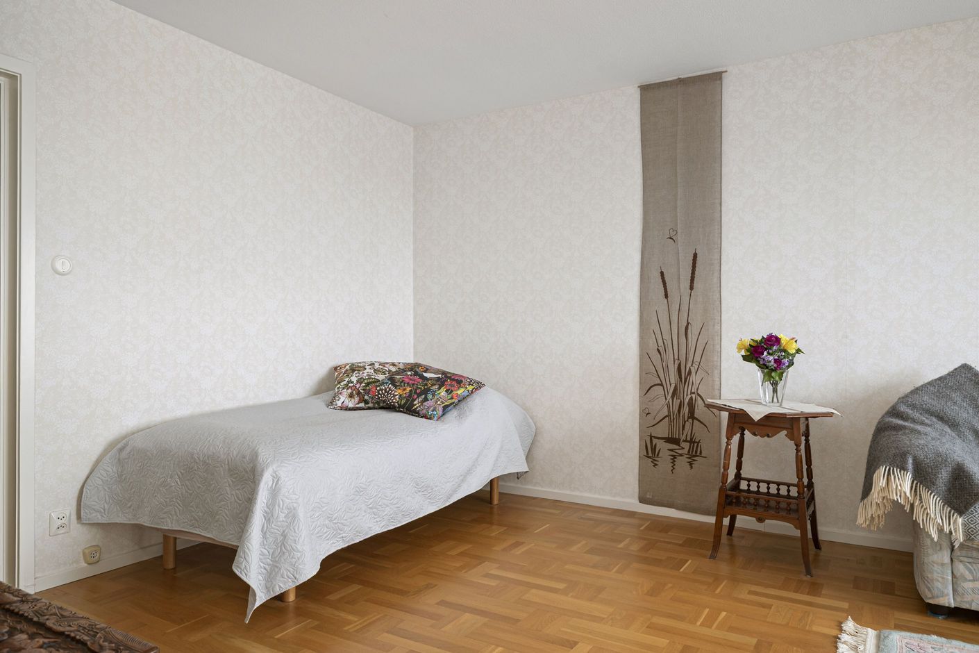 Den stora klädkammaren är en riktig bonus – perfekt för dig som uppskattar ordning och reda, eller varför inte nyttja ytan som en praktisk och avskild hemmakontorshörna?
