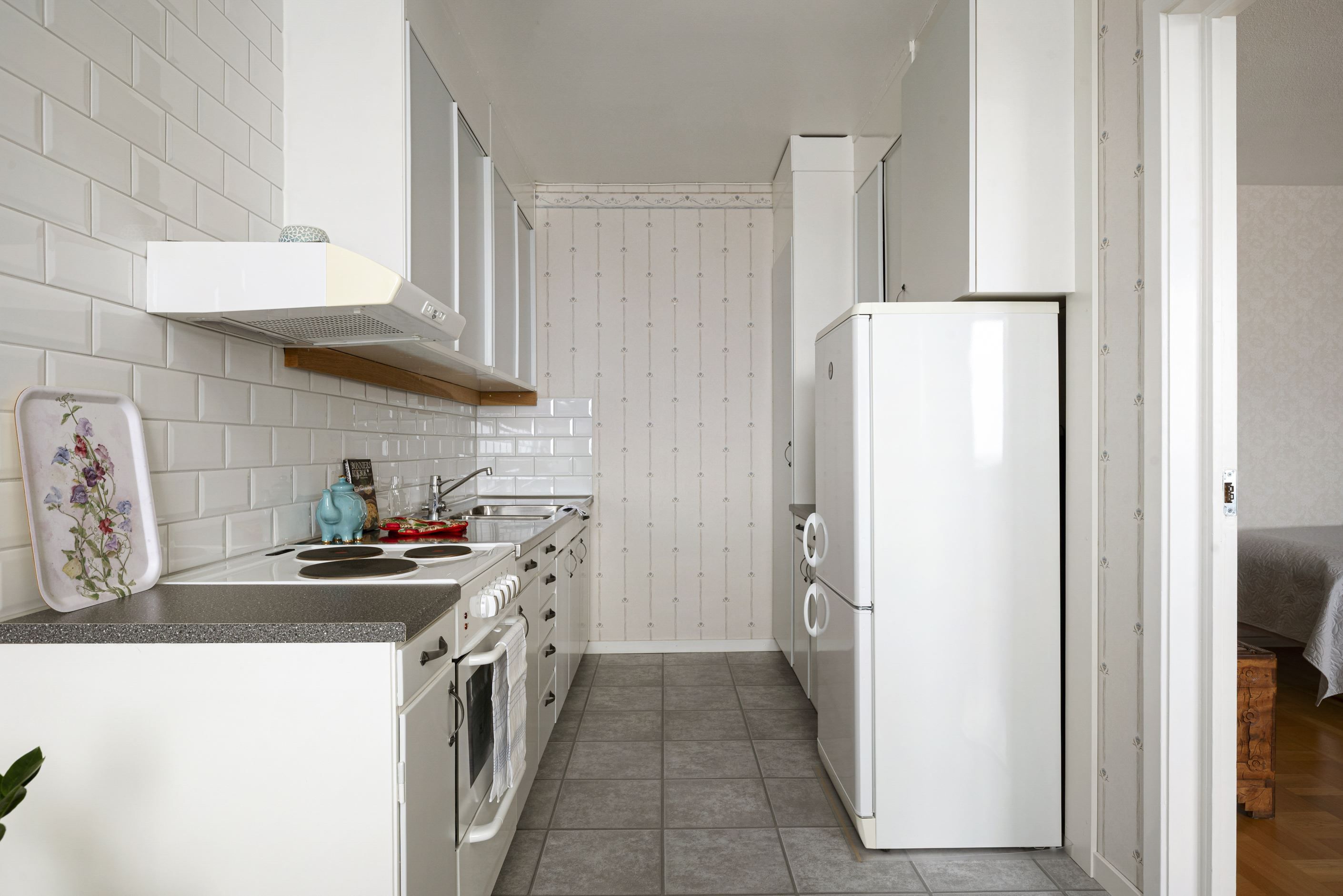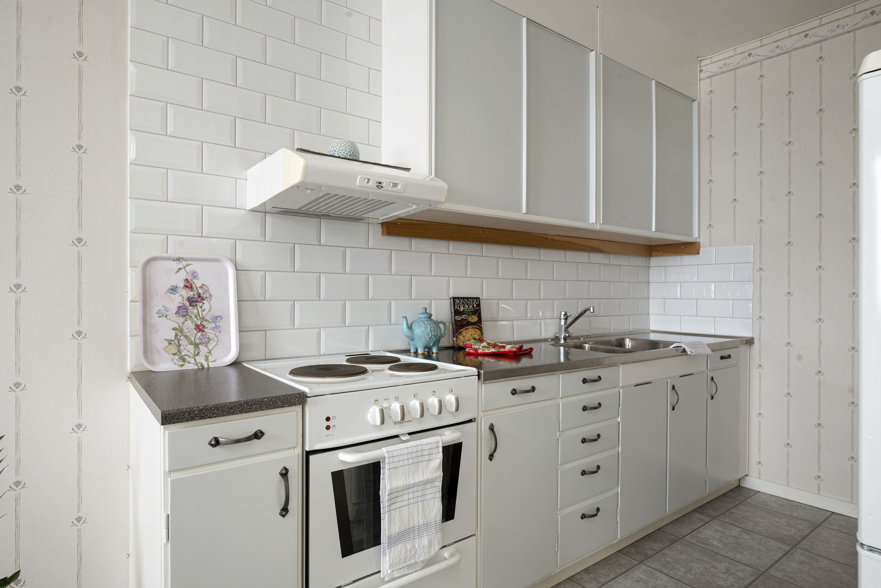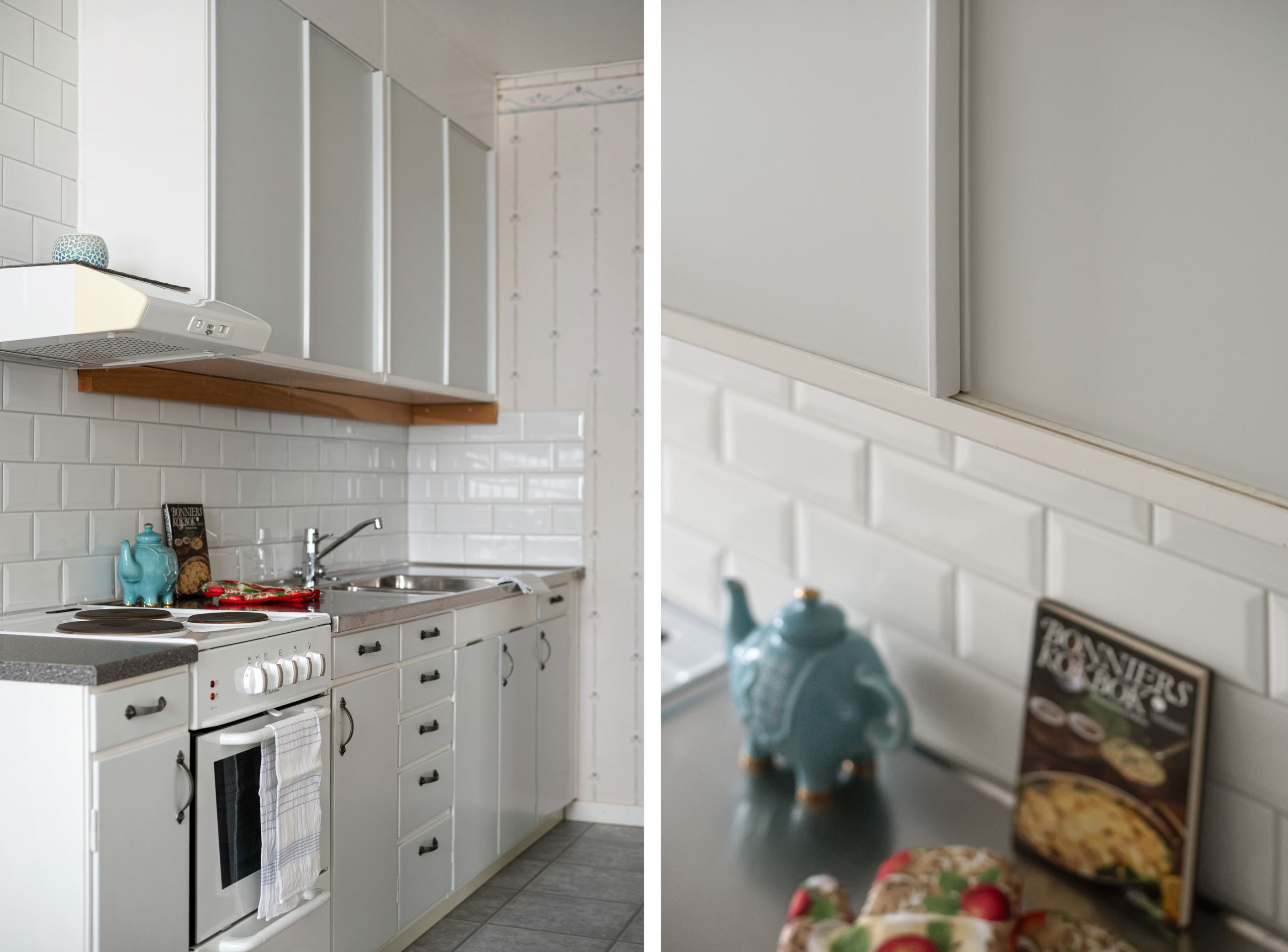 Det generösa köket bjuder på gott om arbetsytor och förvaring, vilket gör matlagningen till ett nöje. Här finns plats för ett rejält matbord där du kan samla vänner för middagar eller njuta av en lugn frukost i morgonsolen.