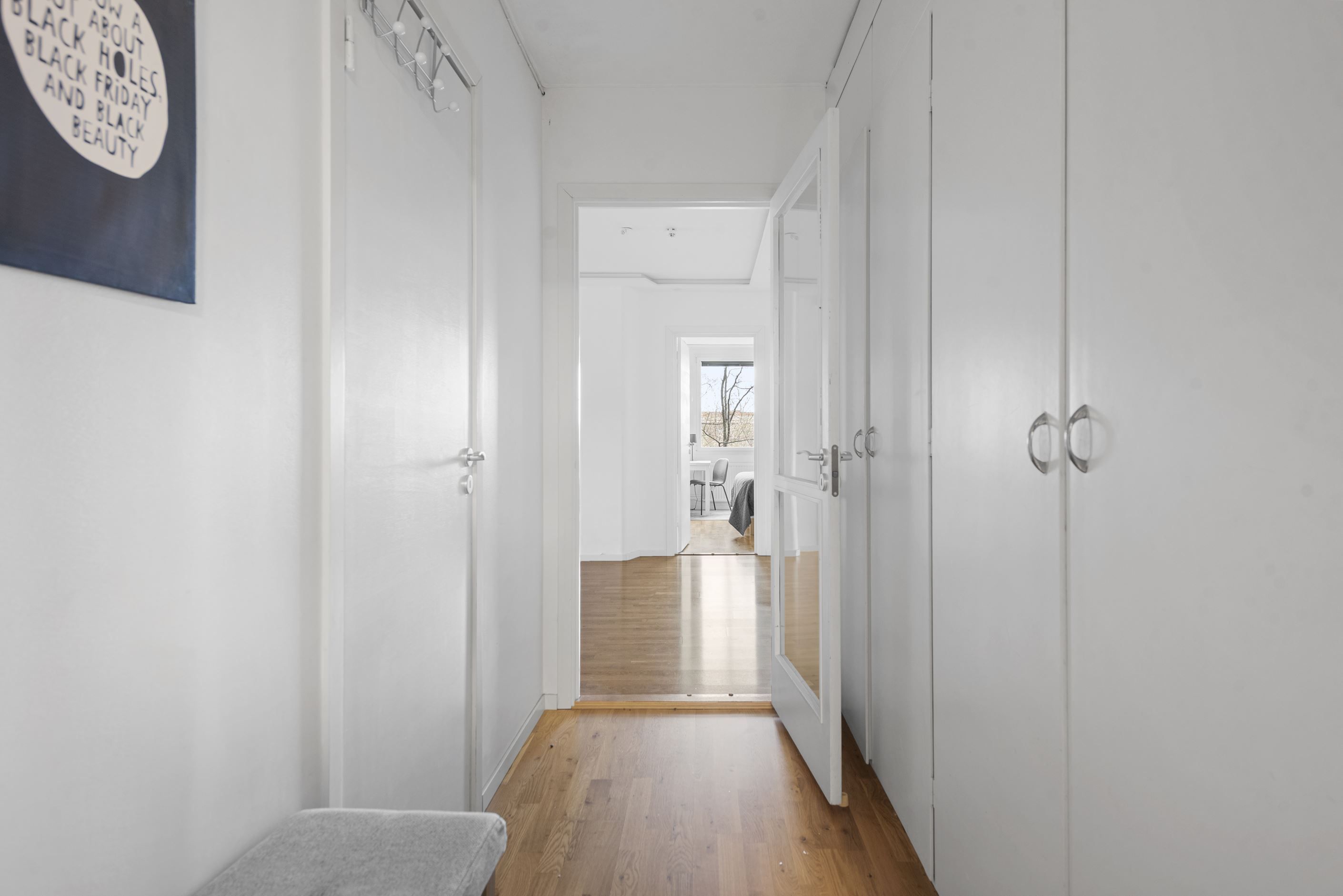 Invändigt möts du av stilrena materialval med genomgående vita väggar och fina parkettgolv som direkt skapar en modern och välkomnande känsla. Redan i hallen finns gott om förvaring, inklusive ett stort förråd/klädkammare som rymmer det mesta.