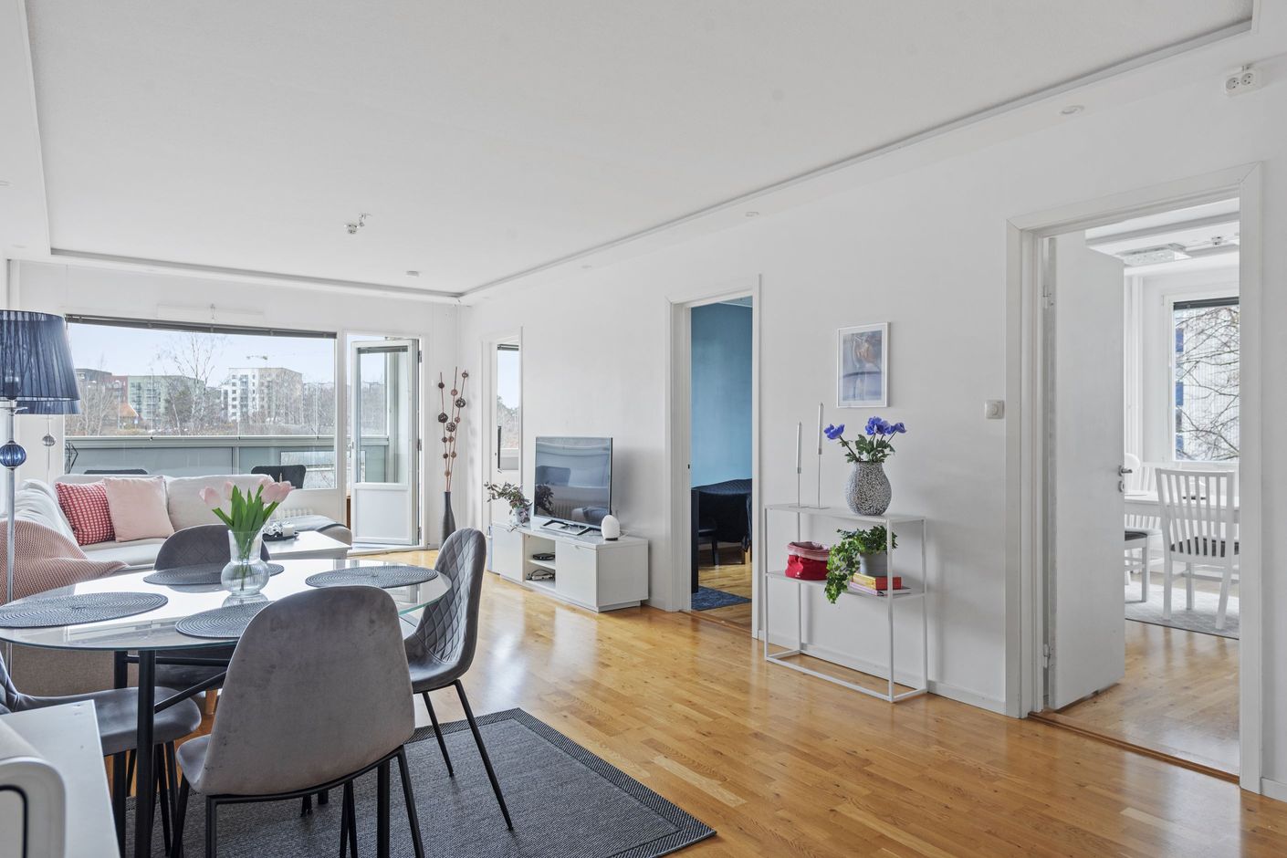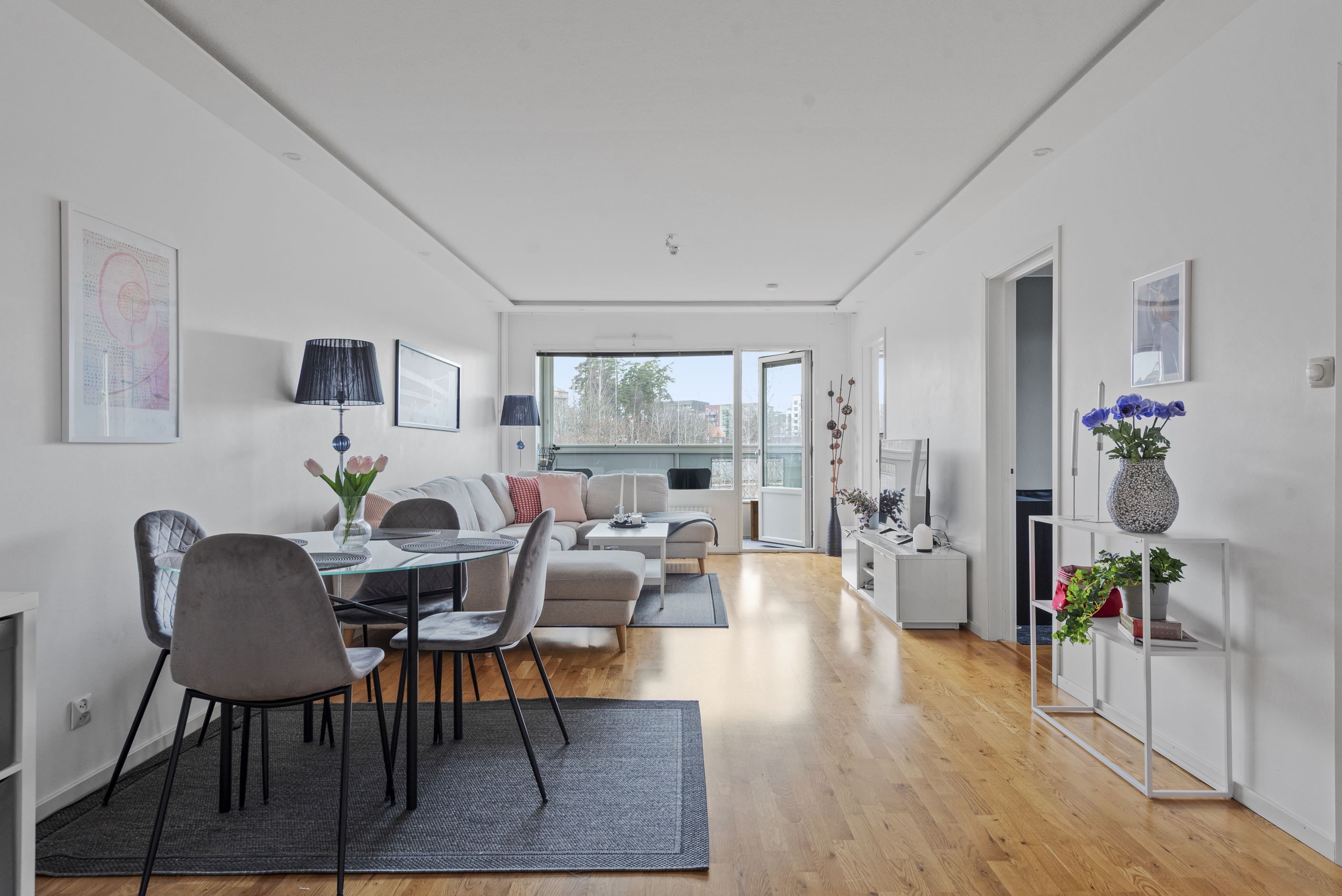 Varmt välkommen till denna ljusa, rymliga och mycket välskötta fyrarummare – ett hem där varje kvadratmeter är genomtänkt och där modern komfort möter en härligt social planlösning. Här bor du på ett optimalt läge med en inglasad balkong i bästa söderläge. Dessutom är el dragen till balkongen 2025 – perfekt för både belysning och värmare.
