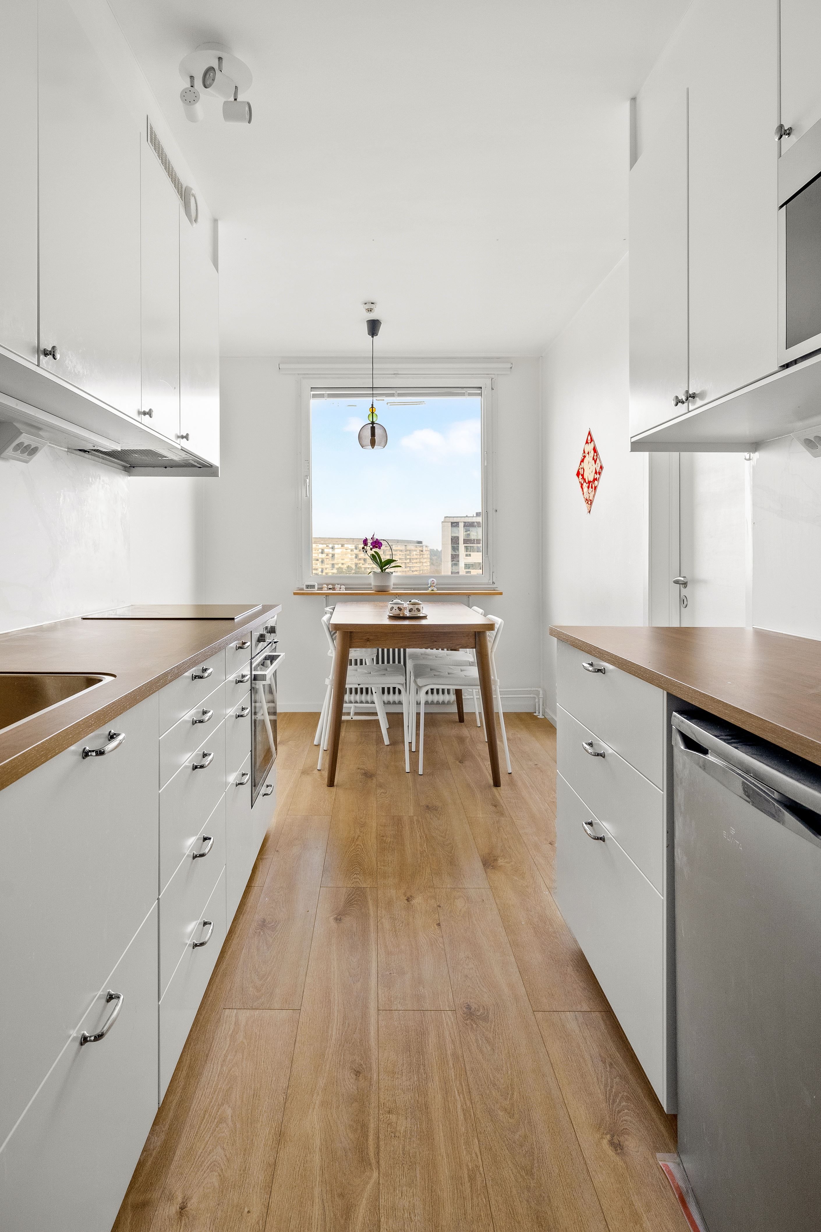 Välkommen till denna trevliga 2:a med perfekt planlösning och inglasad balkong på 15:e våningen