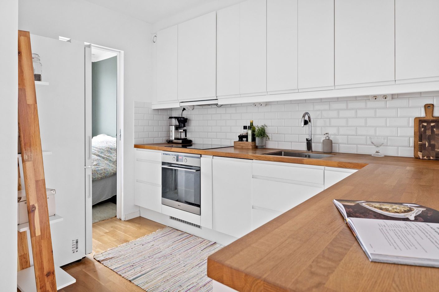 Otroligt ljus och fin mini-tvåa på 15:e våningen i populära Näsbydal. Från både sovrum och vardagsrum har du en slående utsikt mot Kaknästornet. Snyggt, arbetsvänligt kök. Separat sovalkov med plats för dubbelsäng.
