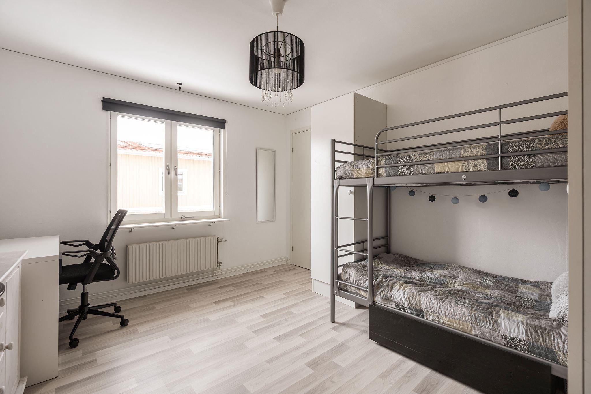 Sovrummet är utrustat med en praktisk klädkammare som gör förvaringen enkel.