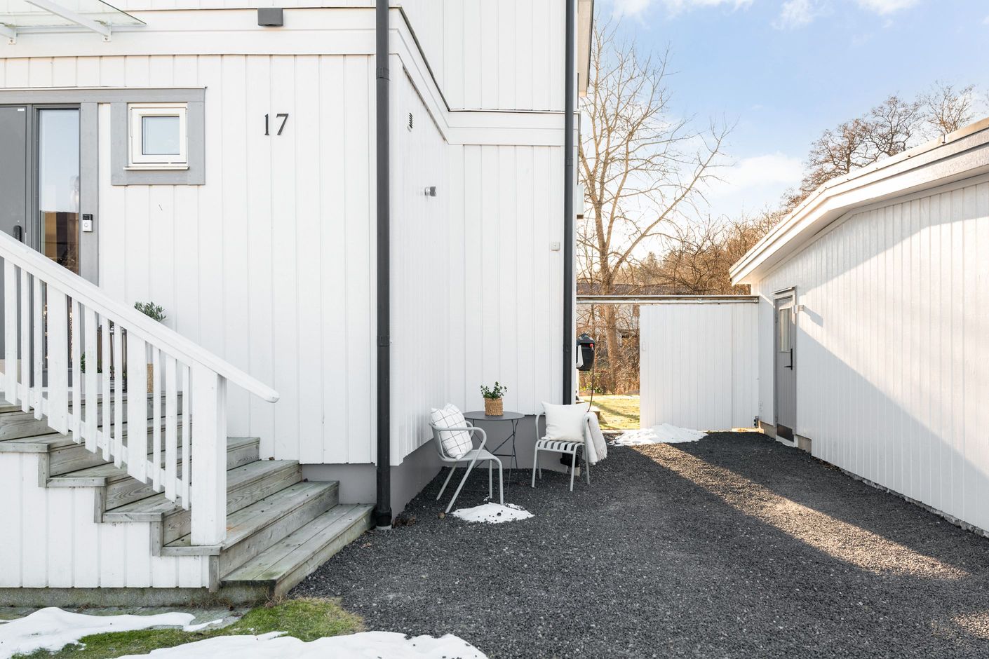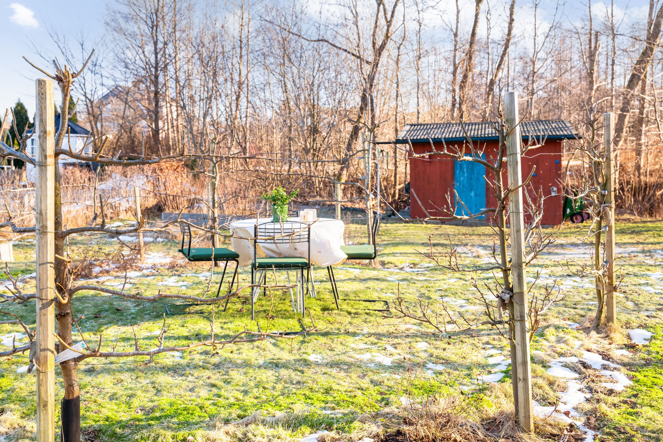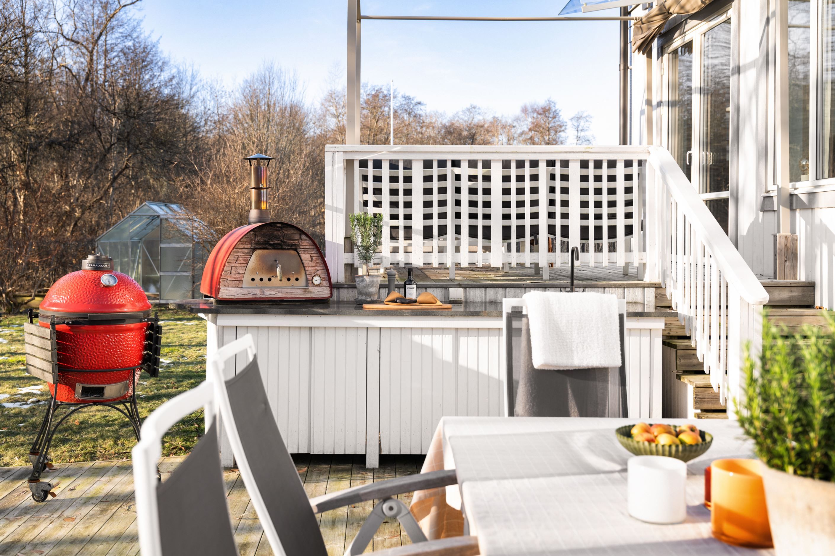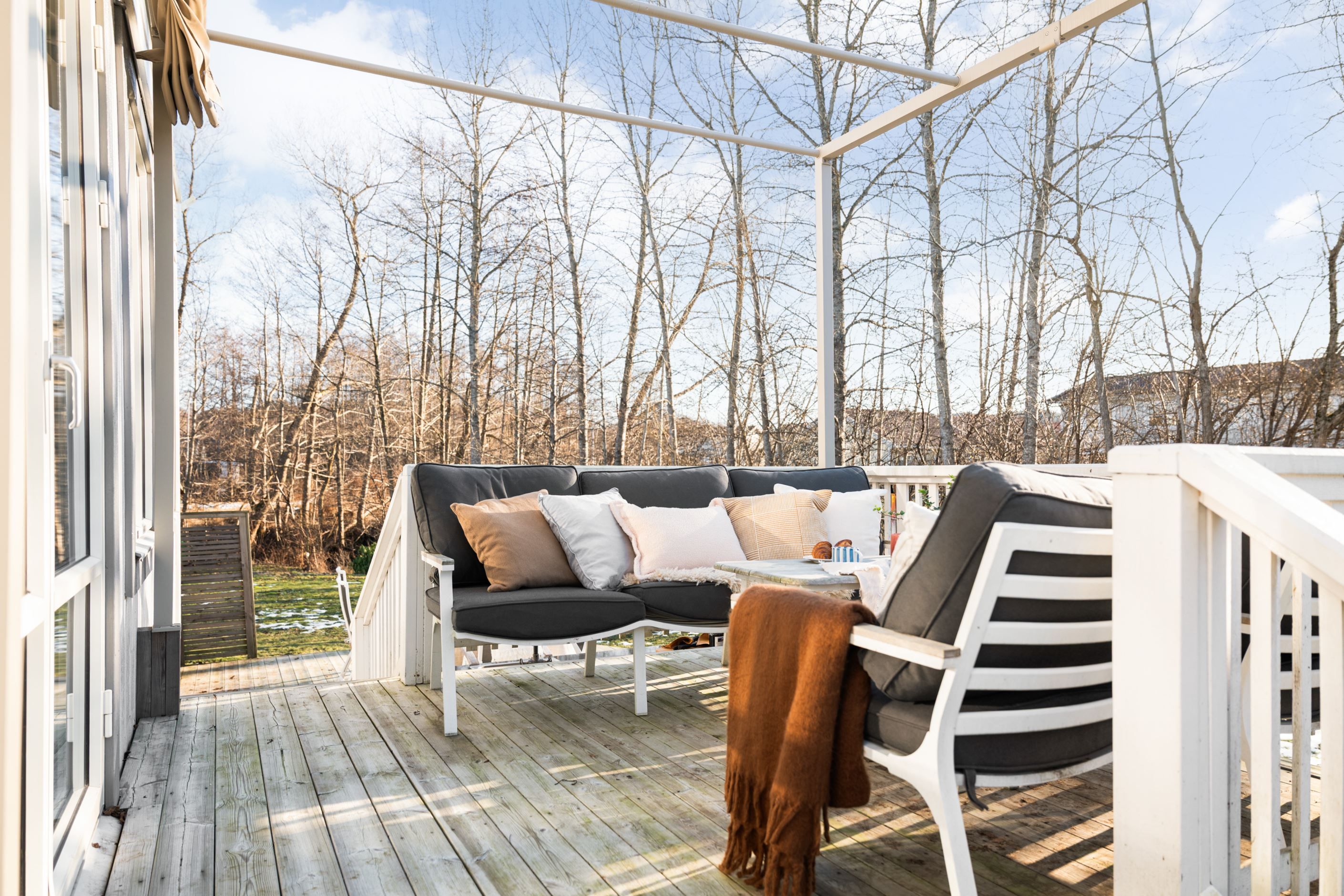 Den stora altanen ligger i ett perfekt solläge, redo för sommarens grillkvällar och lata dagar i solen. På fastigheten finns även ett praktiskt garage och en friggebod för extra förvaring.