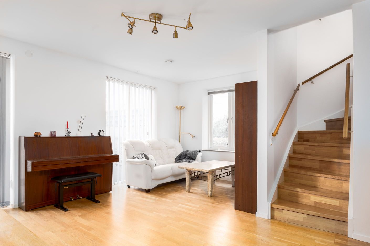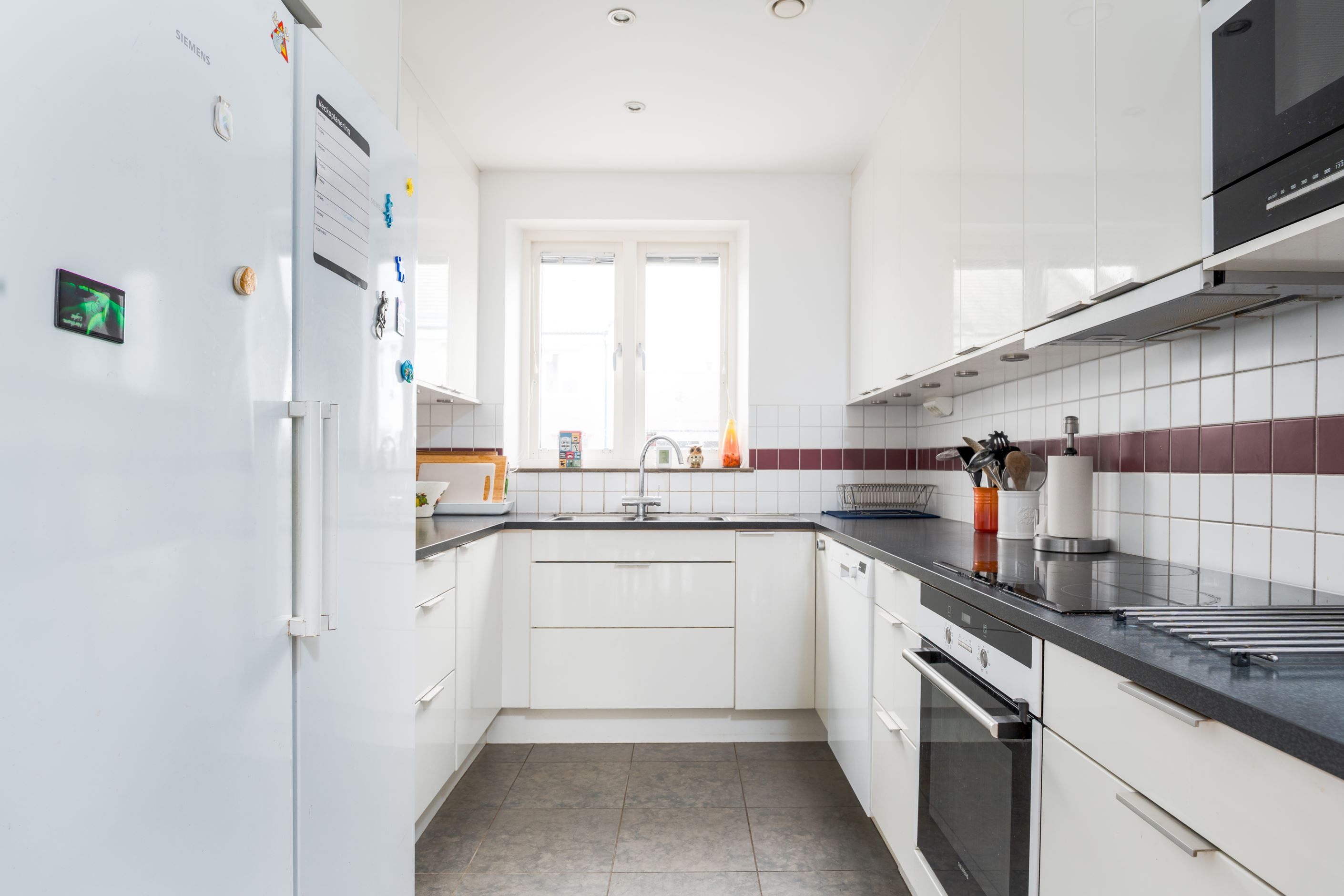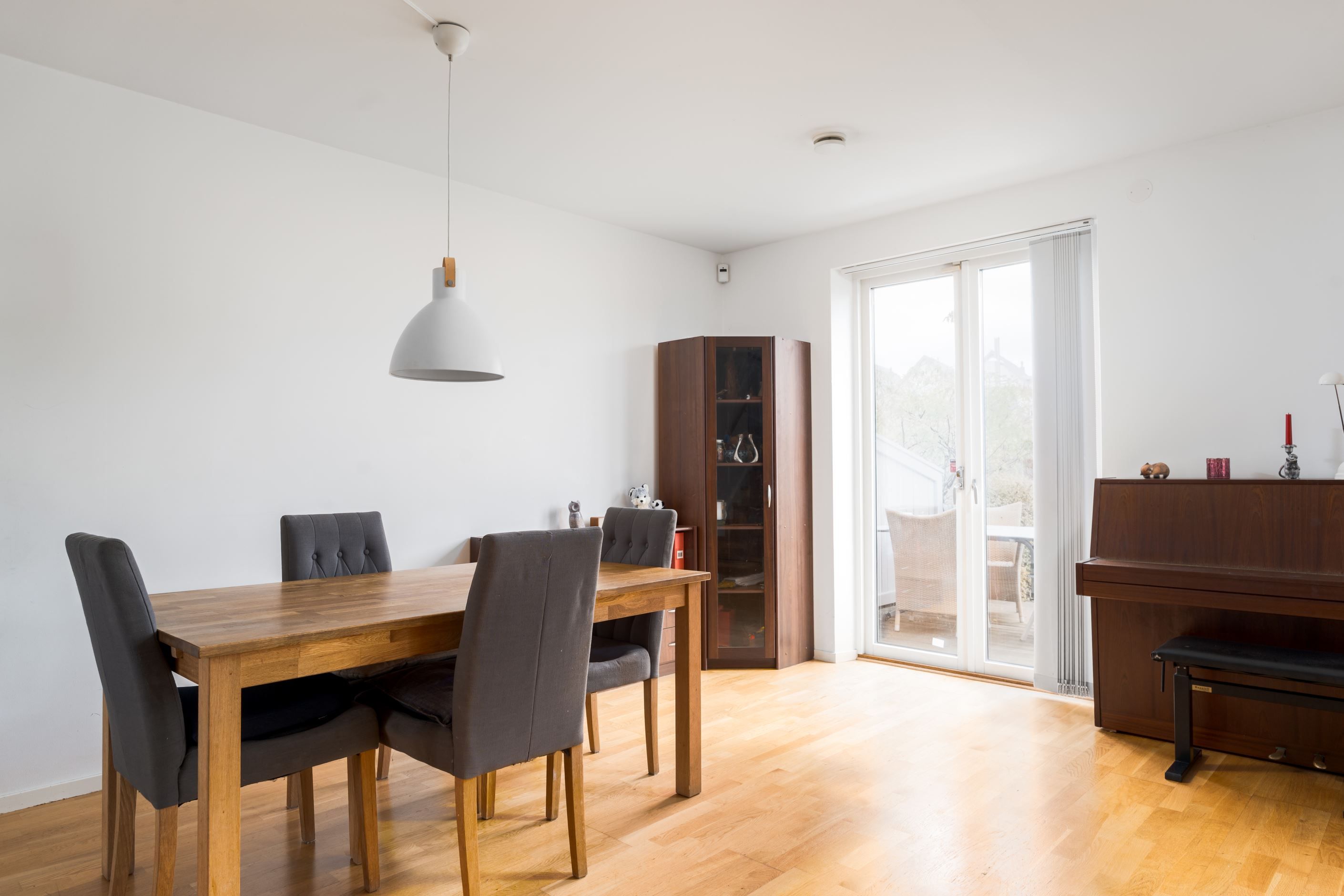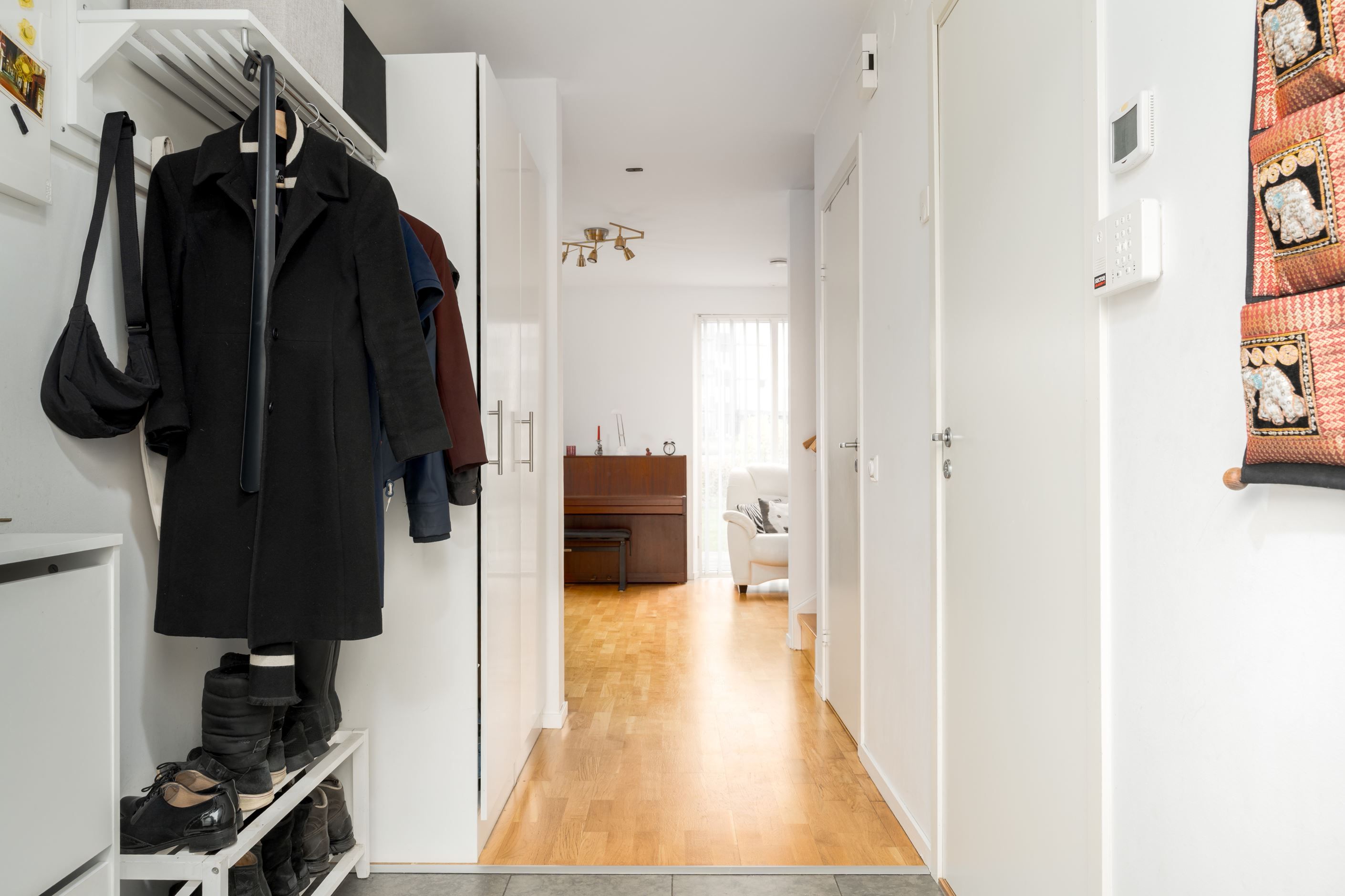 Bostaden är genomtänkt planerad för familjeliv med plats för både lek och umgänge. Det ljusa vardagsrummet har utgång till en solig altan i söderläge, perfekt för middagar och avkoppling. Köket är fullt utrustat med gott om förvaring och en trevlig matplats, och den öppna planlösningen mot vardagsrummet skapar en både social och funktionell miljö.