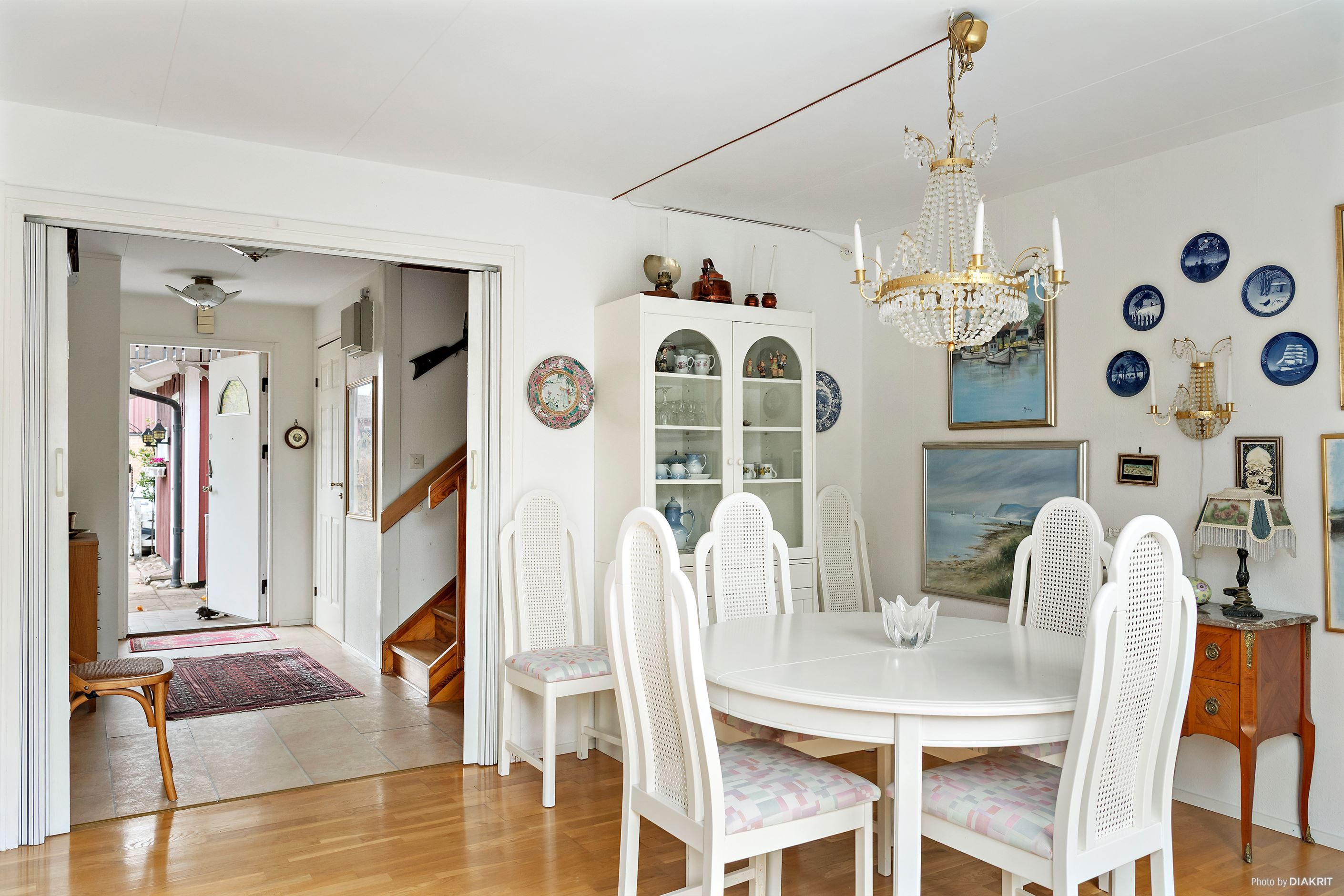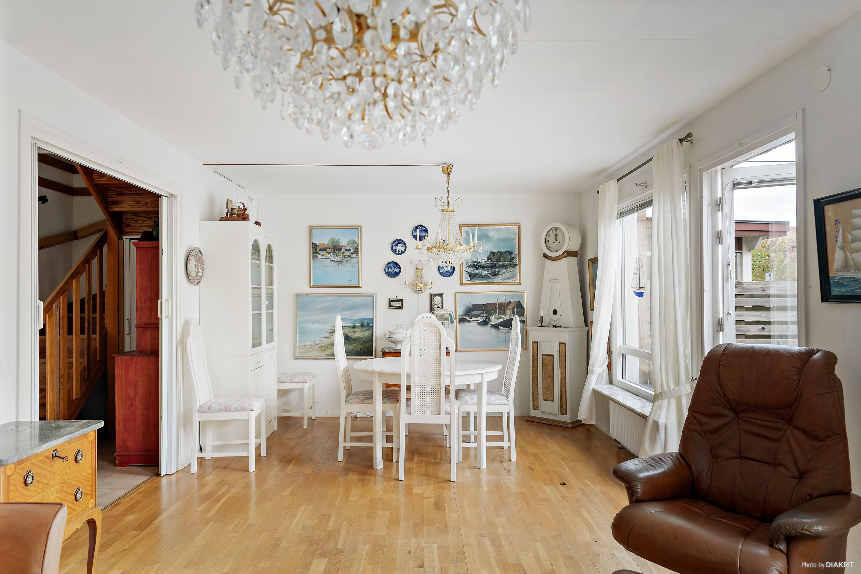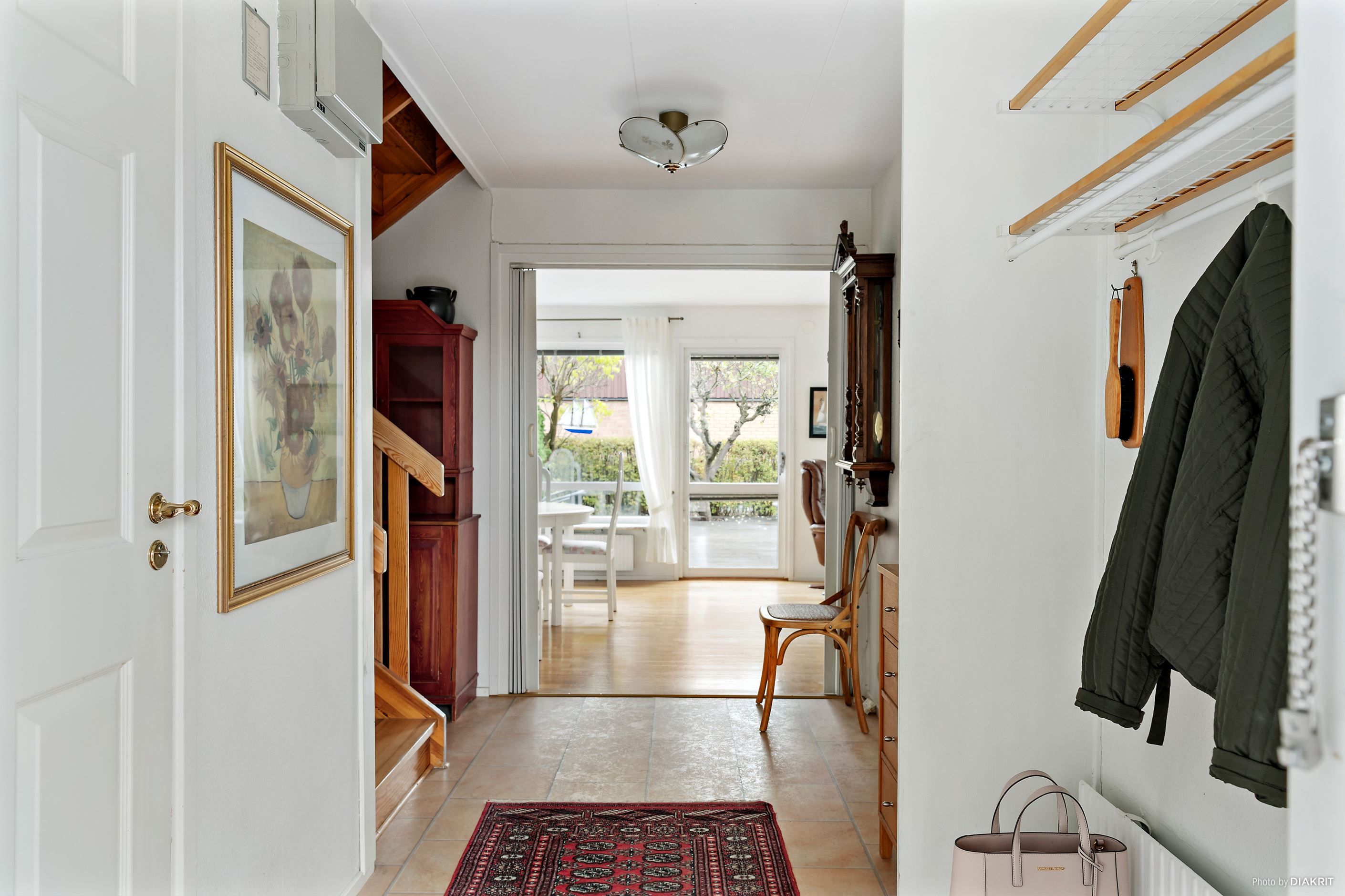 Planlösningen är genomtänkt och trivsam. På entréplan finns kök, vardagsrum med utgång till trädgården samt ett badrum. En trappa upp väntar den mer privata delen med tre sovrum, klädkammare och ytterligare ett badrum – perfekt för familjen eller dig som vill ha gott om utrymme.