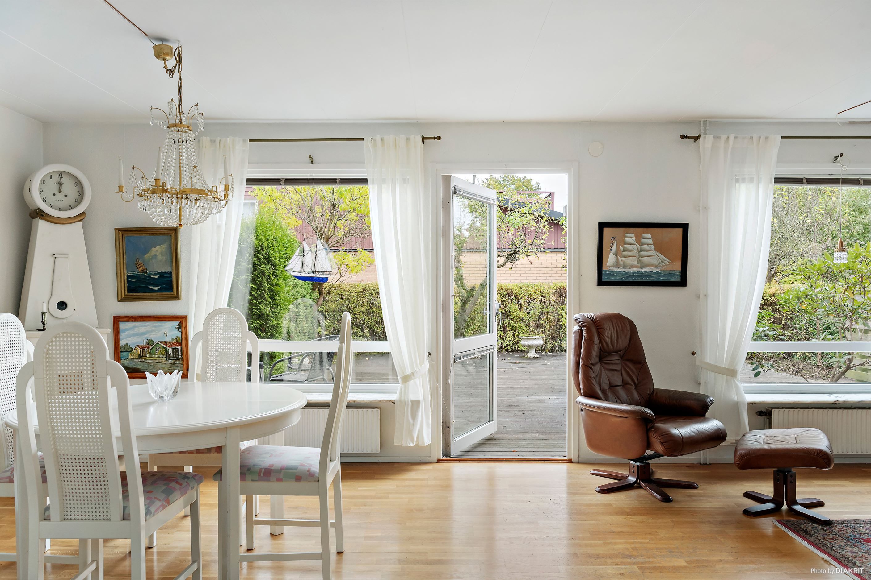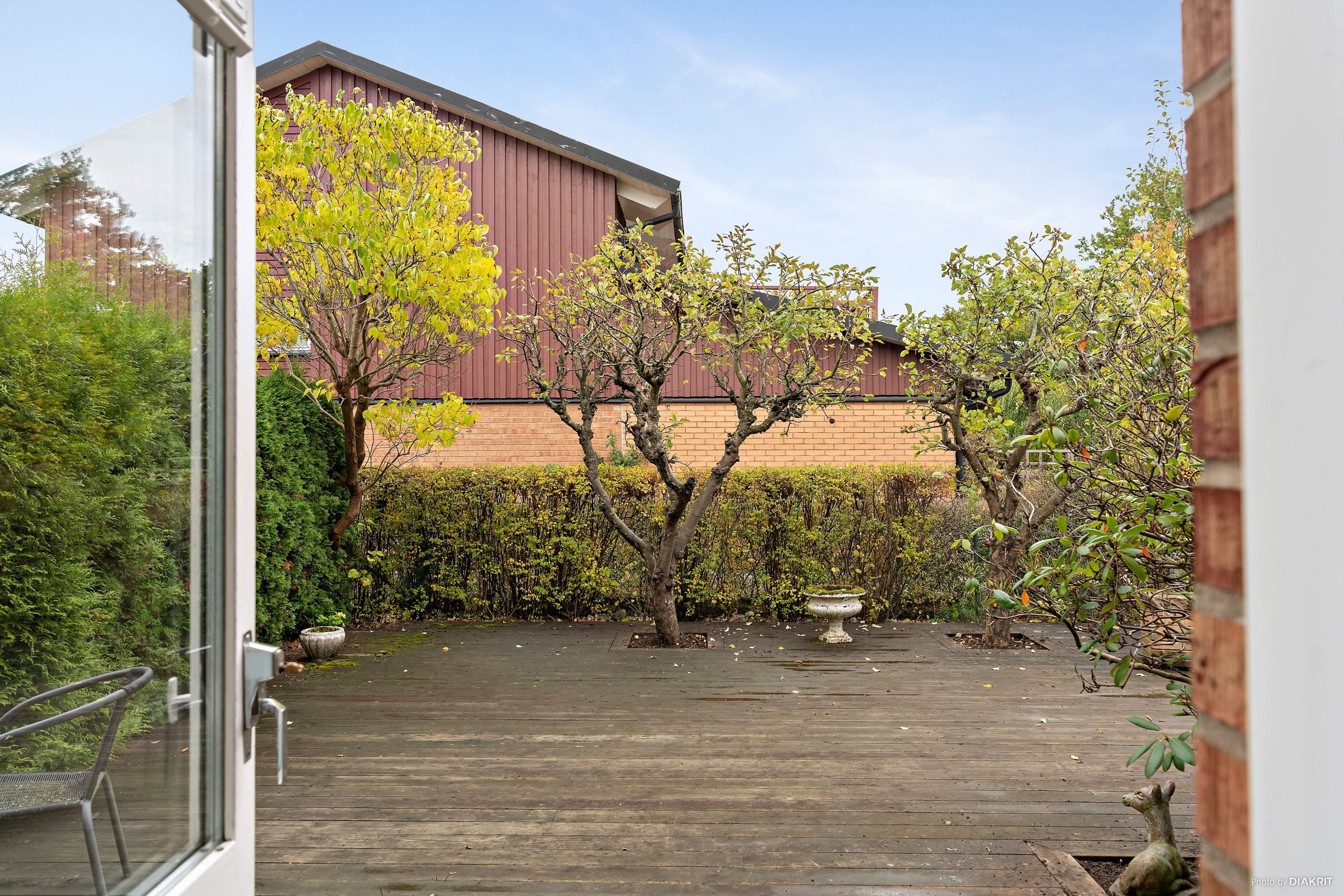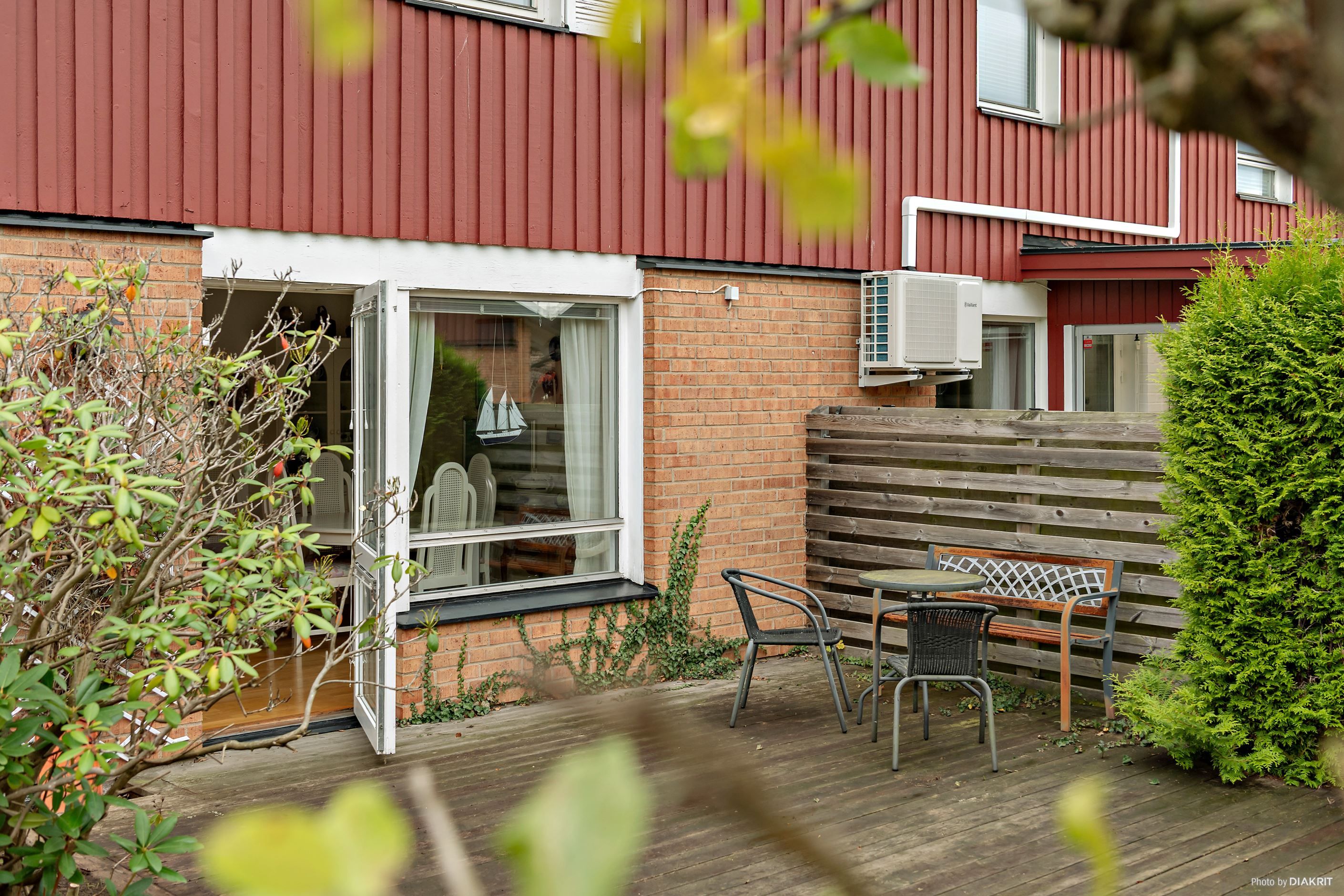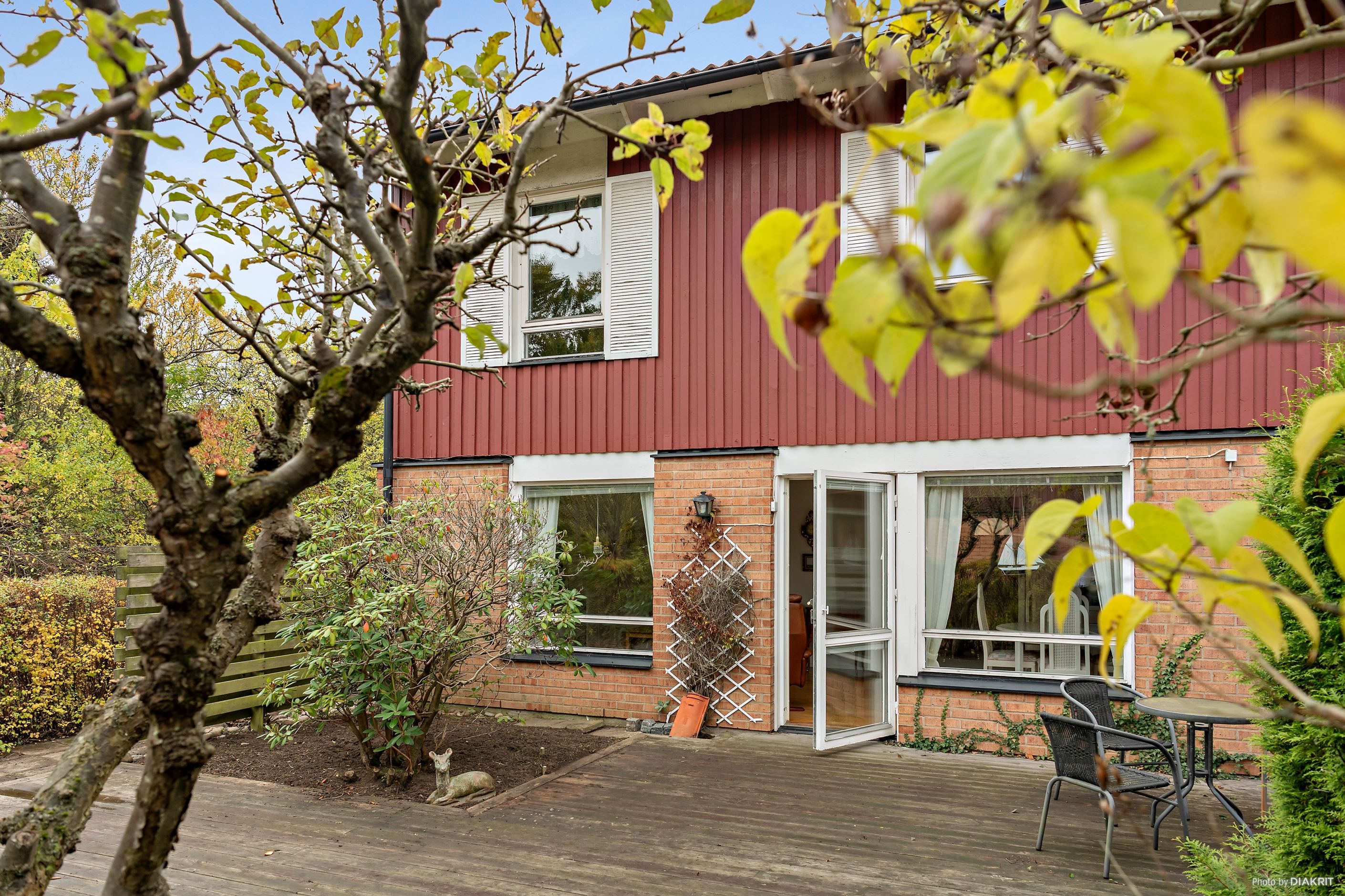 Trädgården bjuder på både altan och grönytor med gott om plats för umgänge, lek och avkoppling. Oavsett tid på dagen finns alltid en plats i solen. Här finns även ett separat förråd med ett mindre uterum som nuvarande ägare använt för förvaring av bland annat cyklar och trädgårdsredskap – en praktisk och flexibel yta som lätt kan anpassas efter behov.