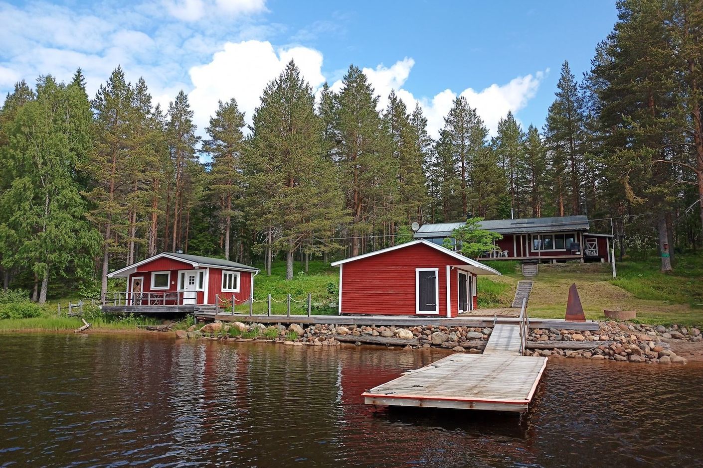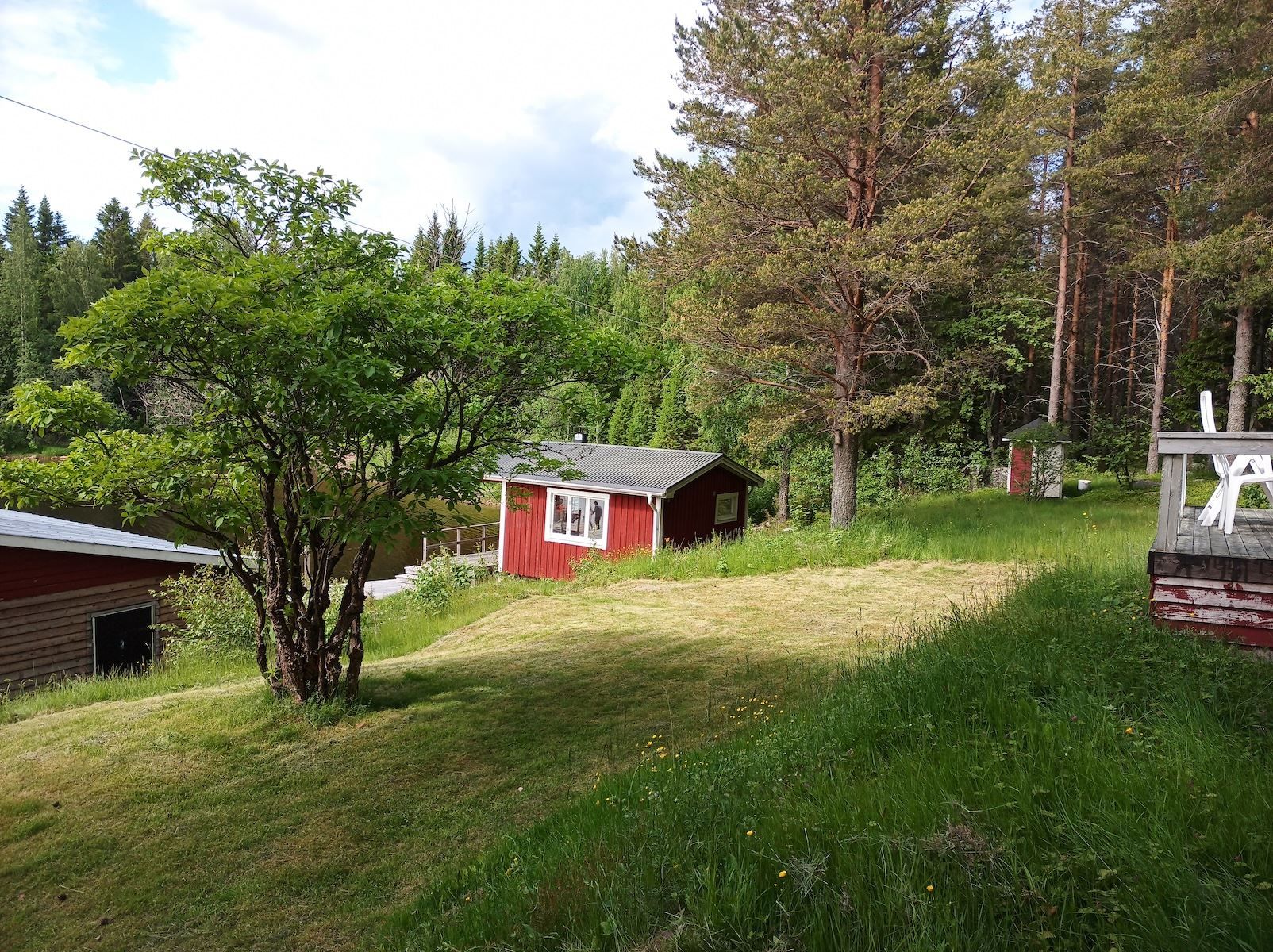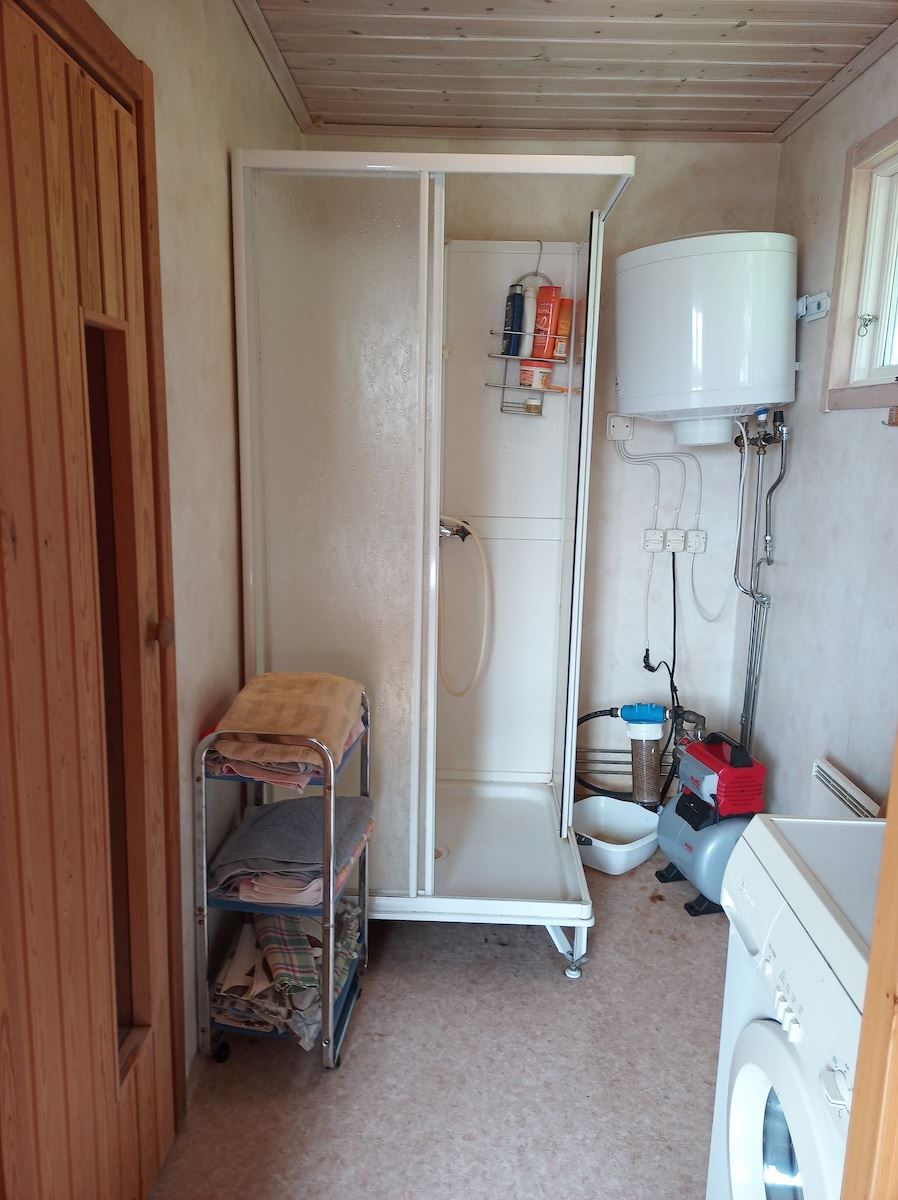 Vid vattnet finns en förrådsbyggnad och en bastubyggnad. Bastubyggnaden har en relax-del, ett duschrum och en vedeldad bastu. Duschrummet har en duschkabin, varmvattenberedare, pump och tvättmaskin.