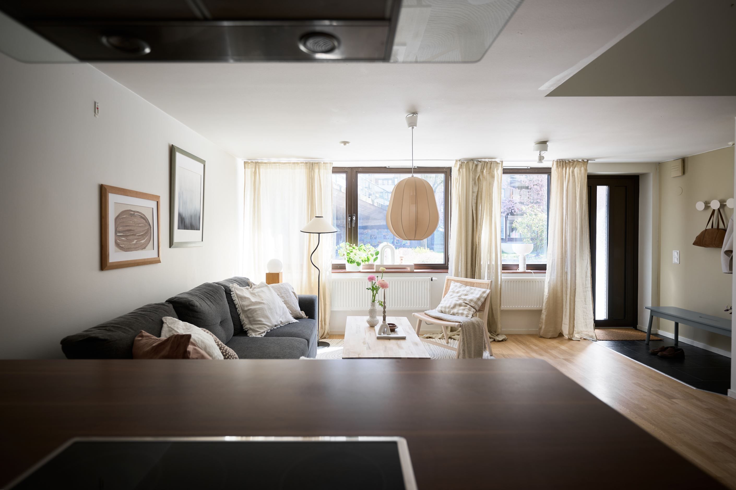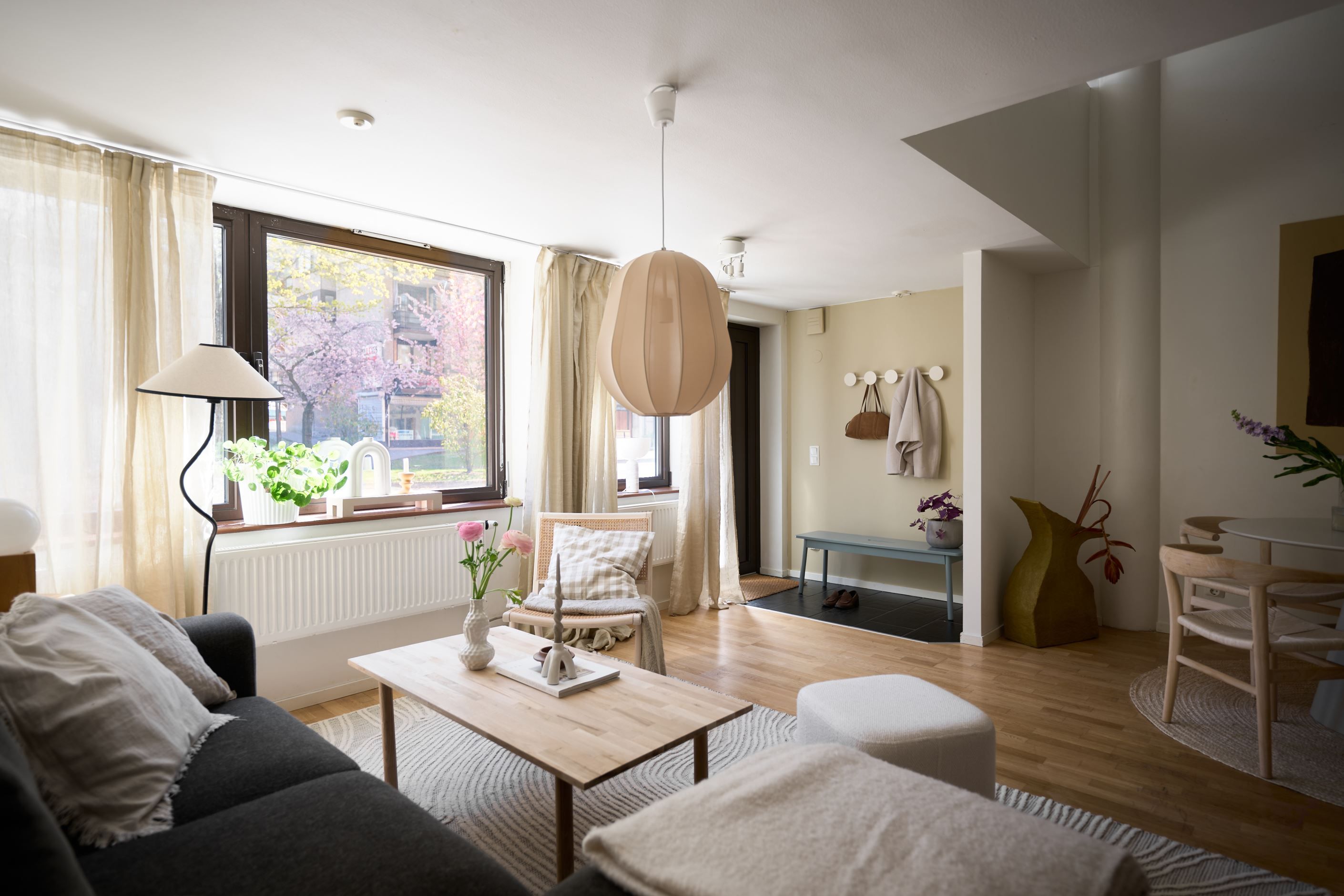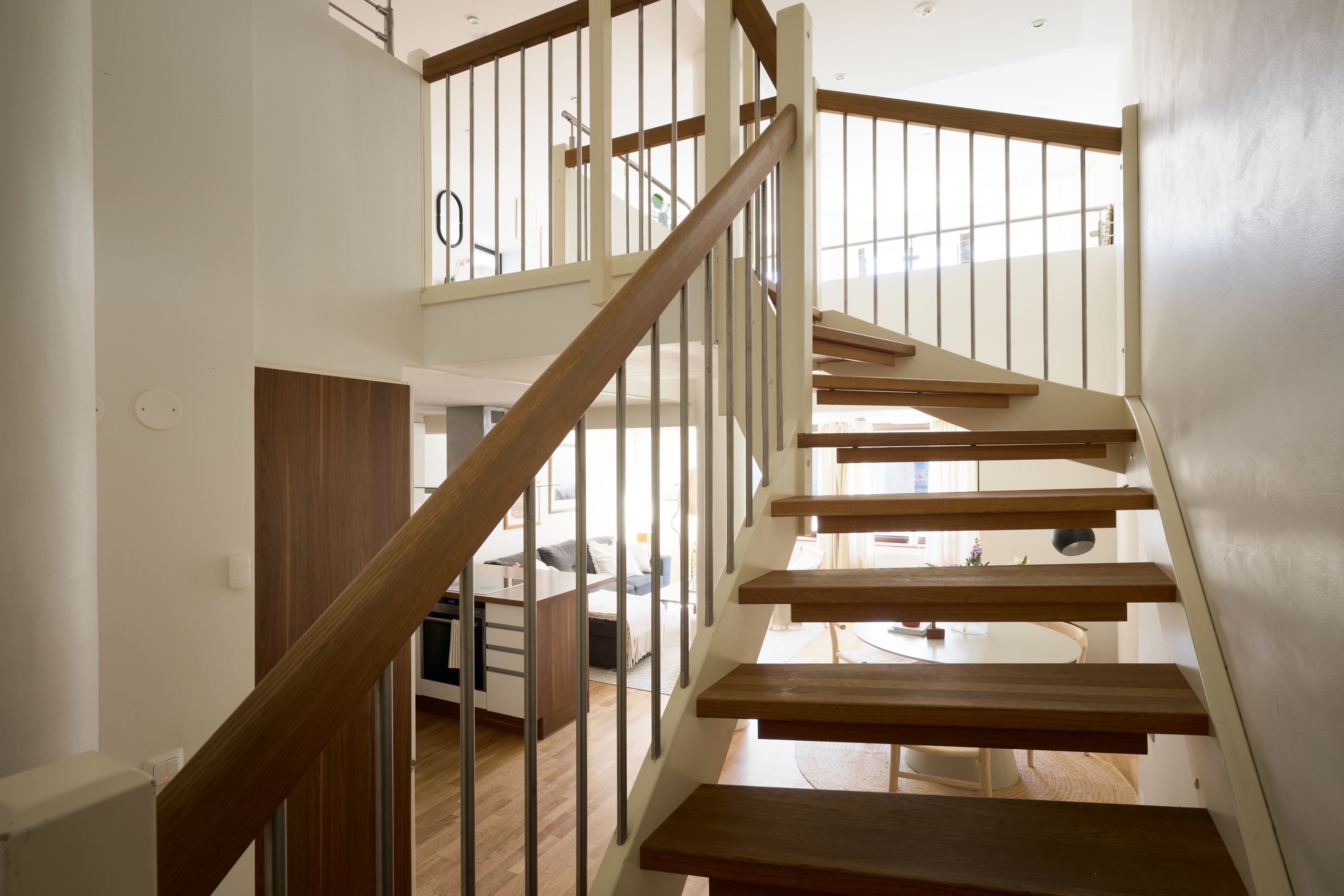 Nu har du chansen att förvärva en unik etage-tvåa med egen ingång – ett hem som kombinerar modern design med en genomtänkt och social planlösning. Här möts du av ljusa ytor, stilrena materialval och en luftig känsla tack vare den öppna dispositionen och den generösa takhöjden.