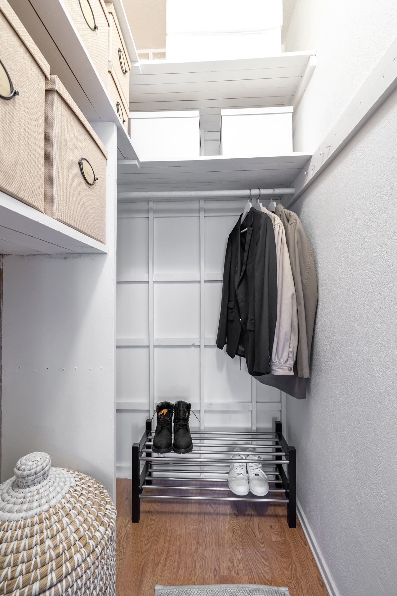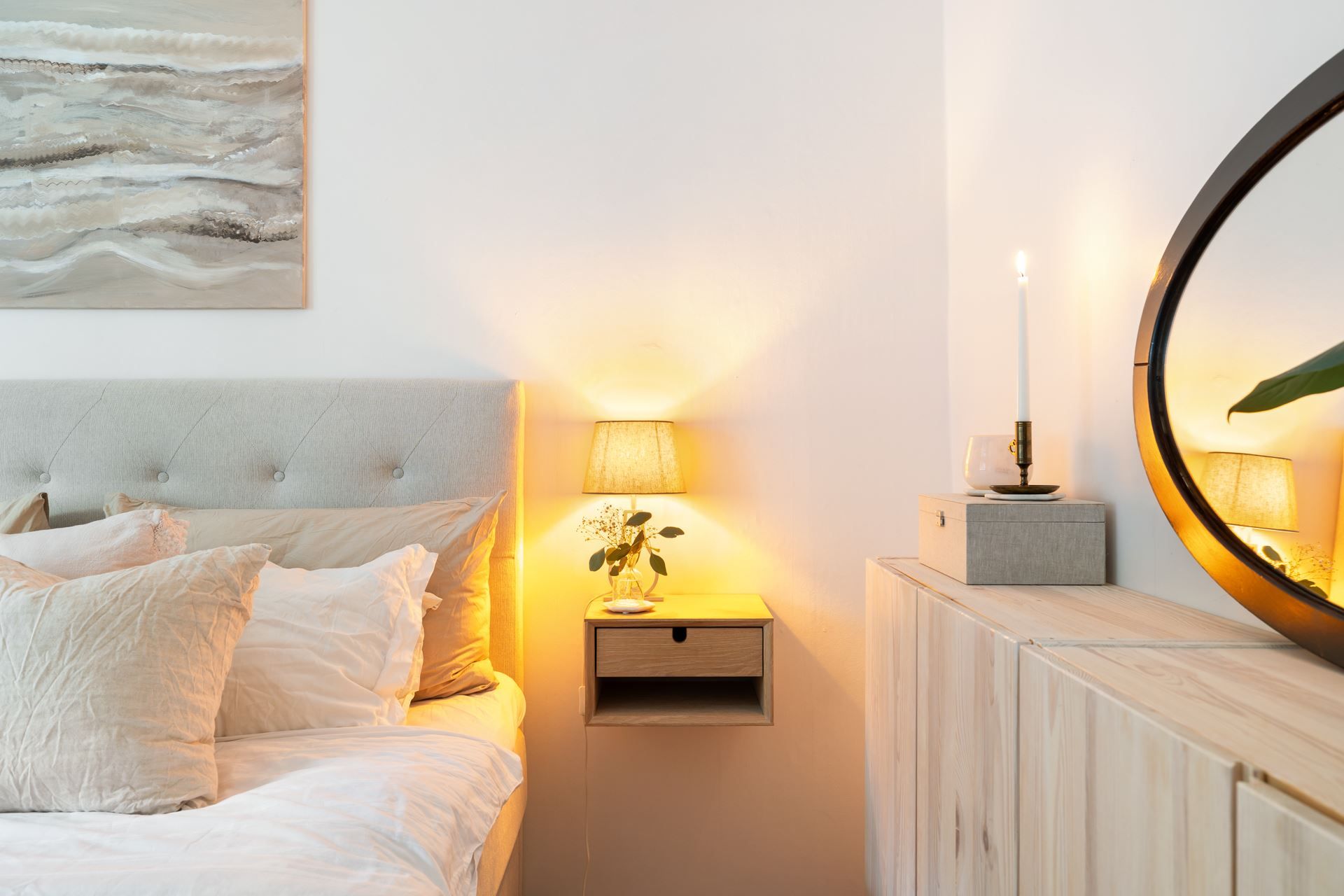 Sovrummet erbjuder generösa ytor, plats för en större säng och gott om förvaring i de inbyggda garderoberna.