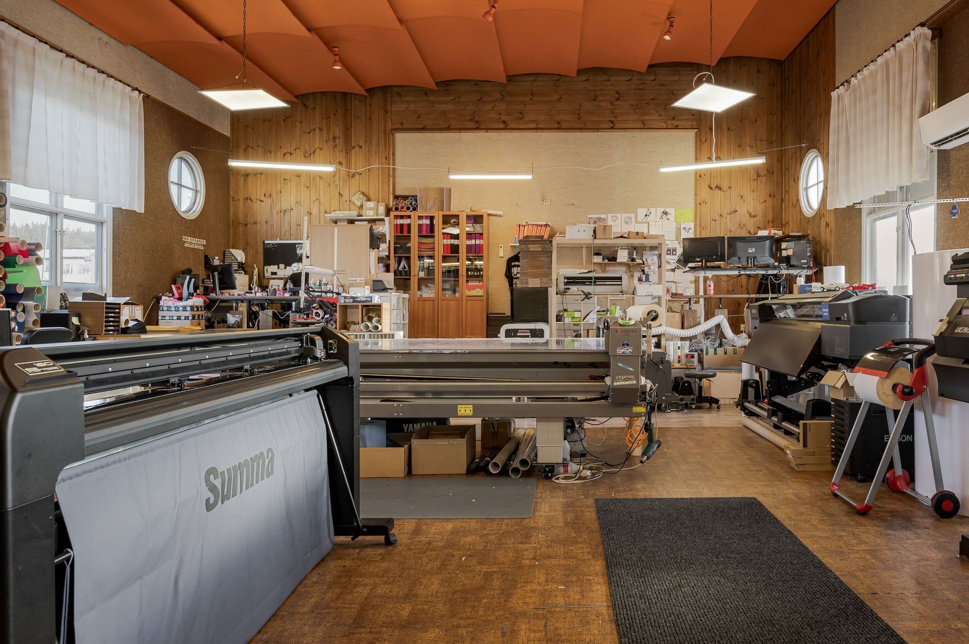 Idag bedrivs tryckeriverksamhet i lokalerna, vilket visar på fastighetens funktionella och praktiska utformning.