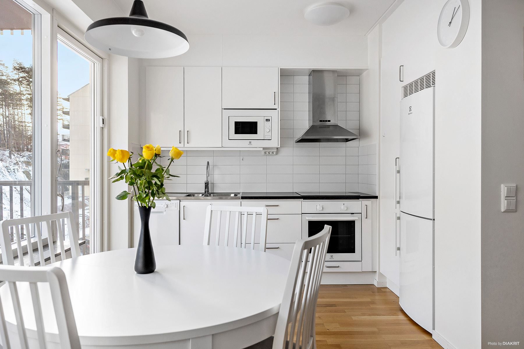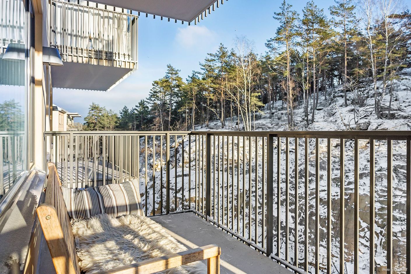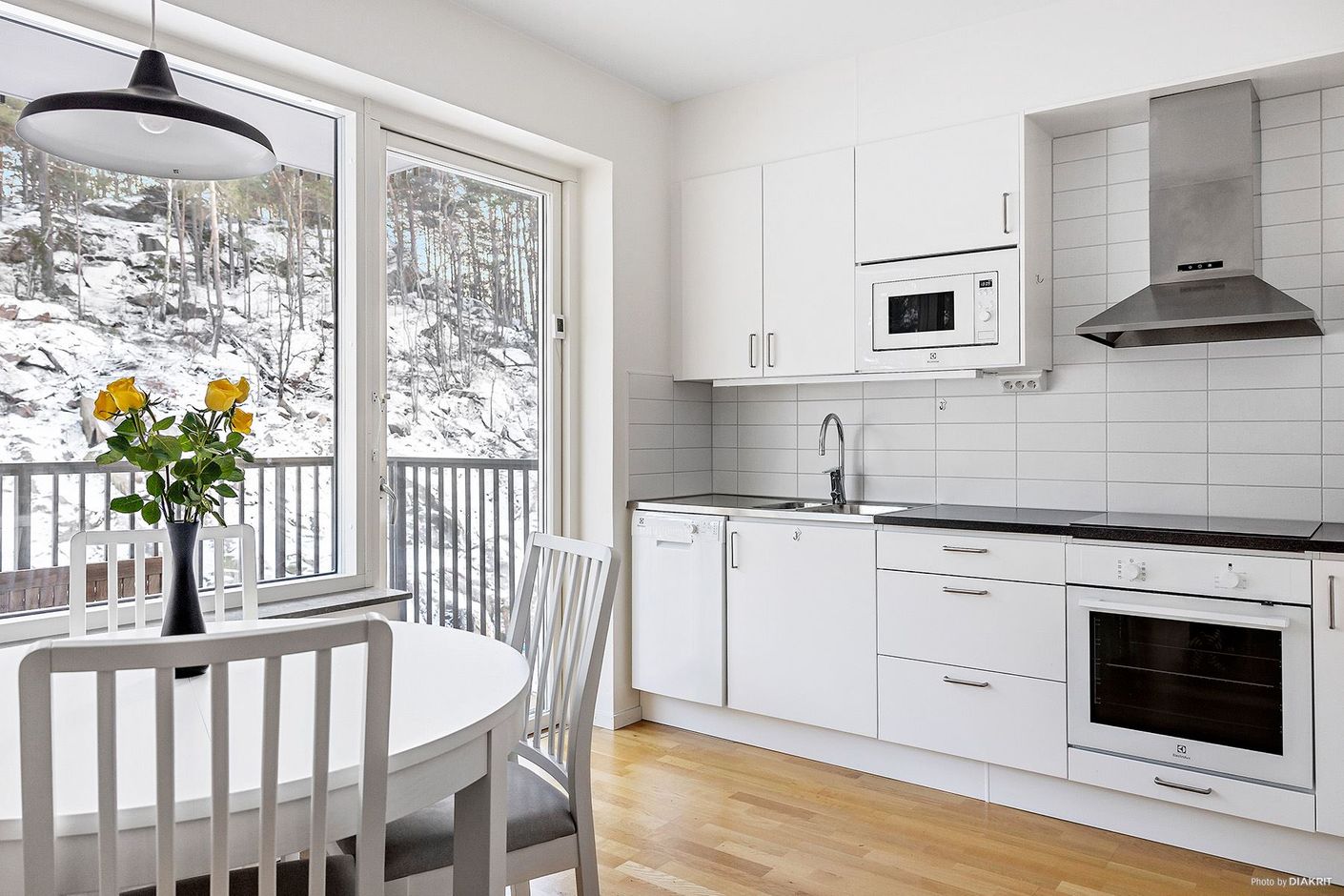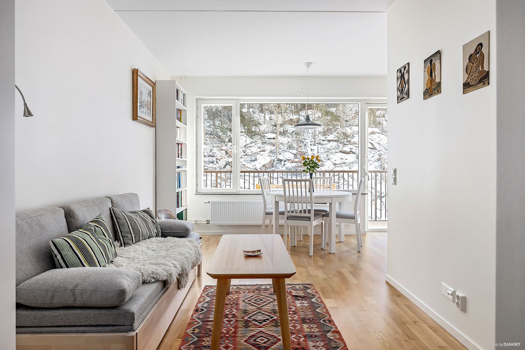Bostaden har ett praktiskt kök i öppen planlösning med vardagsrummet som mynnar ut i en stor och härlig balkong som förlänger rummet. Köksdelen har en naturlig plats för matbord och vardagsrumsdelen har sin naturliga plats för soffa och tv-möblemang. Bostaden erbjuder även en avskild sovalkov med en garderob som har bra förvaring. Badrummet i bostaden är helkaklat, rymligt och utrustat med en kombimaskin som förenklar vardagen.