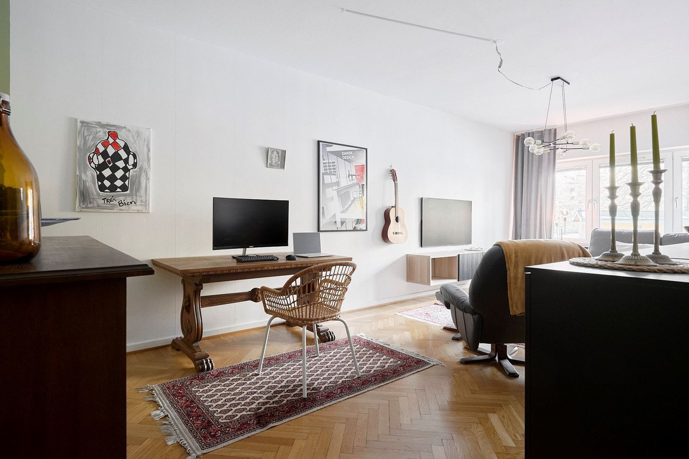Bostaden erbjuder stort vardagsrum med plats för soffgrupp och matplats för de sociala tillställningarna. I dagsläget ryms kontorshörna vilket möjliggörs tack vare kökets storlek. Köket rymmer matbord för 4 sittandes samtidigt som de finns gott med bänkyta och förvaring. Sovrum med plats för dubbelsäng och förvaring samt kök med plats för matbord med fyra sittandes.