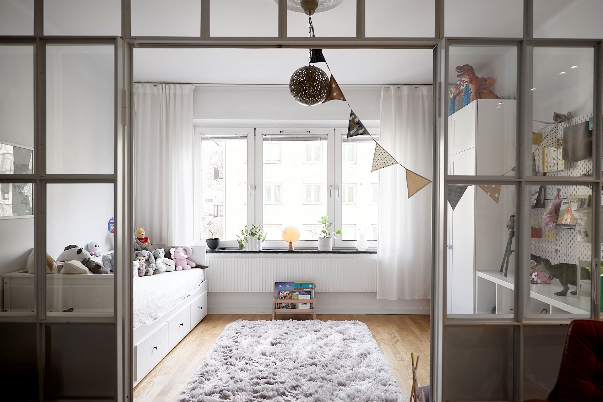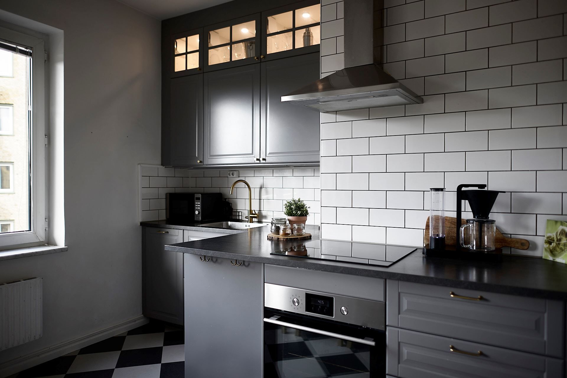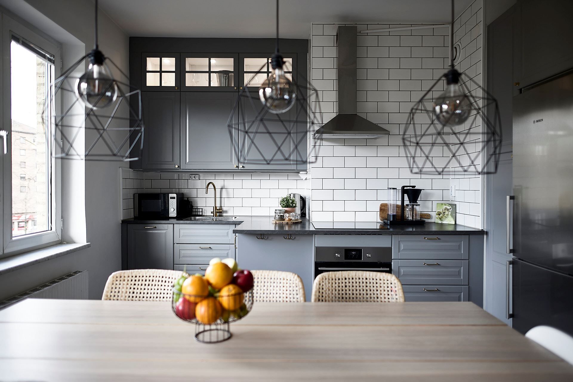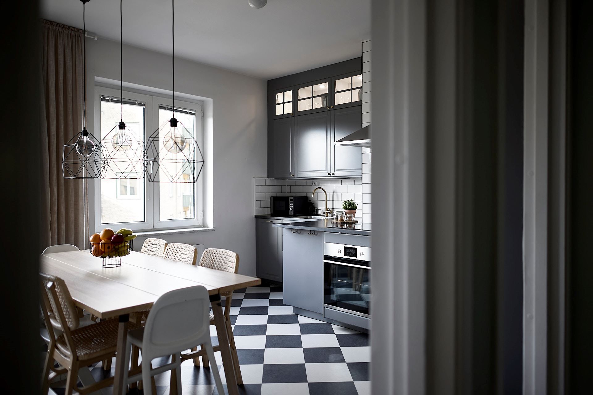 Lägenheten har stort kök med omgjord planlösning där en stor matplats gör de möjligt för familjen att samlas här. Möjligheten finns även att dela av köket igen och skapa ett extra sovrum igen.