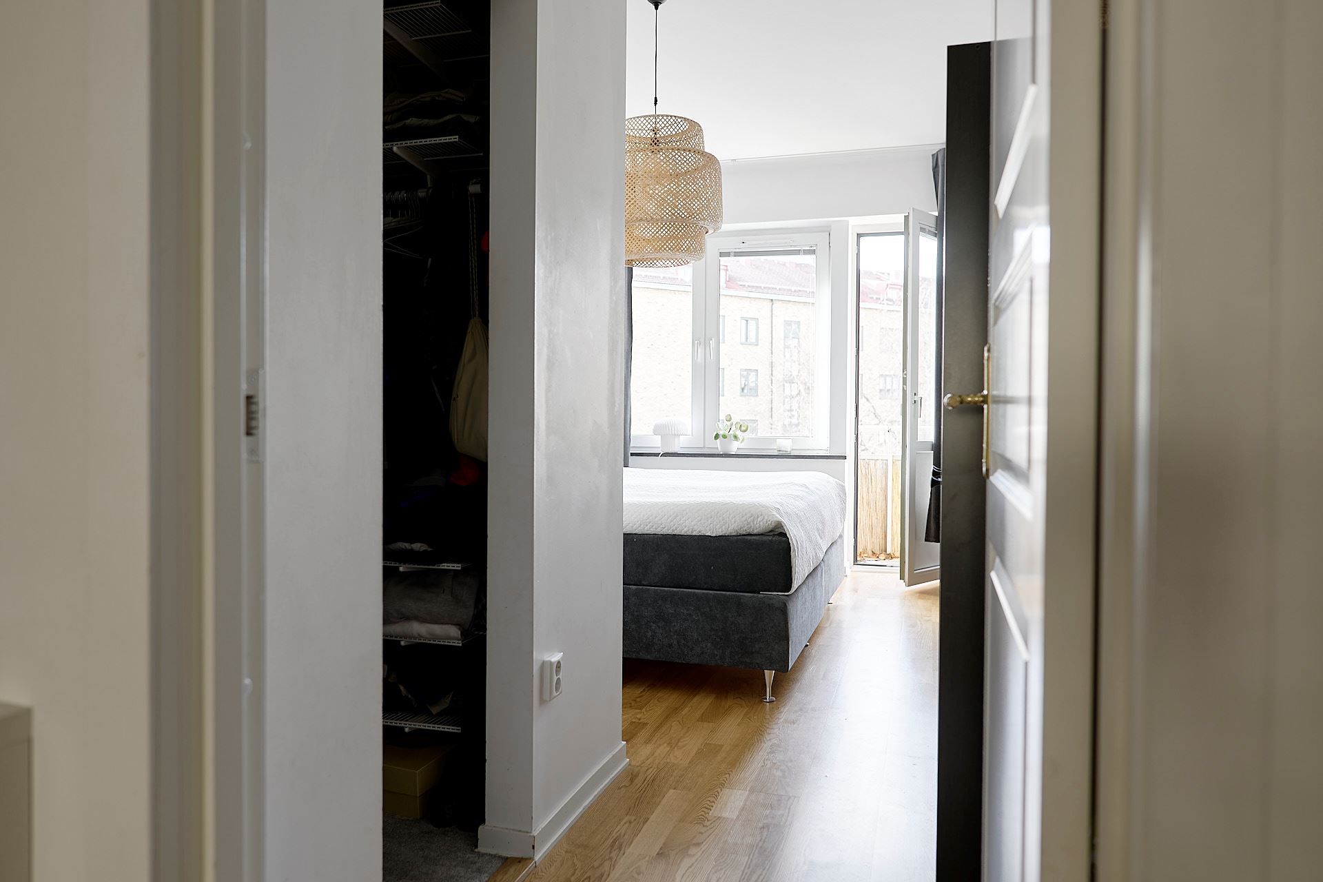 De stora sovrummet vetter mot innergården och har praktisk klädkammare för all förvaring. Från sovrummet finns även utgång till balkongen.