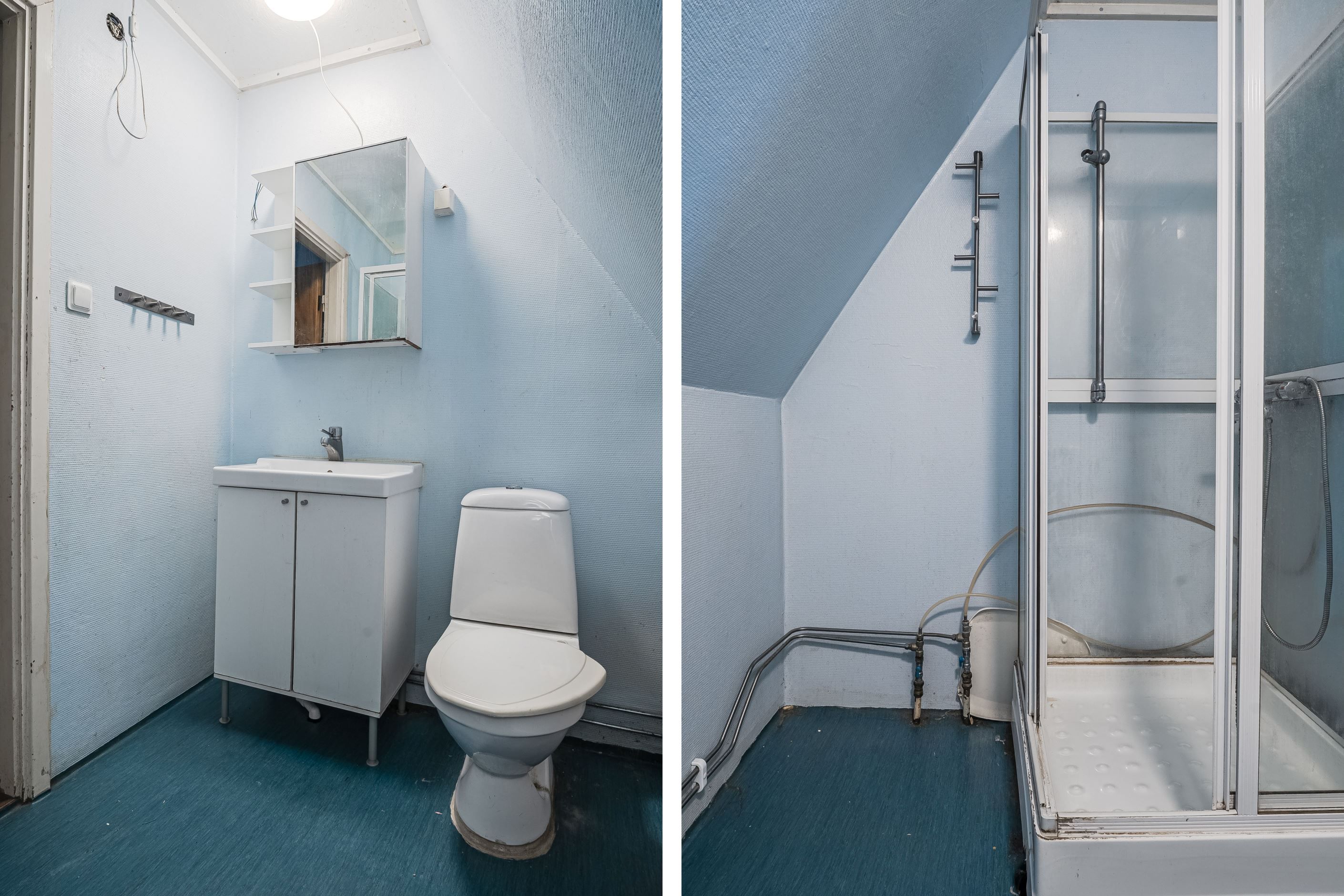 Takets ena del är bytt till plåt medan den andra delen med tegelpannor är i behov av byte. Fasaden behöver också målas, och invändigt är kök, badrum och ytskikt genomgående äldre och slitna – med andra ord en perfekt möjlighet för dig som vill sätta din egen prägel och skapa ett riktigt fint hem från grunden.