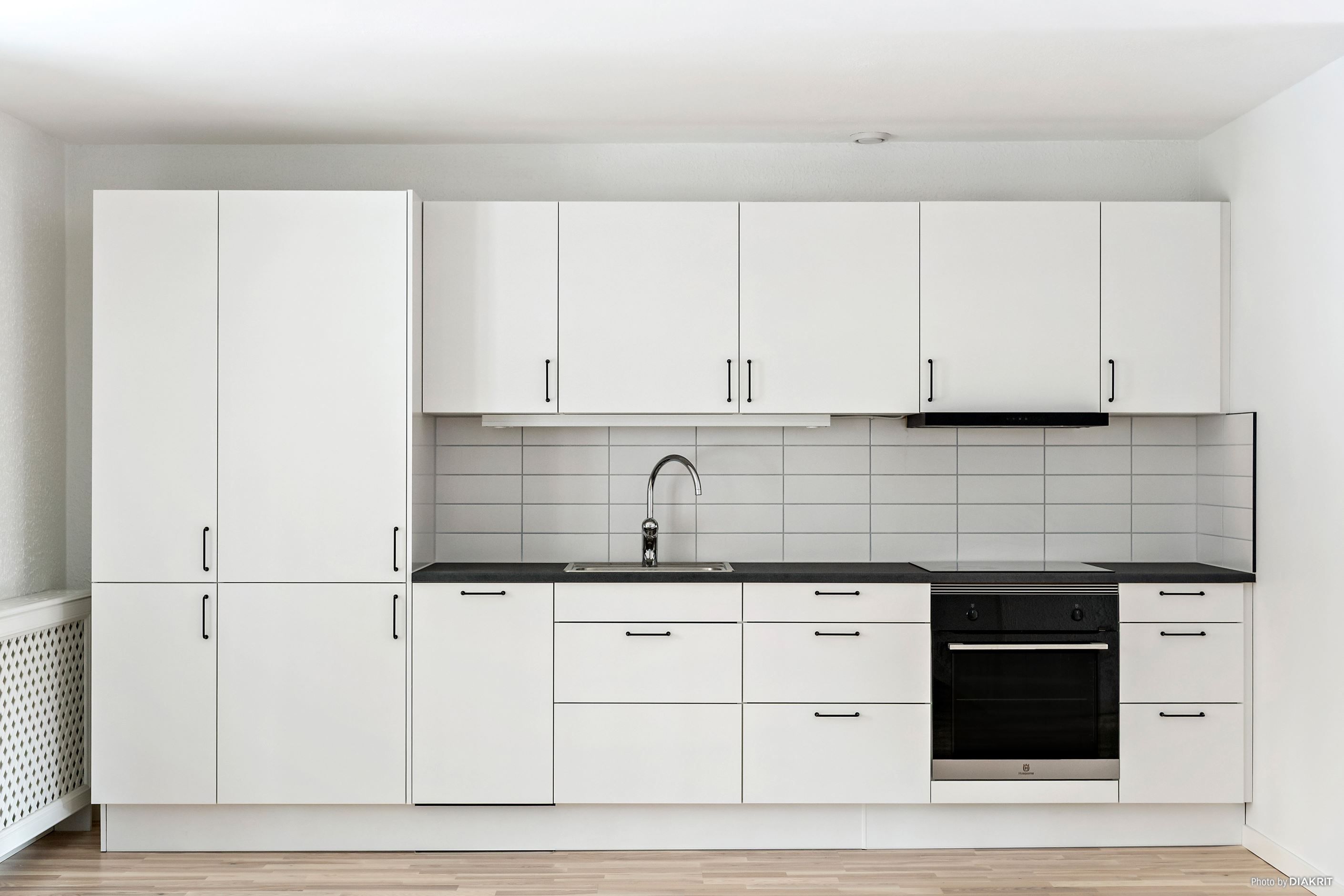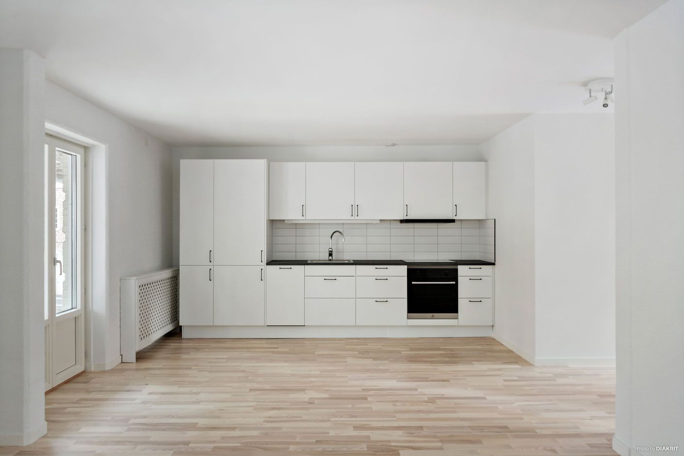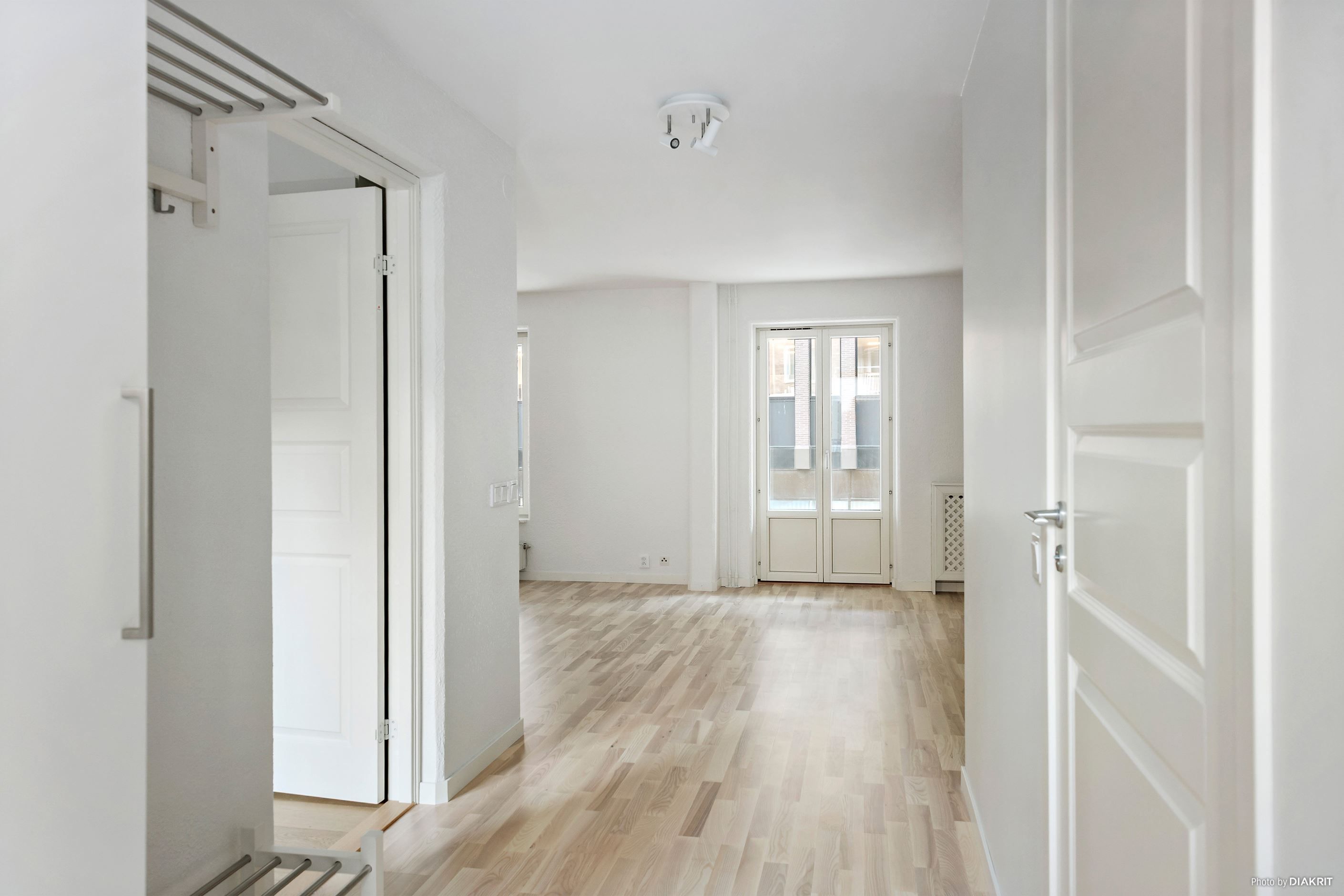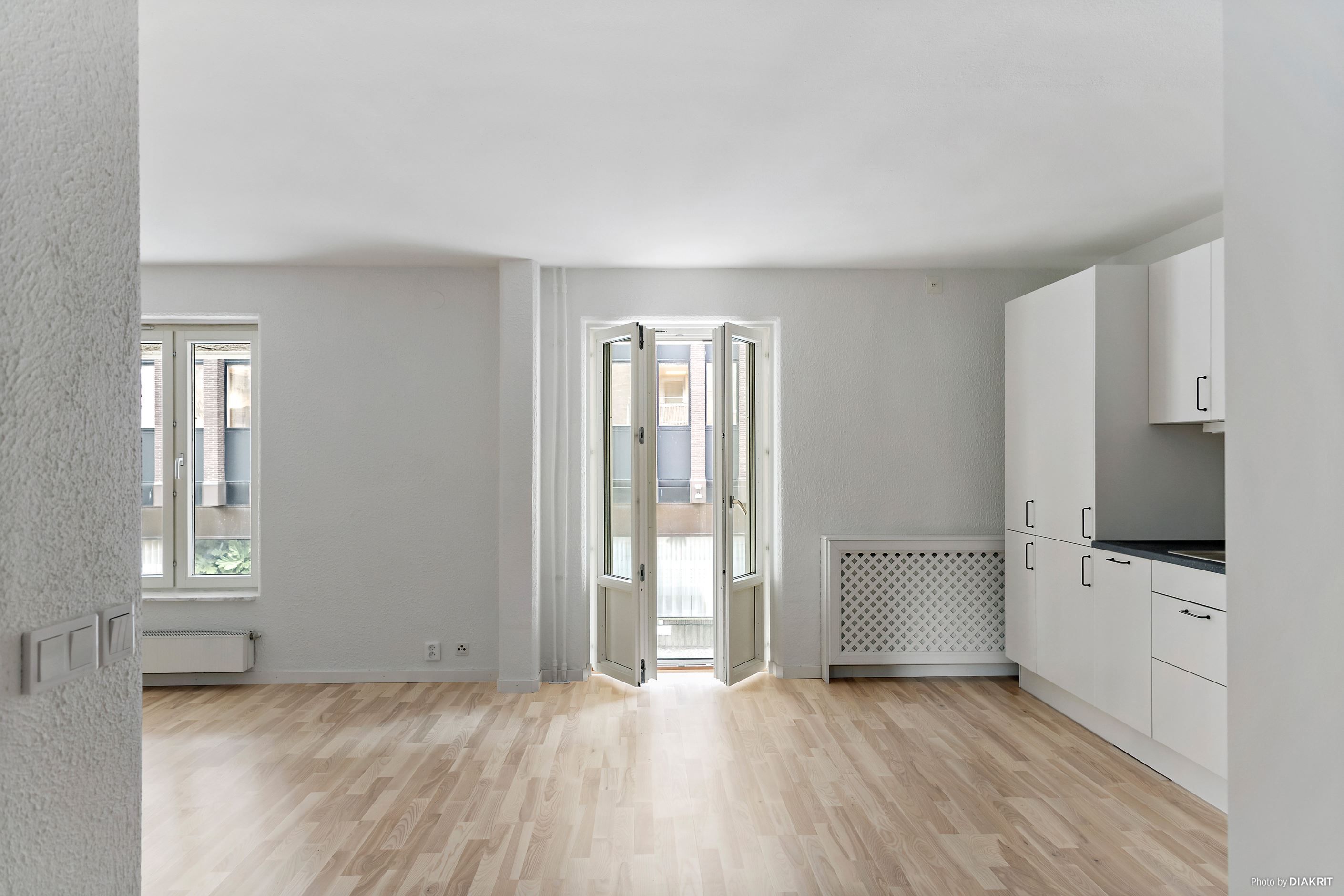 Lägenheten har en välkomnande hall med gott om plats och bra förvaring. Vidare öppnar bostaden upp sig i ett stort kök och vardagsrum i öppen och social planlösning, där flera stora fönster skapar ett vackert ljusflöde. Den franska balkongen ger rummet extra karaktär och ett härligt möte mellan inne och ute. Det moderna och renoverade köket är stilrent med vita luckor, bra arbetsytor och alla funktioner du behöver i vardagen.