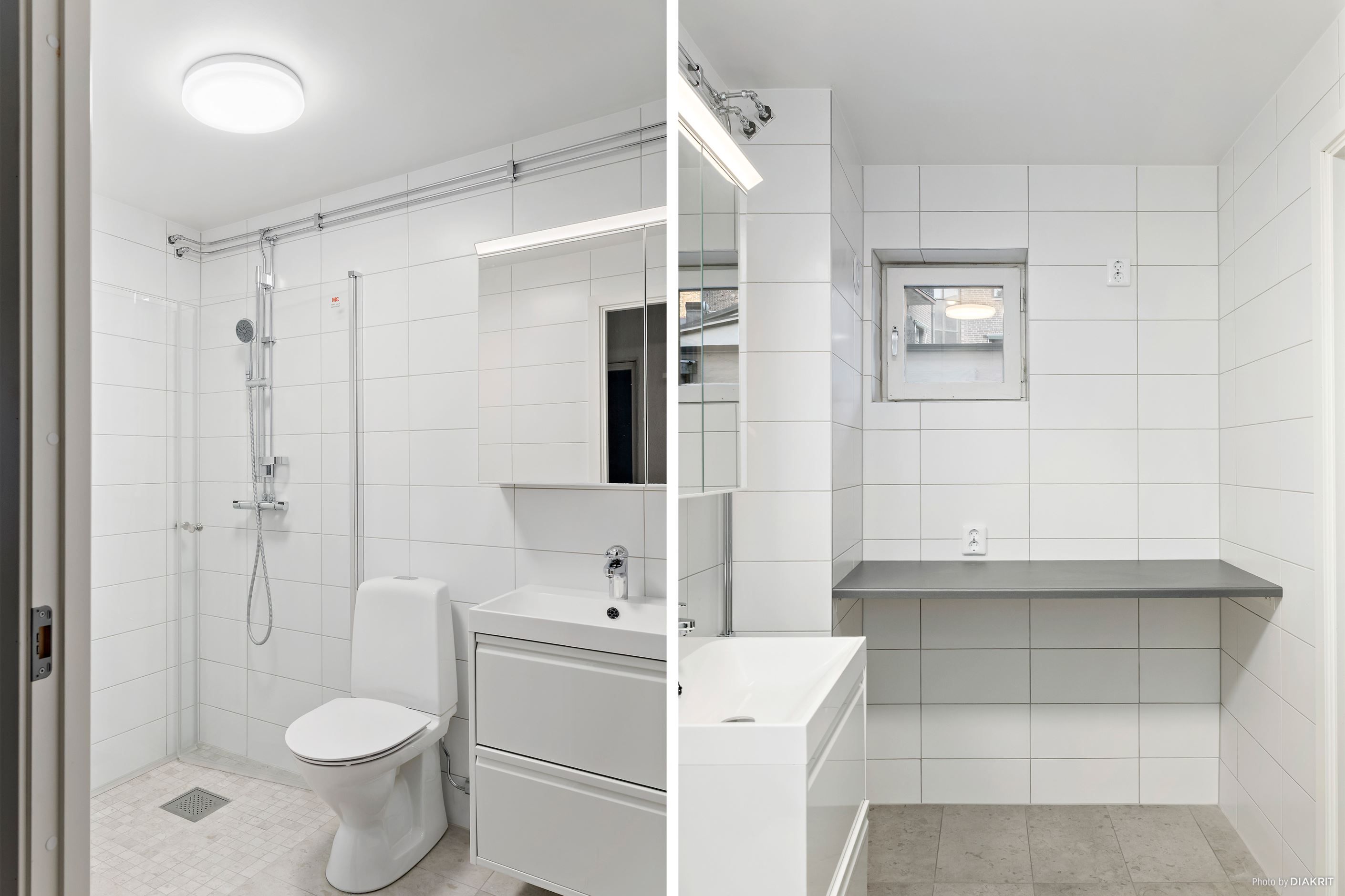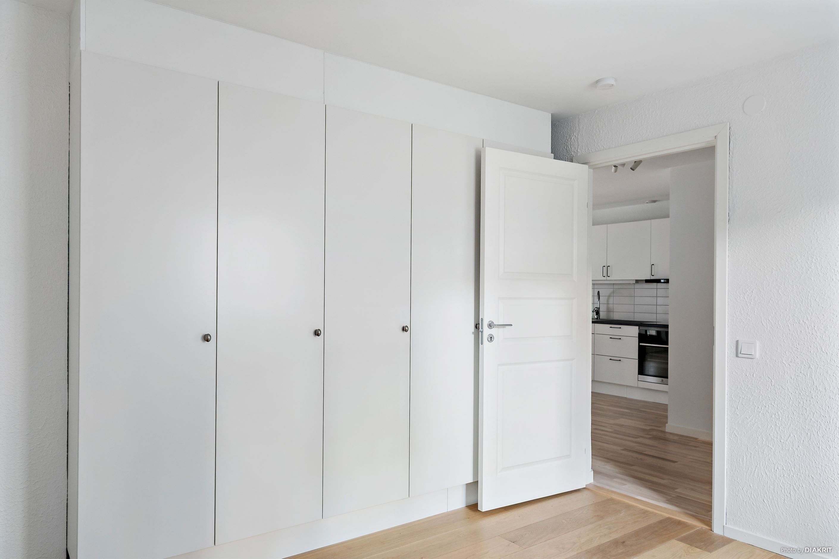 Sovrummet ligger avskilt med plats för både dubbelsäng och förvaring. Badrummet är nyrenoverat i ljusa toner och erbjuder bra yta och förvaring – dessutom förberett för tvättmaskin.