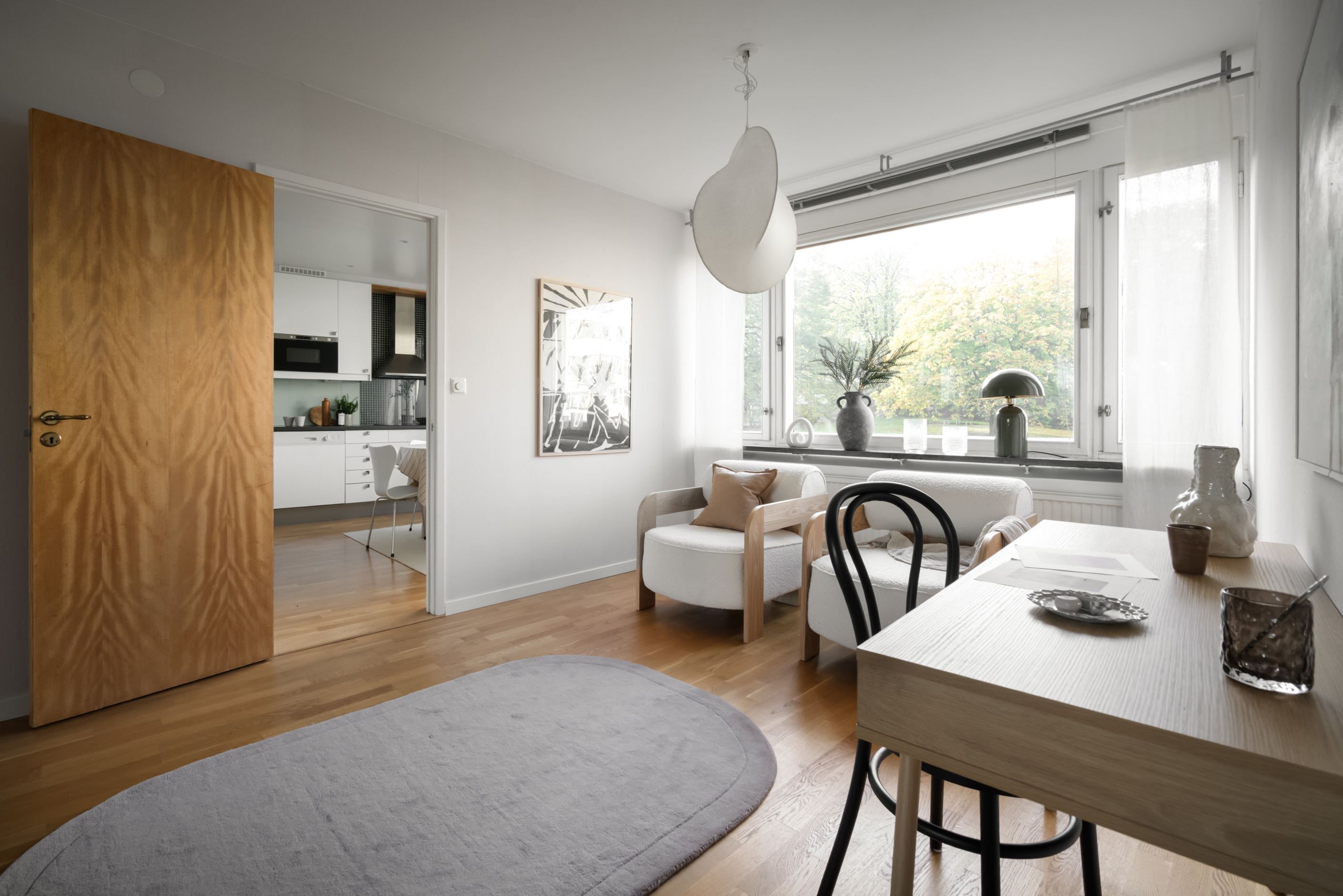 Välkommen till Kungshöjd och denna stilfullt renoverade 3:a om 106 kvm som enkelt går att förvandla till en 4:a – ett hem där stadens puls möter ett lugnt och harmoniskt boendet.